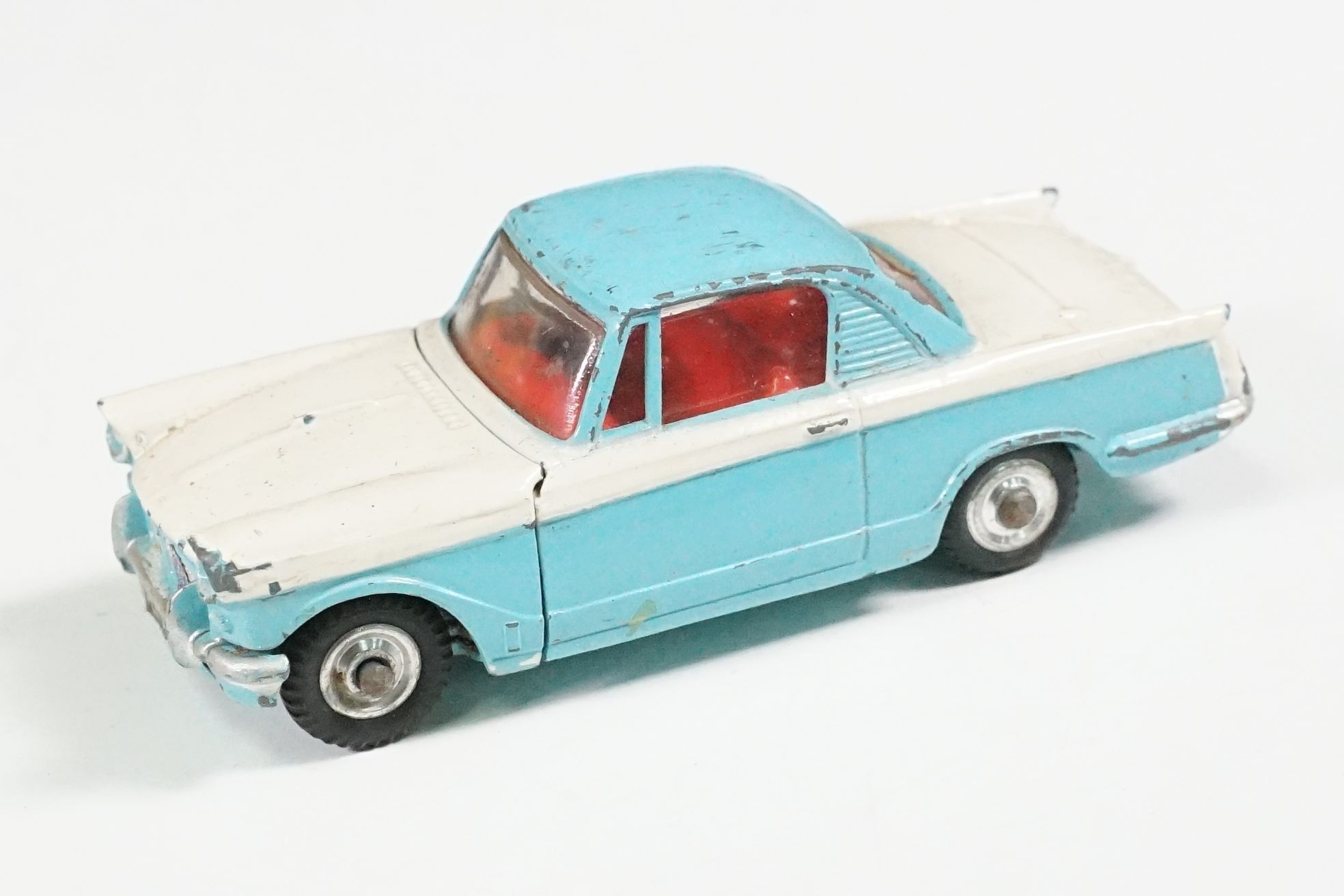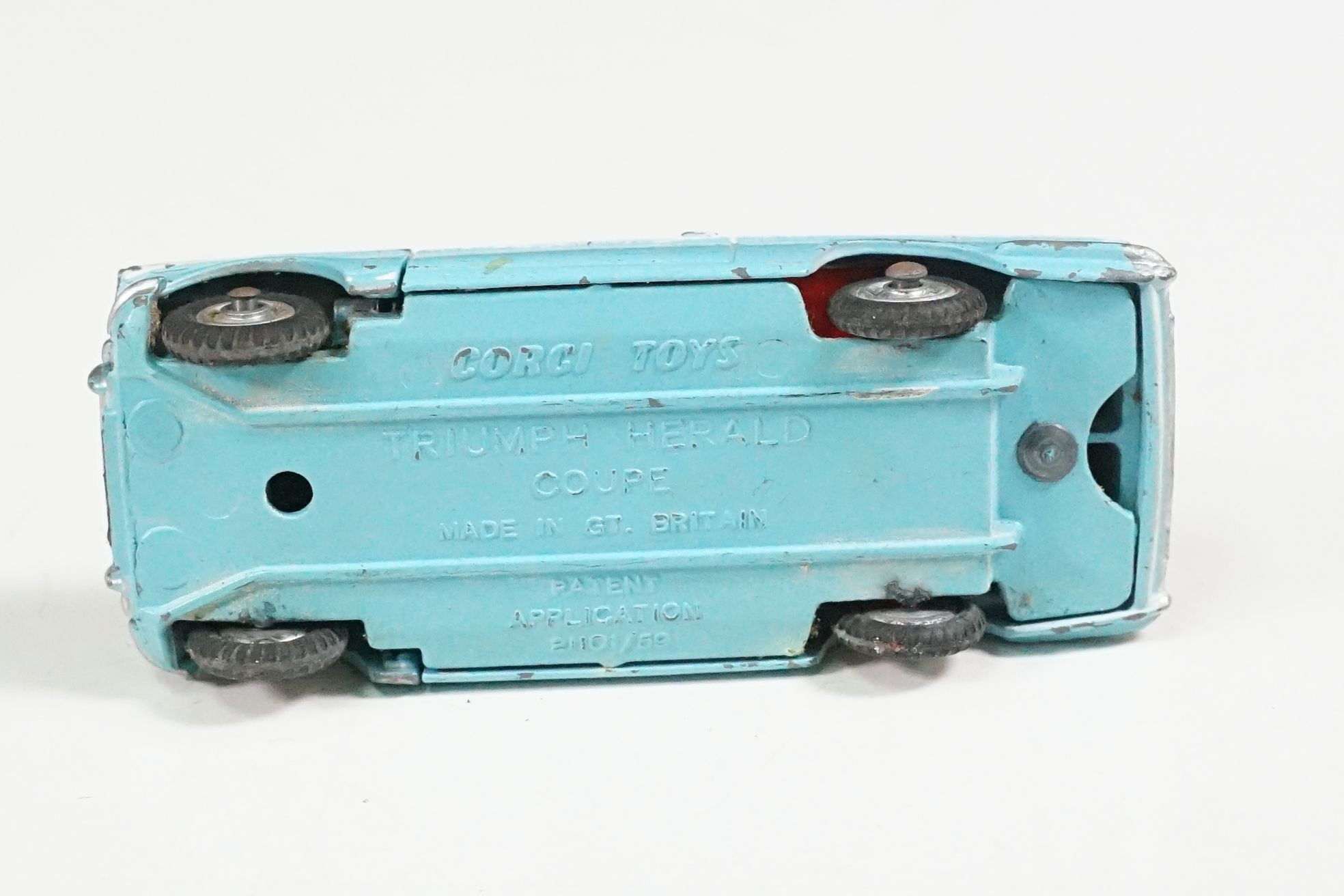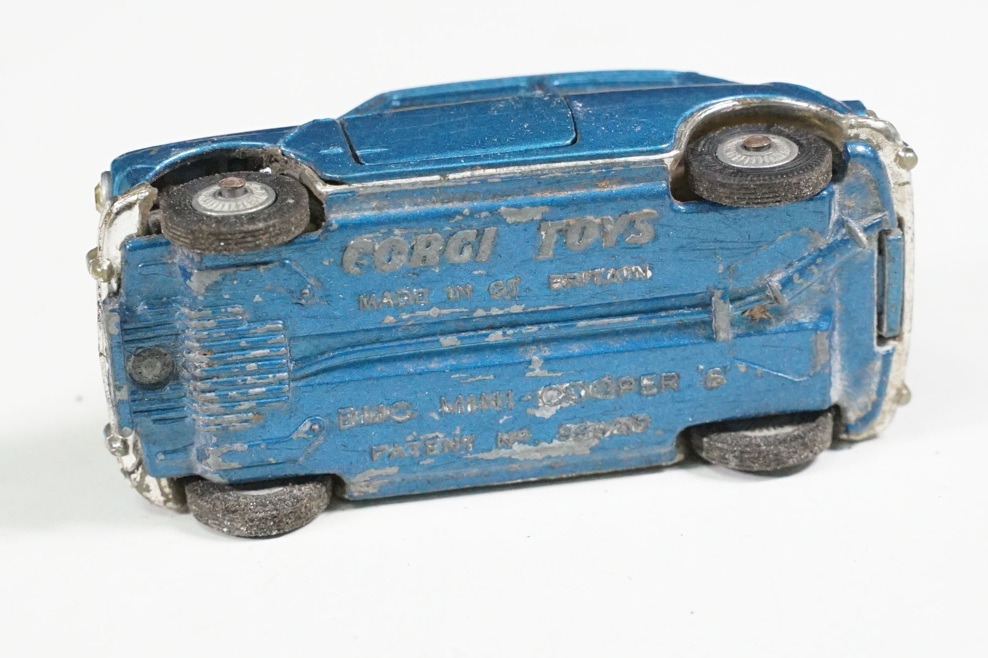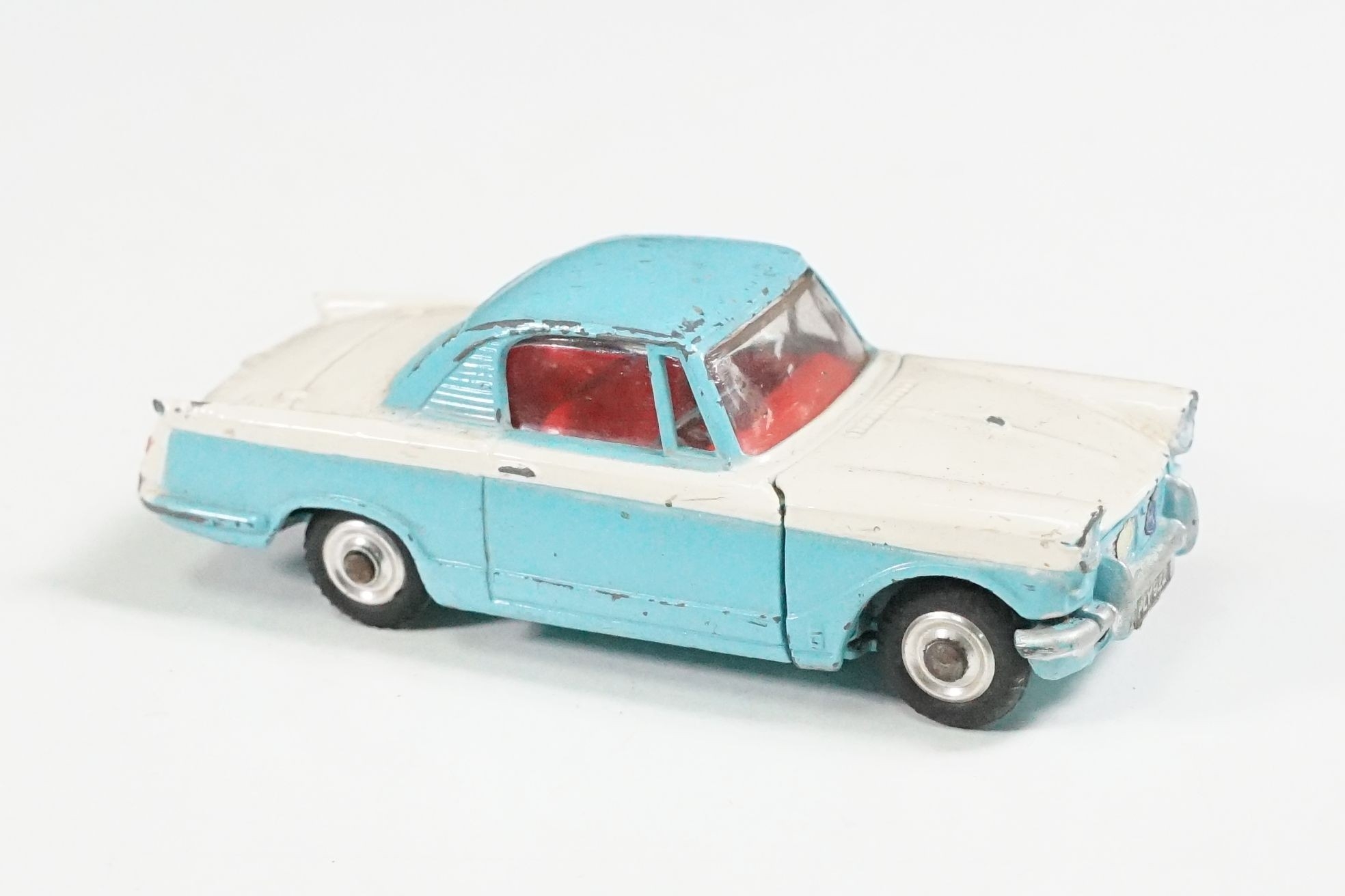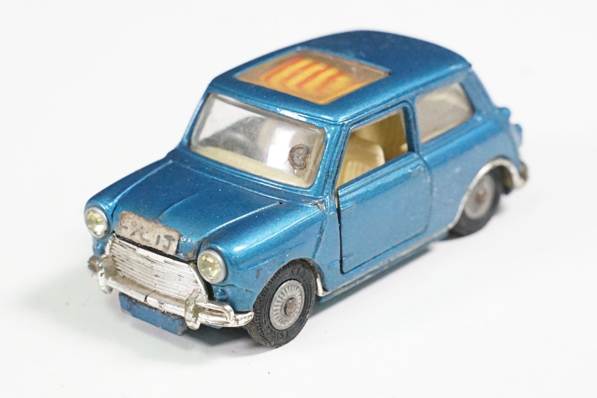 Nine boxed mid 20th C diecast models to include 6 x Corgi featuring 334 Mini Cooper Magnifique, 341 Mini Marcos GT 850, 319 Lotus Elan S2, 314 Ferrari Berlinetta, 231 Triumph Herald Coupe and 324 Marcos 1800 GT with Volvo engine and 3 x Dinky to include 165 Ford Capri in purple, 218 Lotus Europa in main body yellow and 344 Land Rover in blue, showing play wear with some previous rivet removal, boxes fair overall
