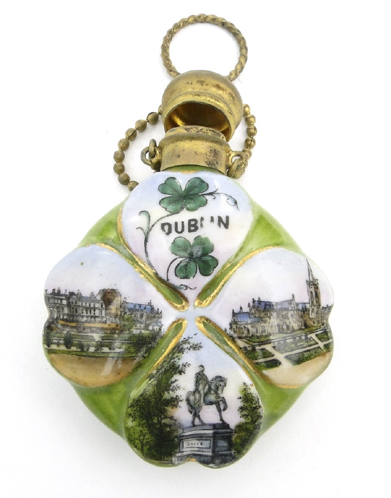 Porcelain scent bottle enamelled with views of Dublin, 6cm high