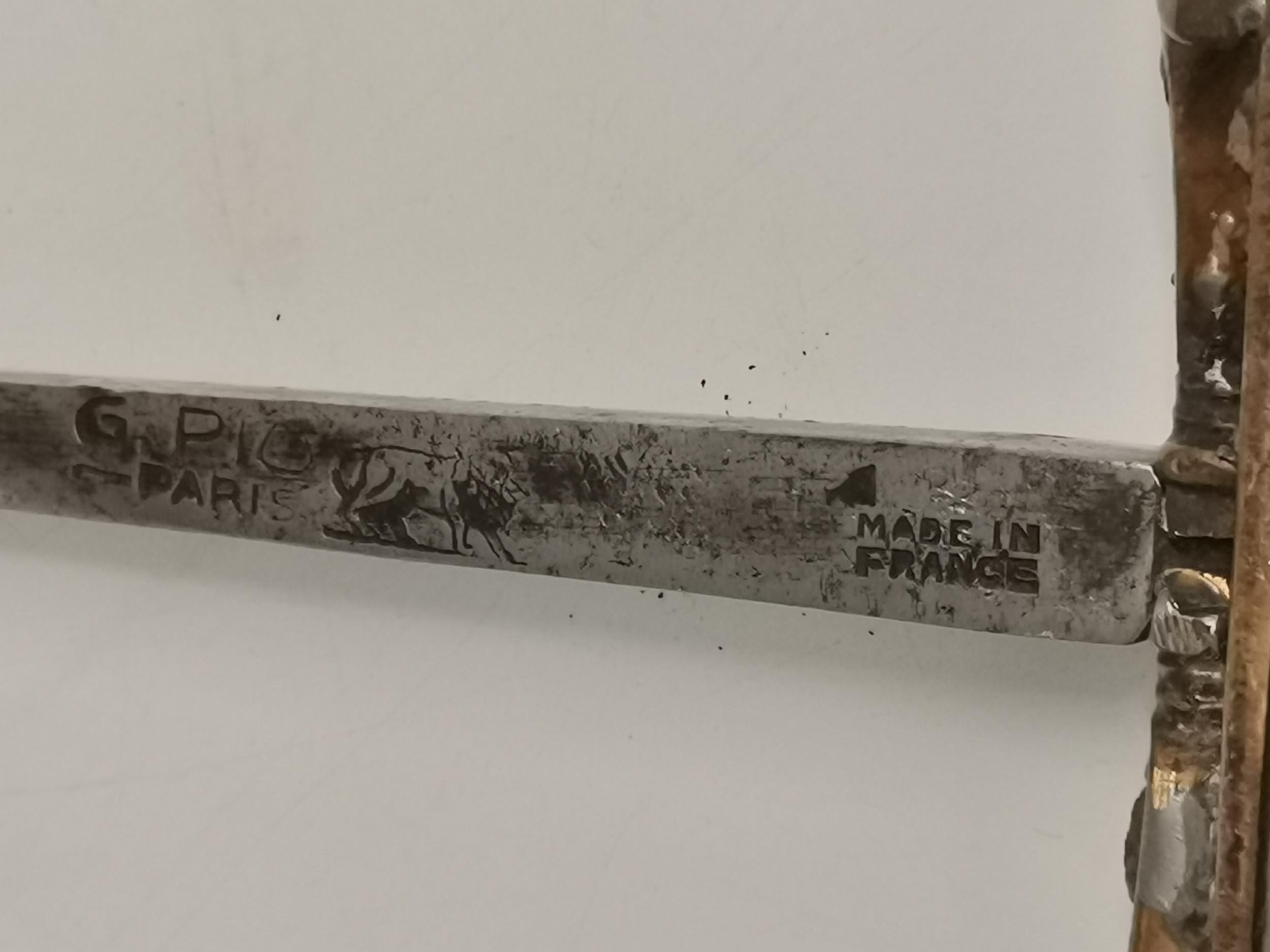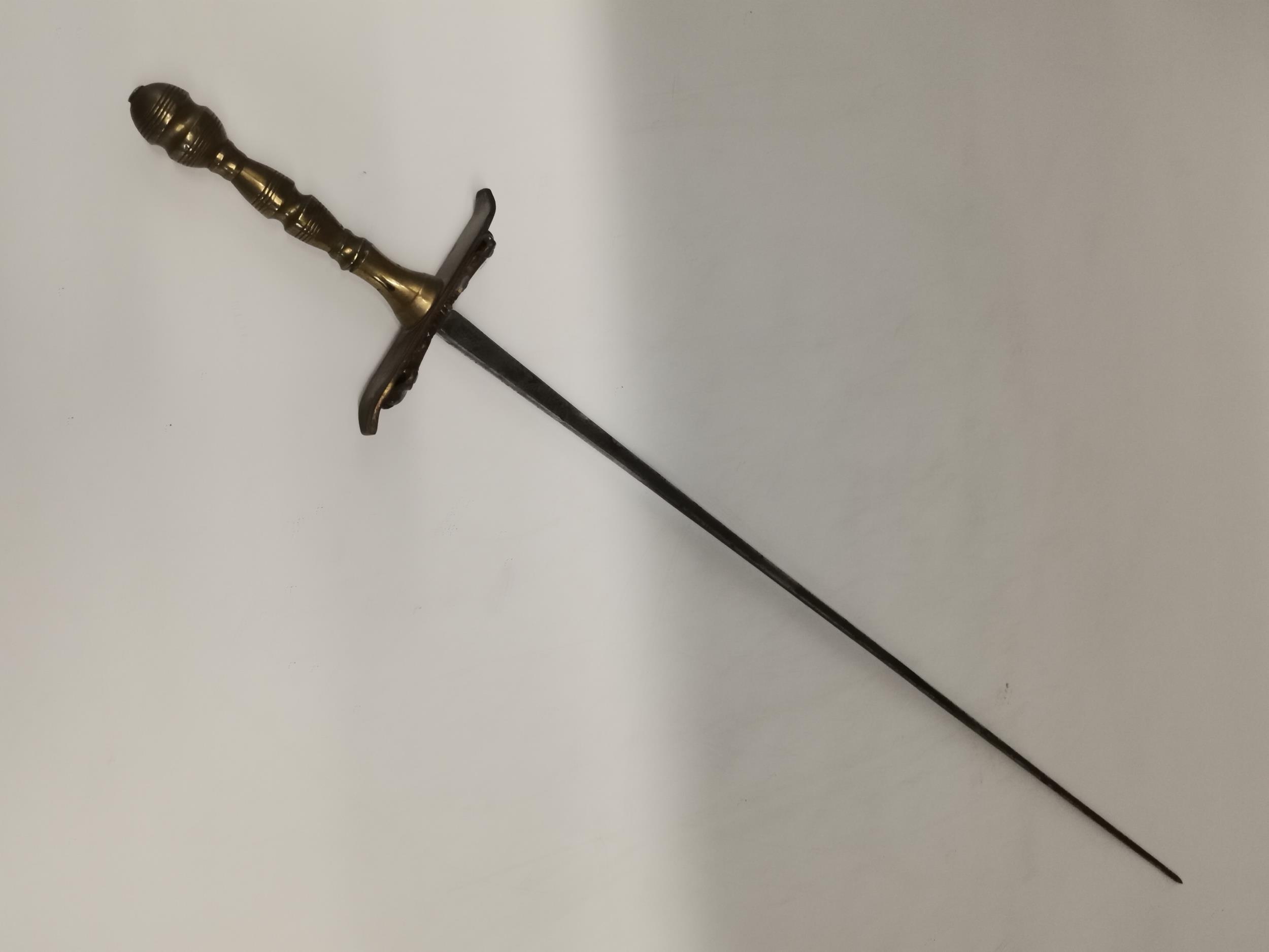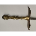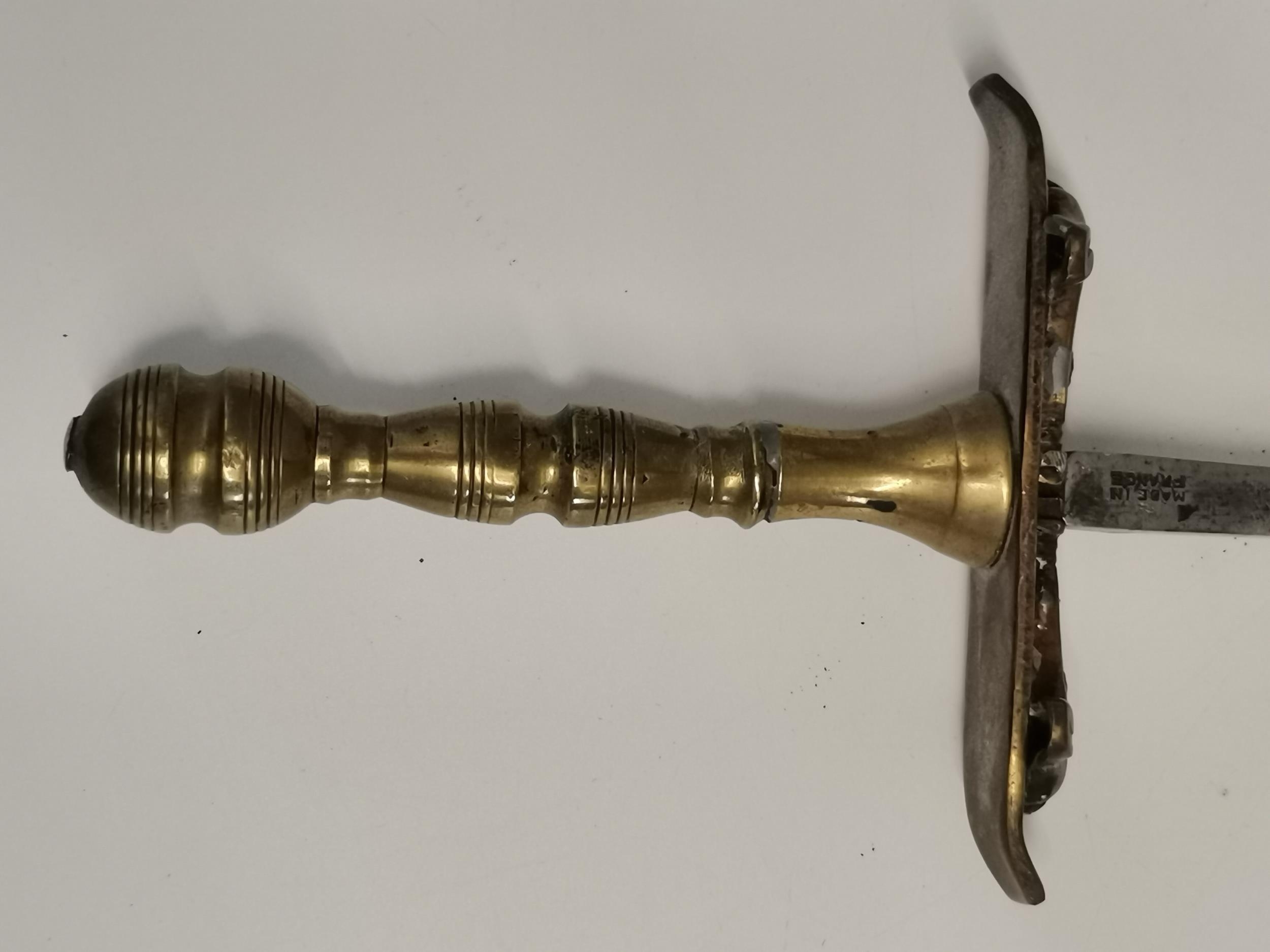 A French rapier, late 19th/early 20th Century, by G. Pion, Paris, with brass handle and double cross-guard, stamped maker's mark each side with lion, 'Made in France', '5'. Blade 64cm long