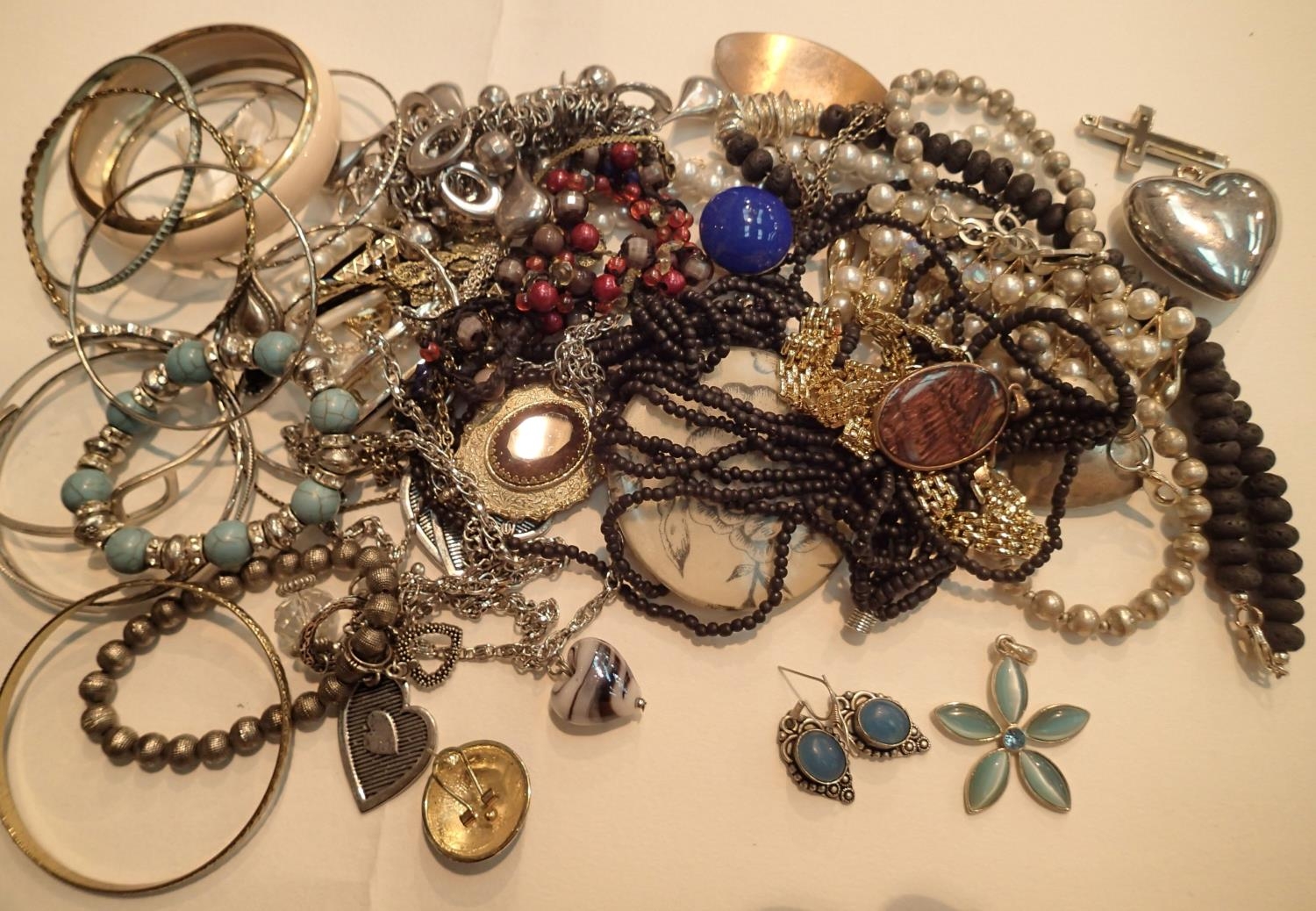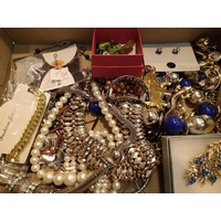 Box of unsorted costume jewellery. P&P Group 1 (£14+VAT for the first lot and £1+VAT for subsequent lots)