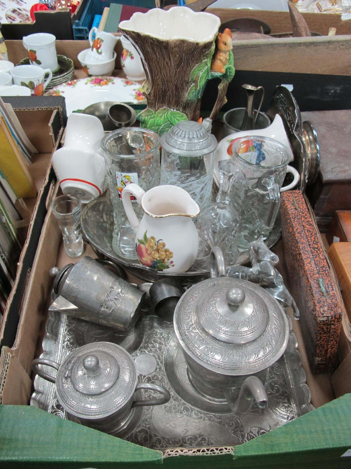 Hornsea Fauna Jug Vase, 28cm high, glass stein, Middle Eastern coffee set, metalware, etc:- One Box
