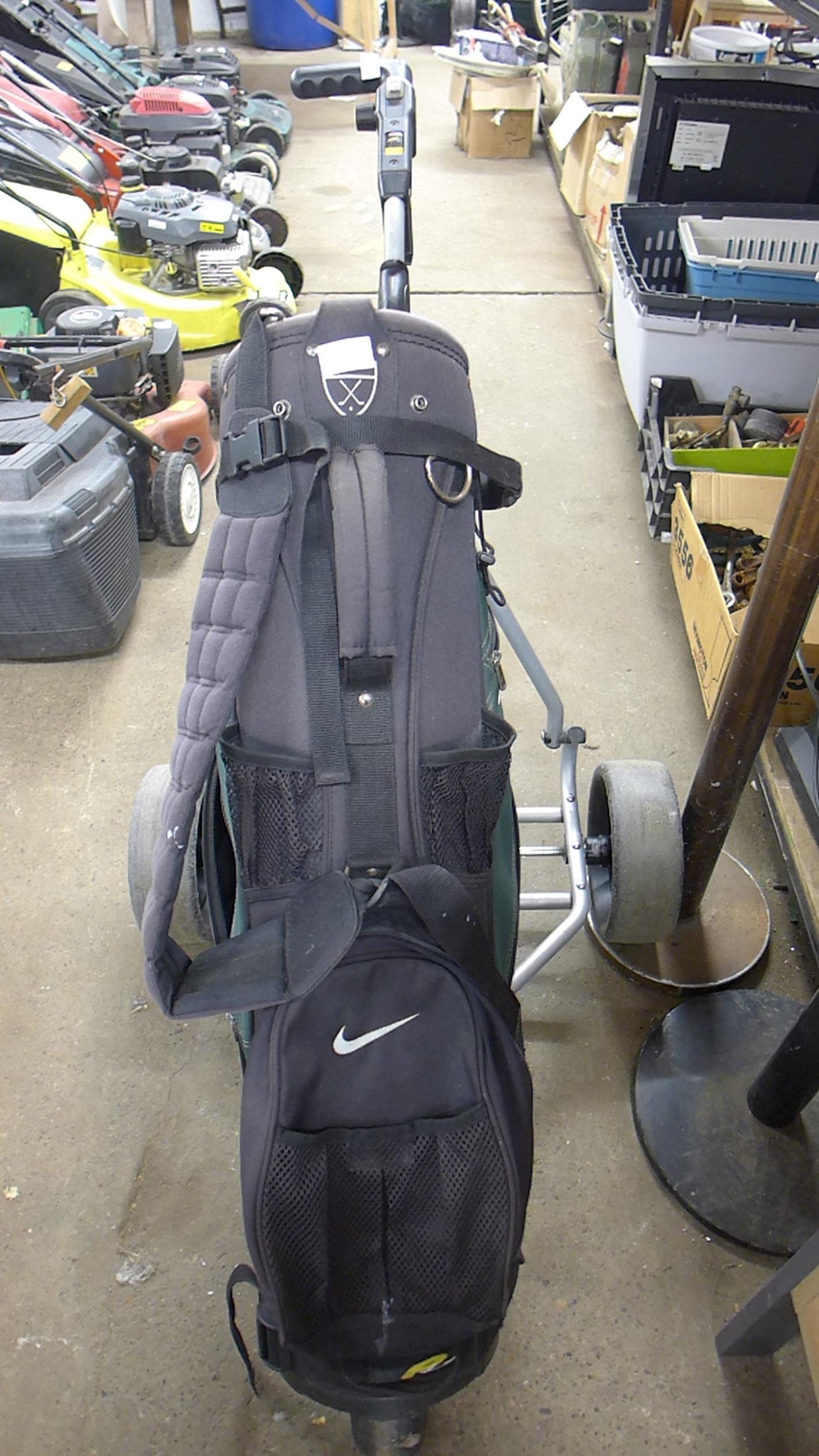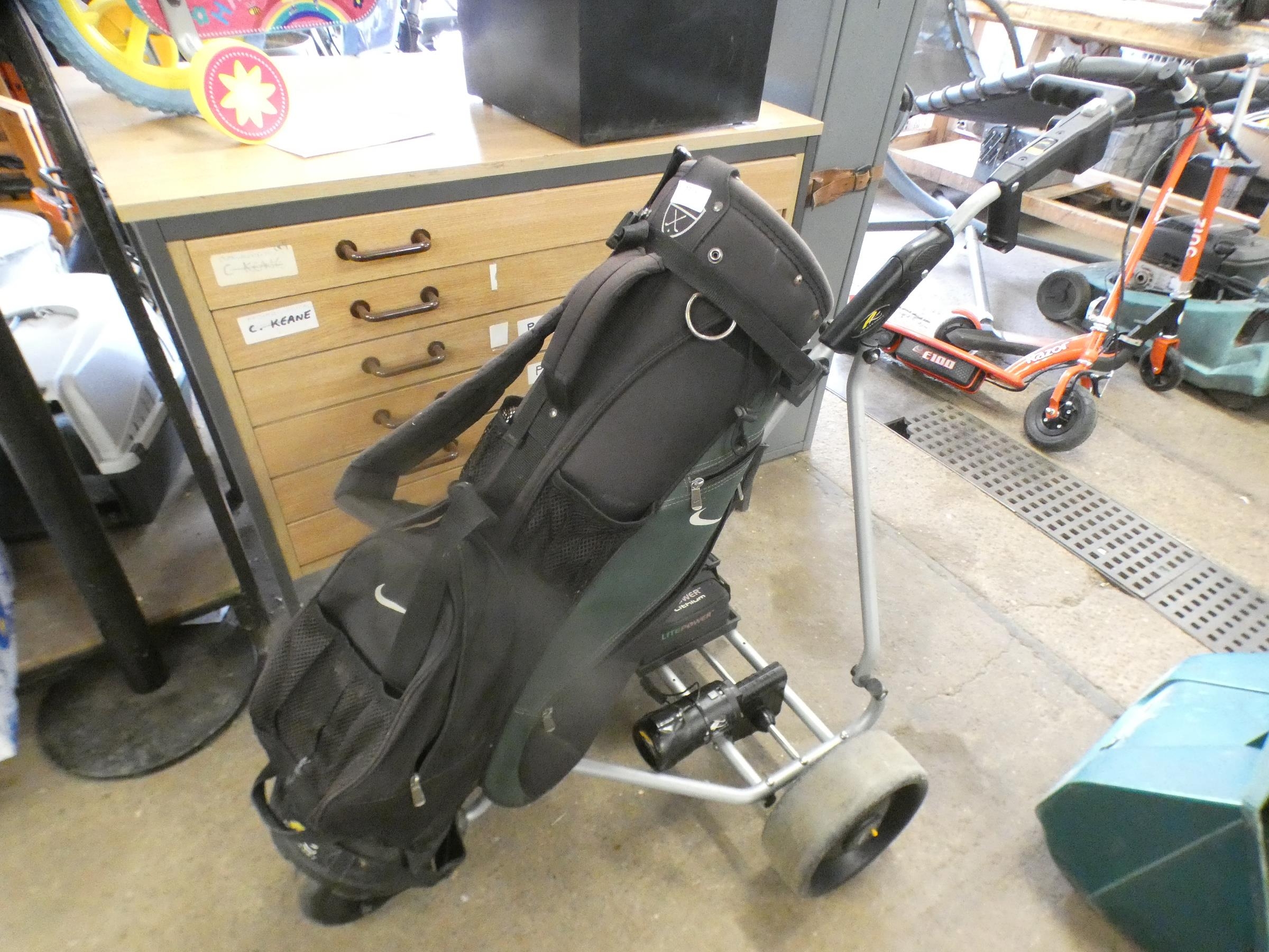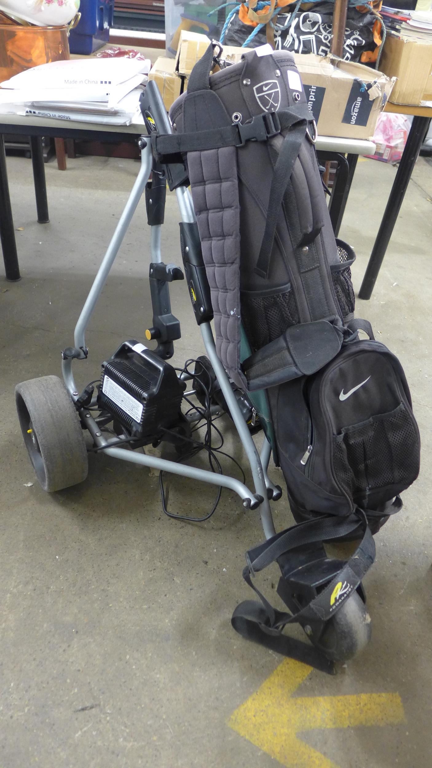 Powakaddy electric golf trolley with lite power charger plus Nike golf bag & Maxi battery