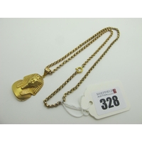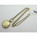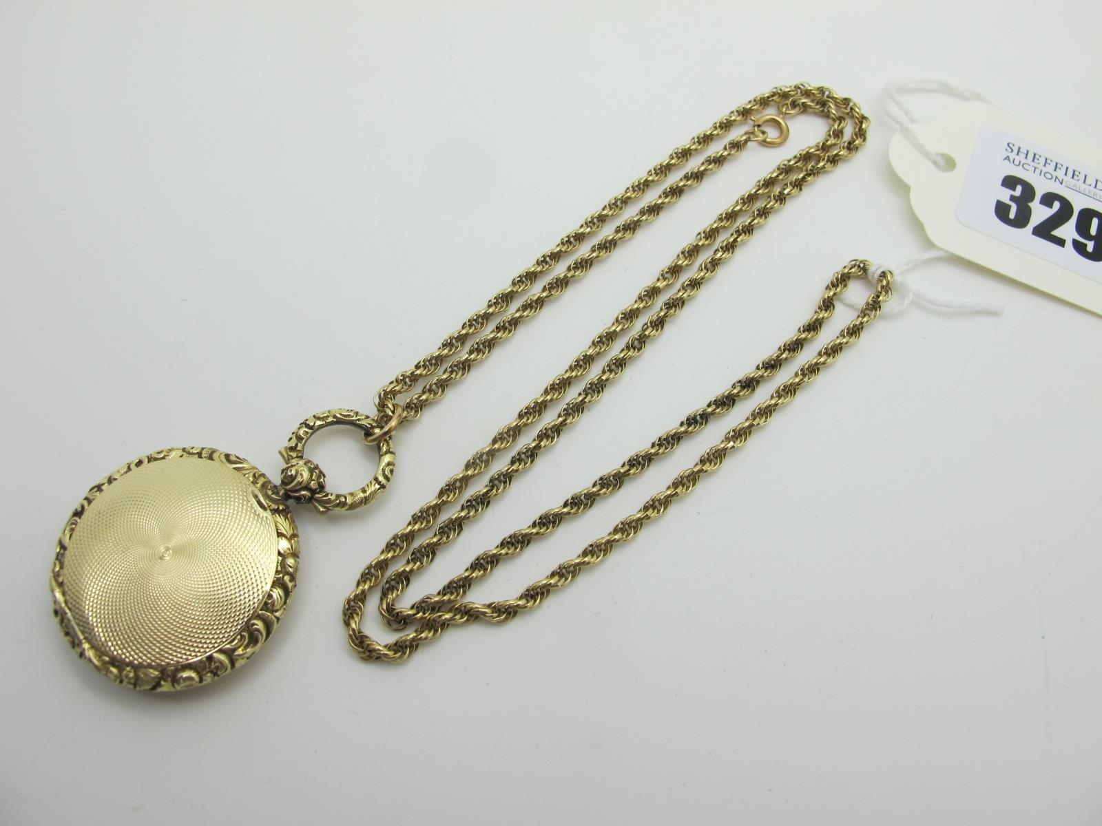 An Antique Circular Locket Pendant, with allover engine turned decoration, suspended on fancy link chain.