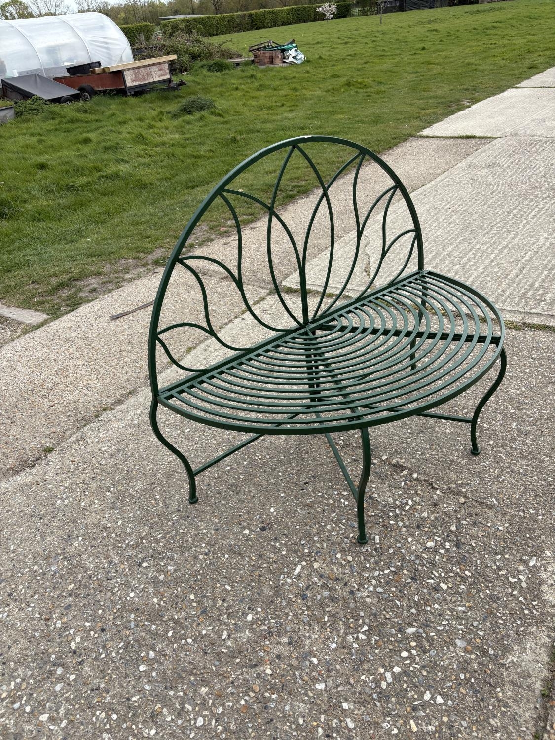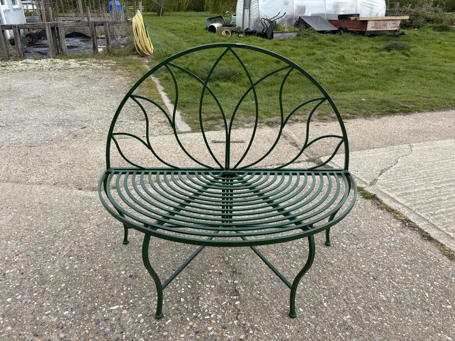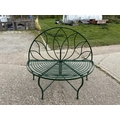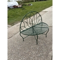A green painted metal garden bench seat 120cm wide