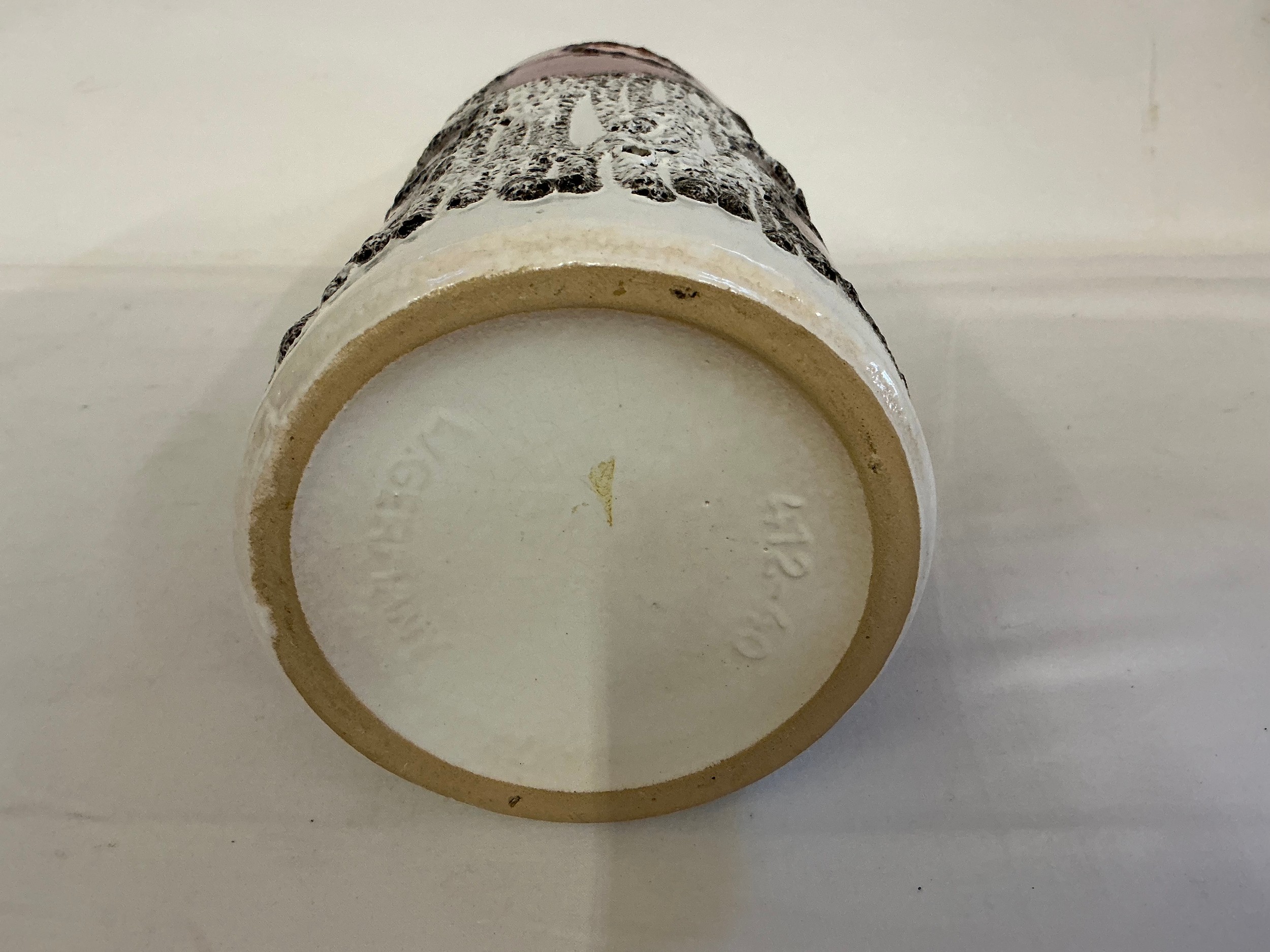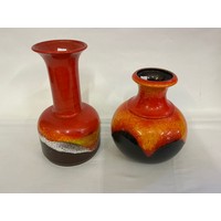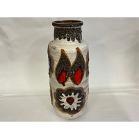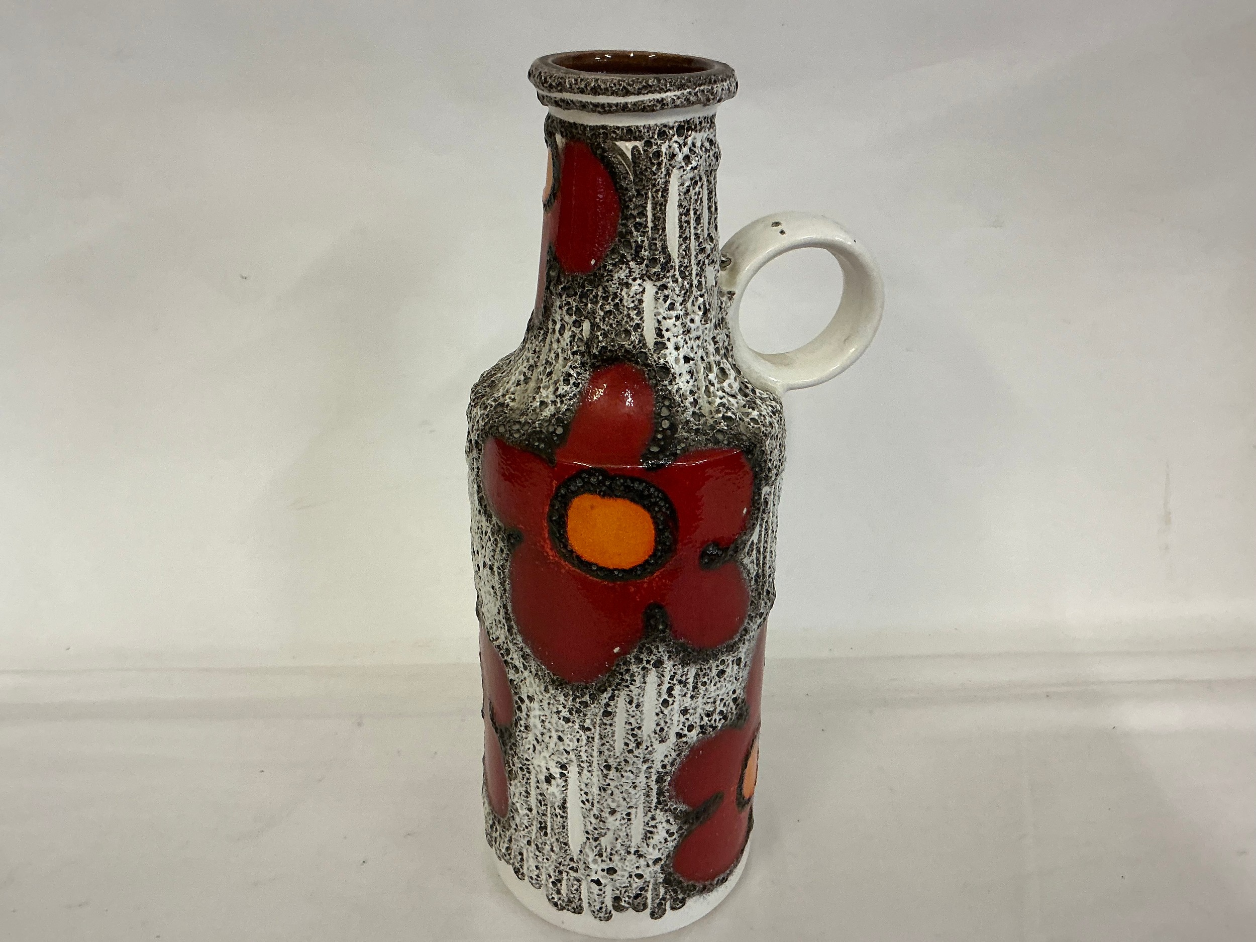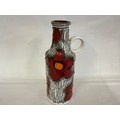 A Fat Lava German made Runny Glazed Ewer Vase decorated with Red Flowers. Measuring: 39cms High.