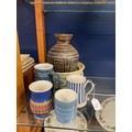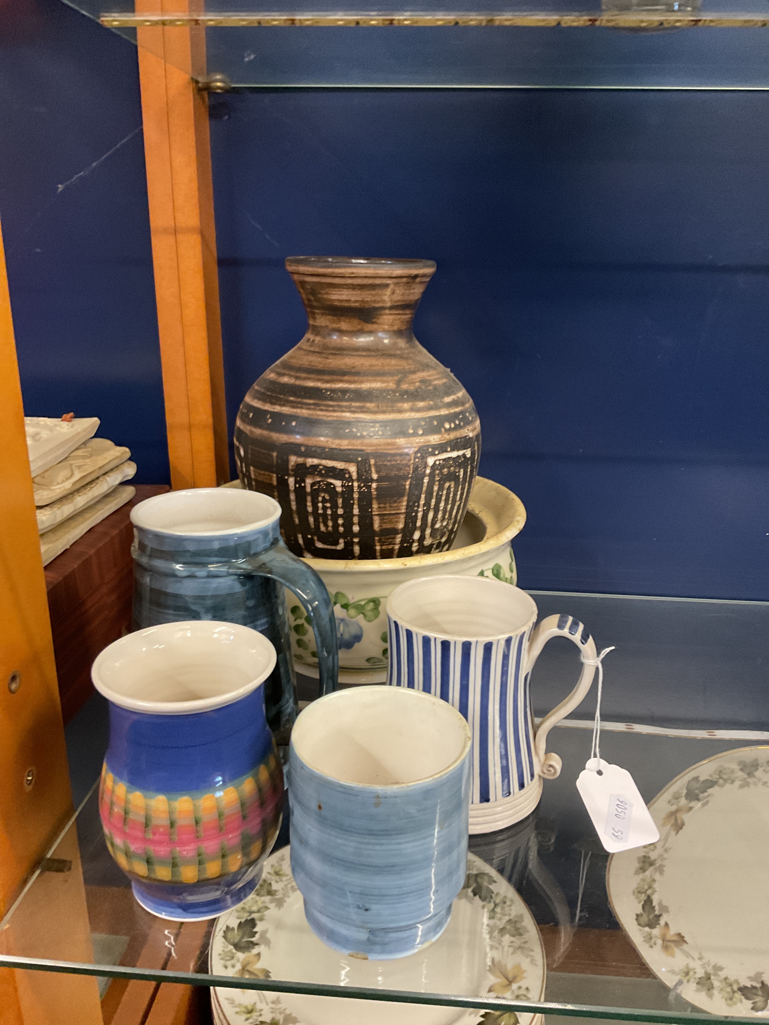 A mixed selection of Cinque Ports Pottery to include bowl, vase, tankard and a Rye Pottery candy strip tankard