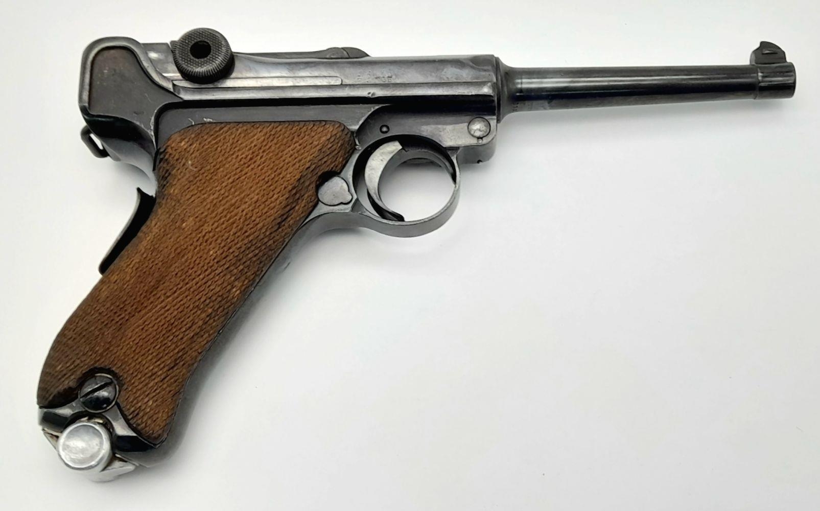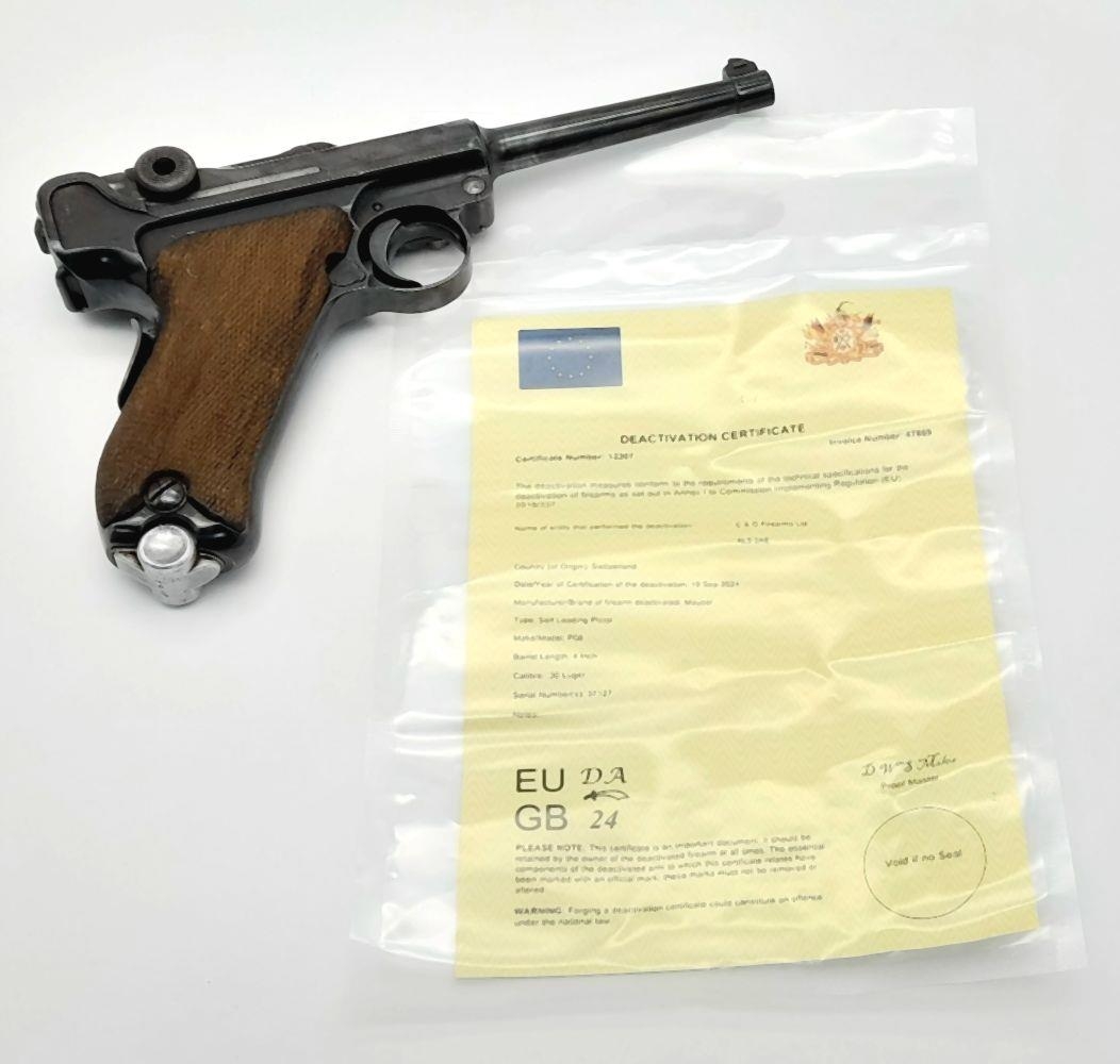 A Deactivated Antique Swiss DWM PO8 Luger Semi Automatic Pistol. .30 calibre. In good condition for its age. Comes with an EU Deactivation certificate. UK/EU sales only - Not Holland.