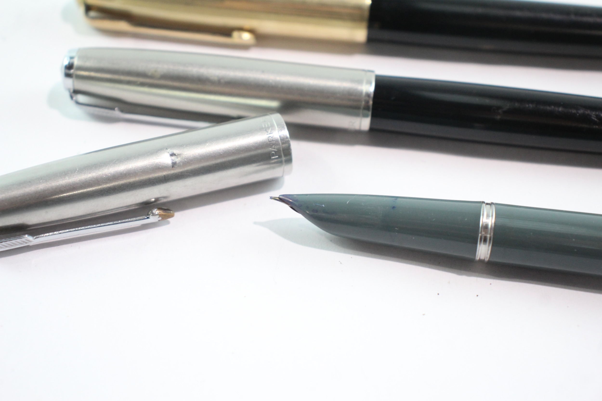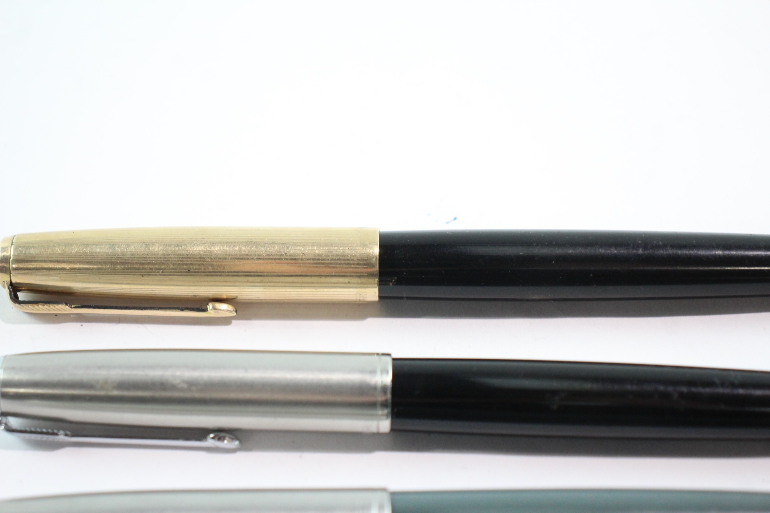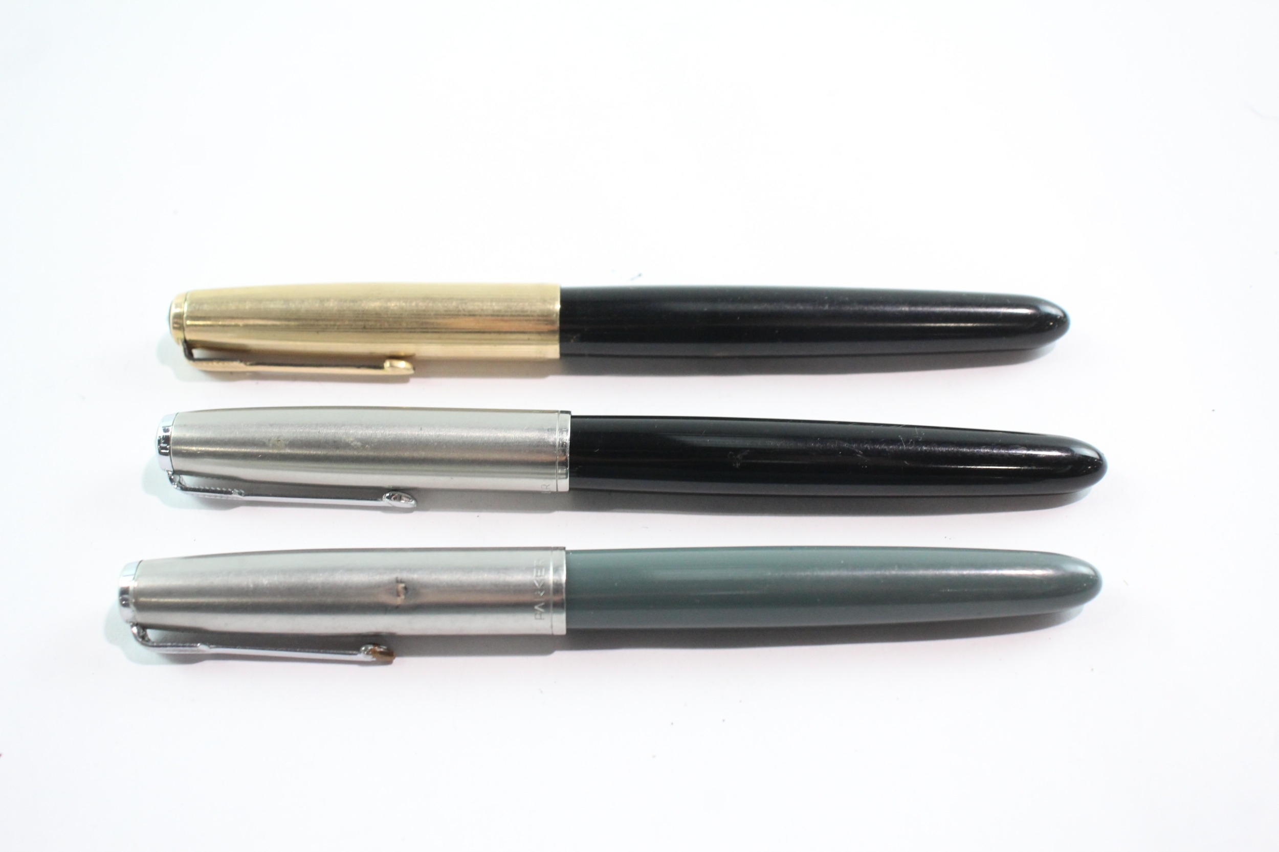 3 x Vintage Parker 51 Fountain Pens w/ 14ct Gold Nibs WRITING Inc Gold Plate Cap