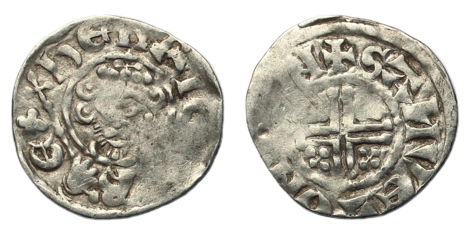 Henry III (1216-1272) Penny, short cross type class 6c1, Canterbury, moneyer Samuel, crowned facing bust holding sceptre, rev. voided short cross, +SAMVEL.ON.[CA]N, 1.42g, (SCBC 1355A, N.976/1). Fine