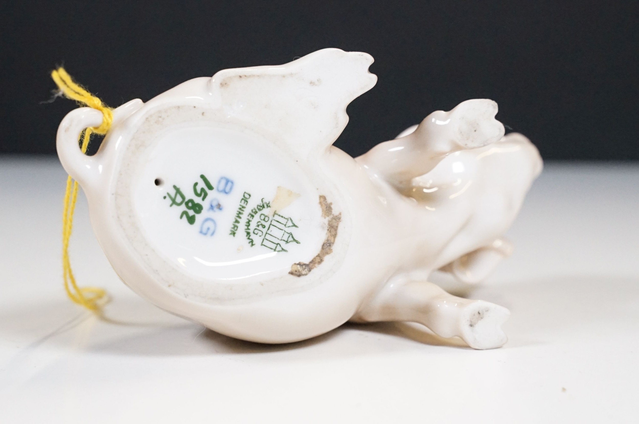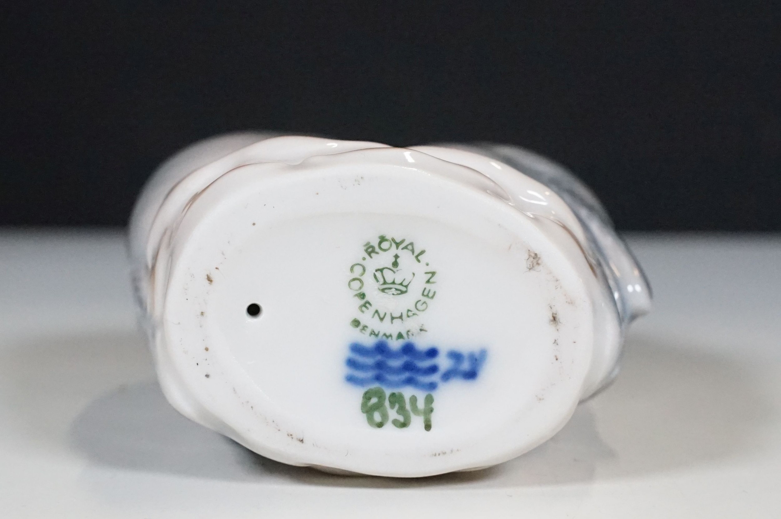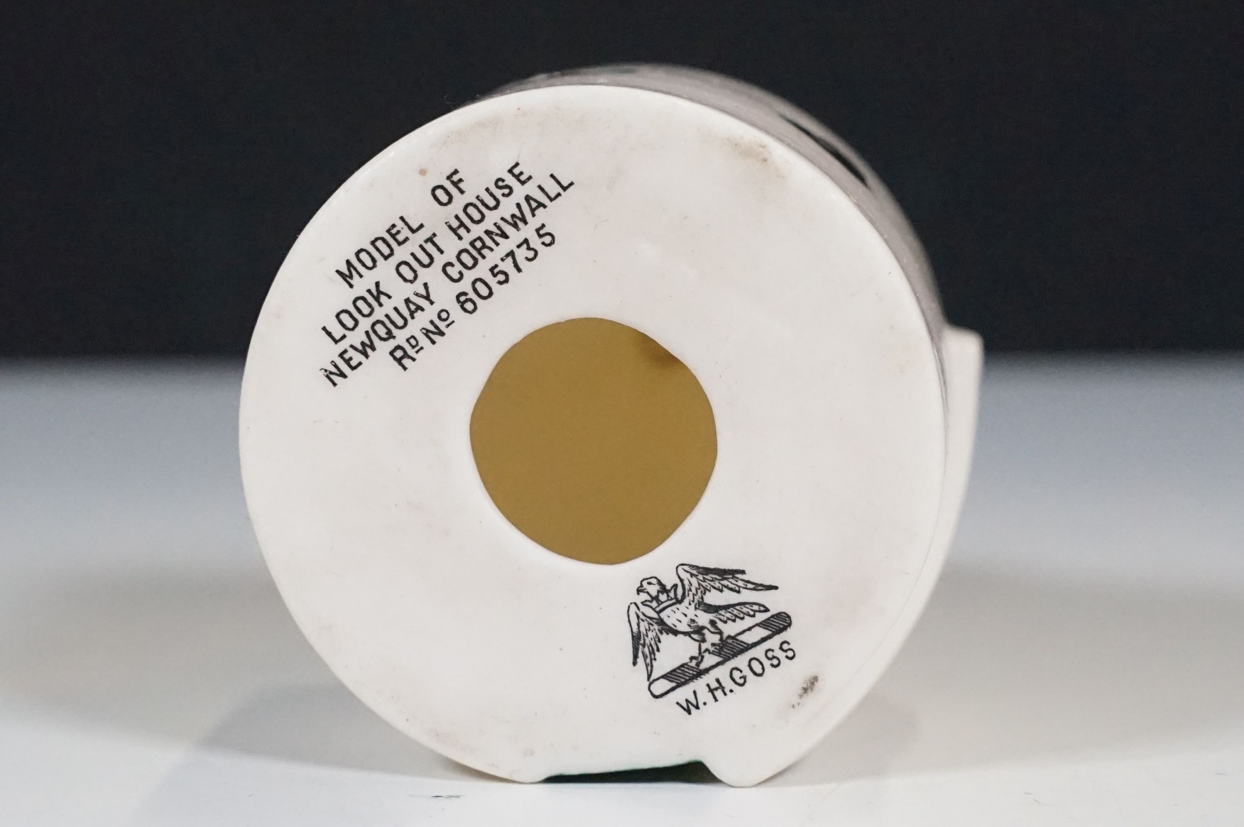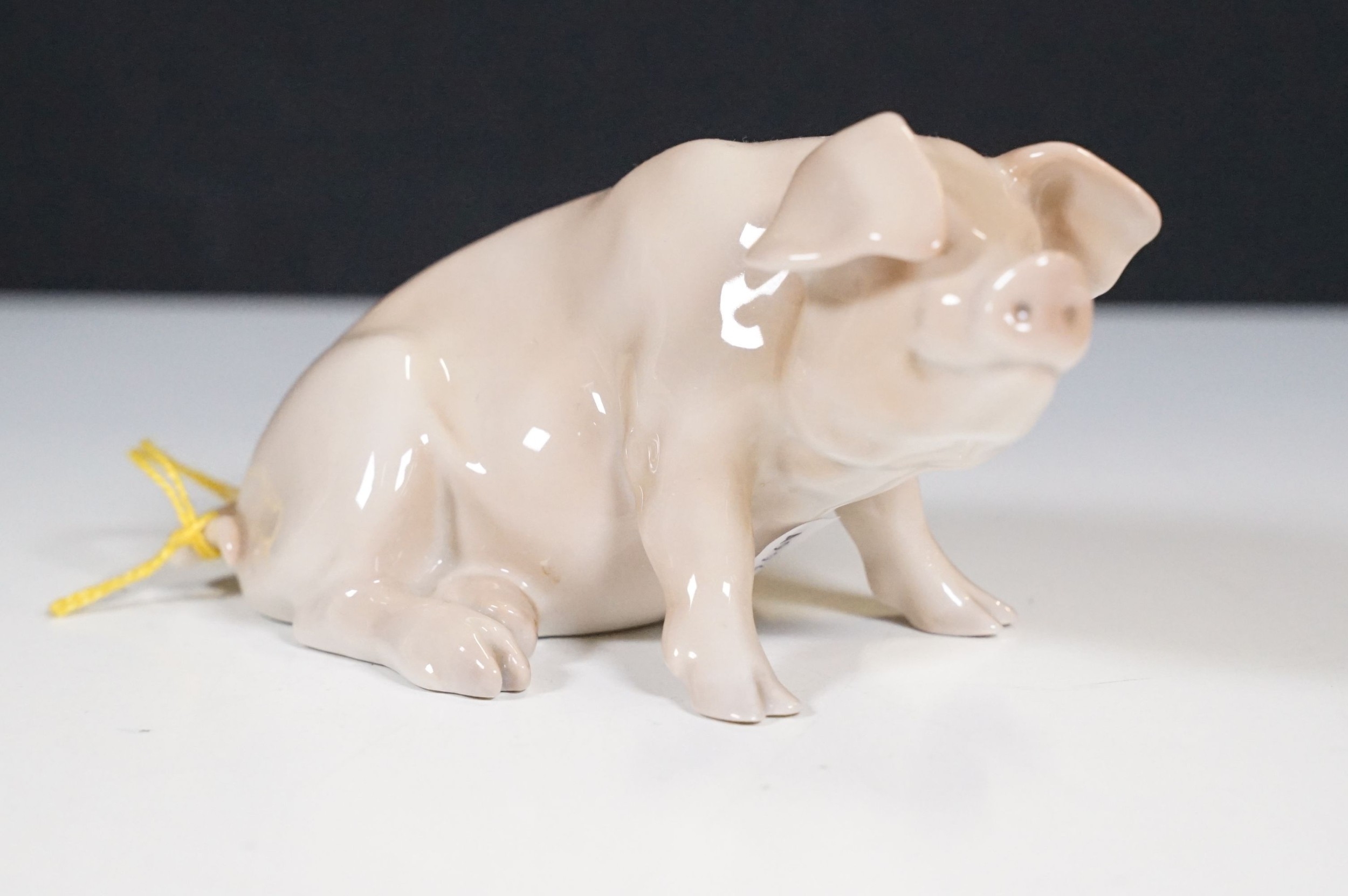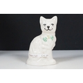 Selection of ceramics to include a Belleek clover vase H 20.5cm plate, dish and cat figurine, Royal Worcester pie funnel, W.H Goss 'Look out House' model, Royal Copenhagen rabbit figurine, squirrel, bull dog, owl and pig examples (12)