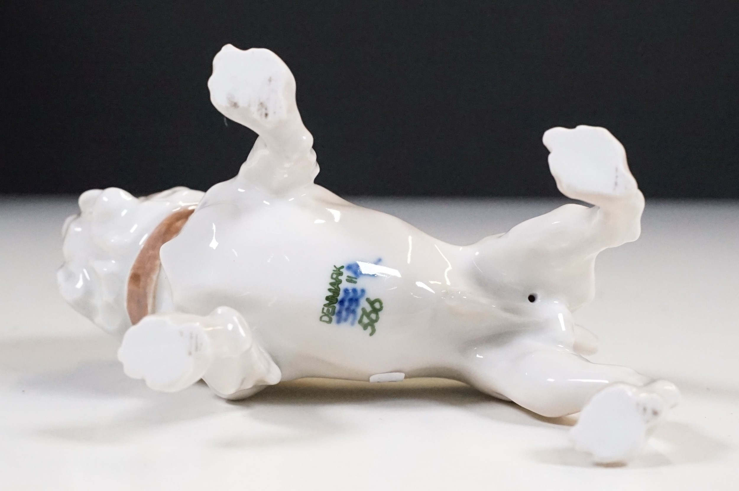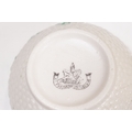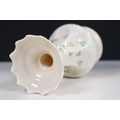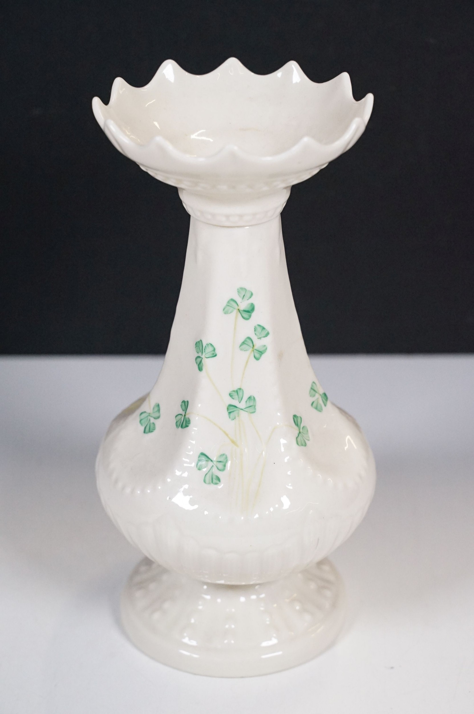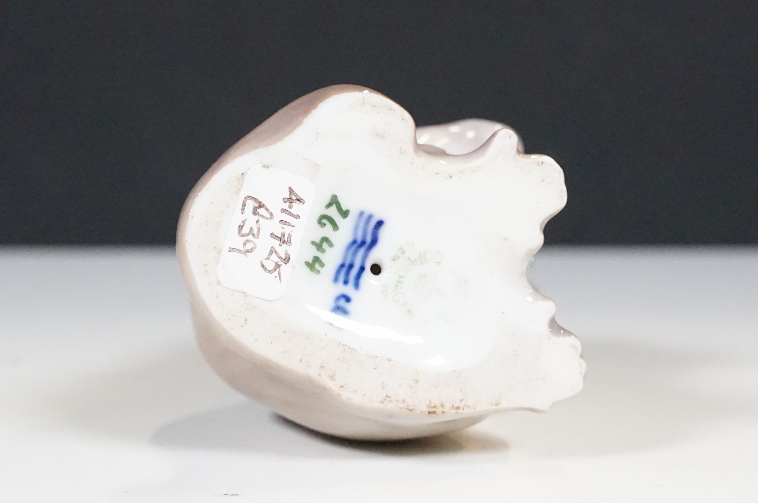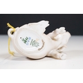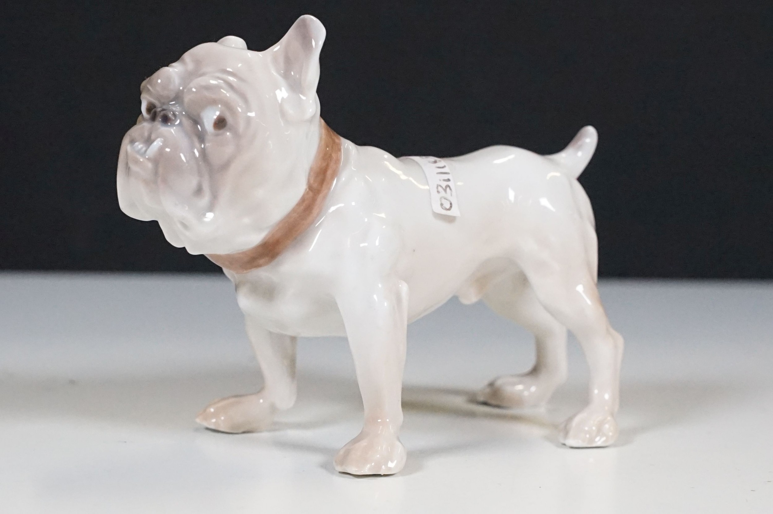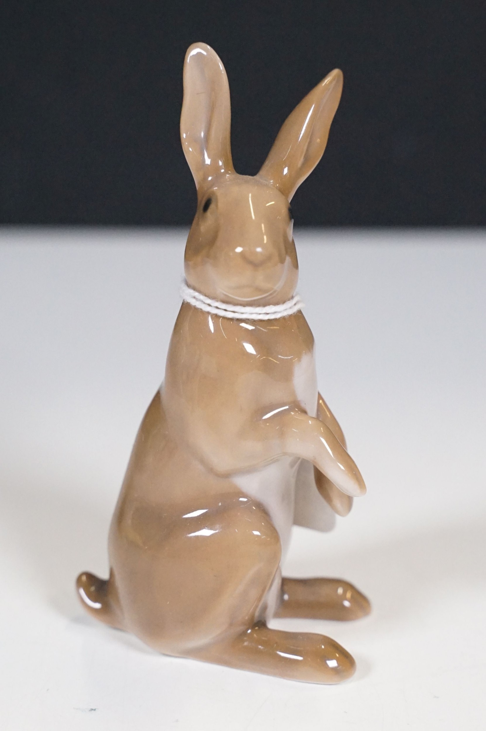 Selection of ceramics to include a Belleek clover vase H 20.5cm plate, dish and cat figurine, Royal Worcester pie funnel, W.H Goss 'Look out House' model, Royal Copenhagen rabbit figurine, squirrel, bull dog, owl and pig examples (12)