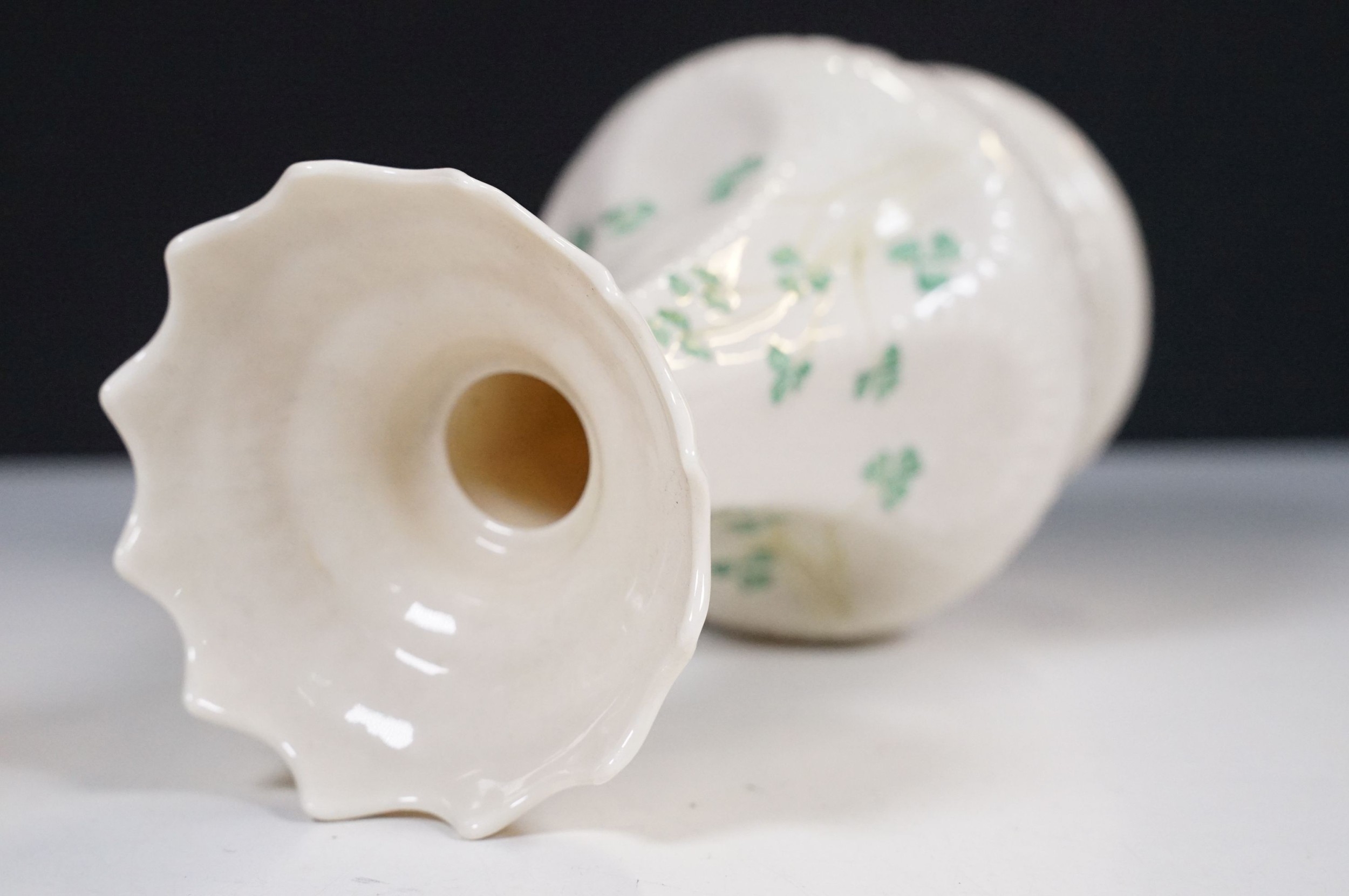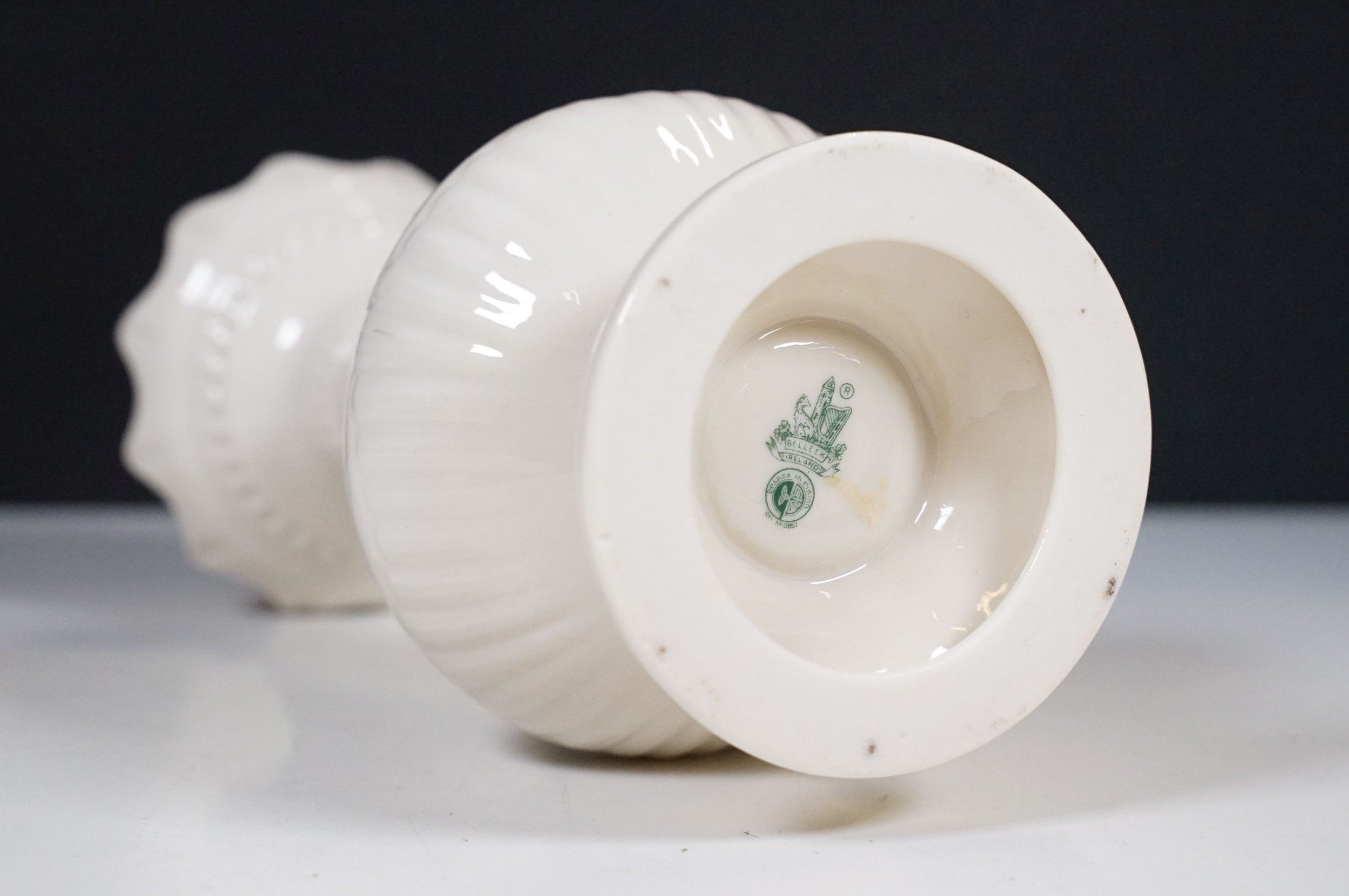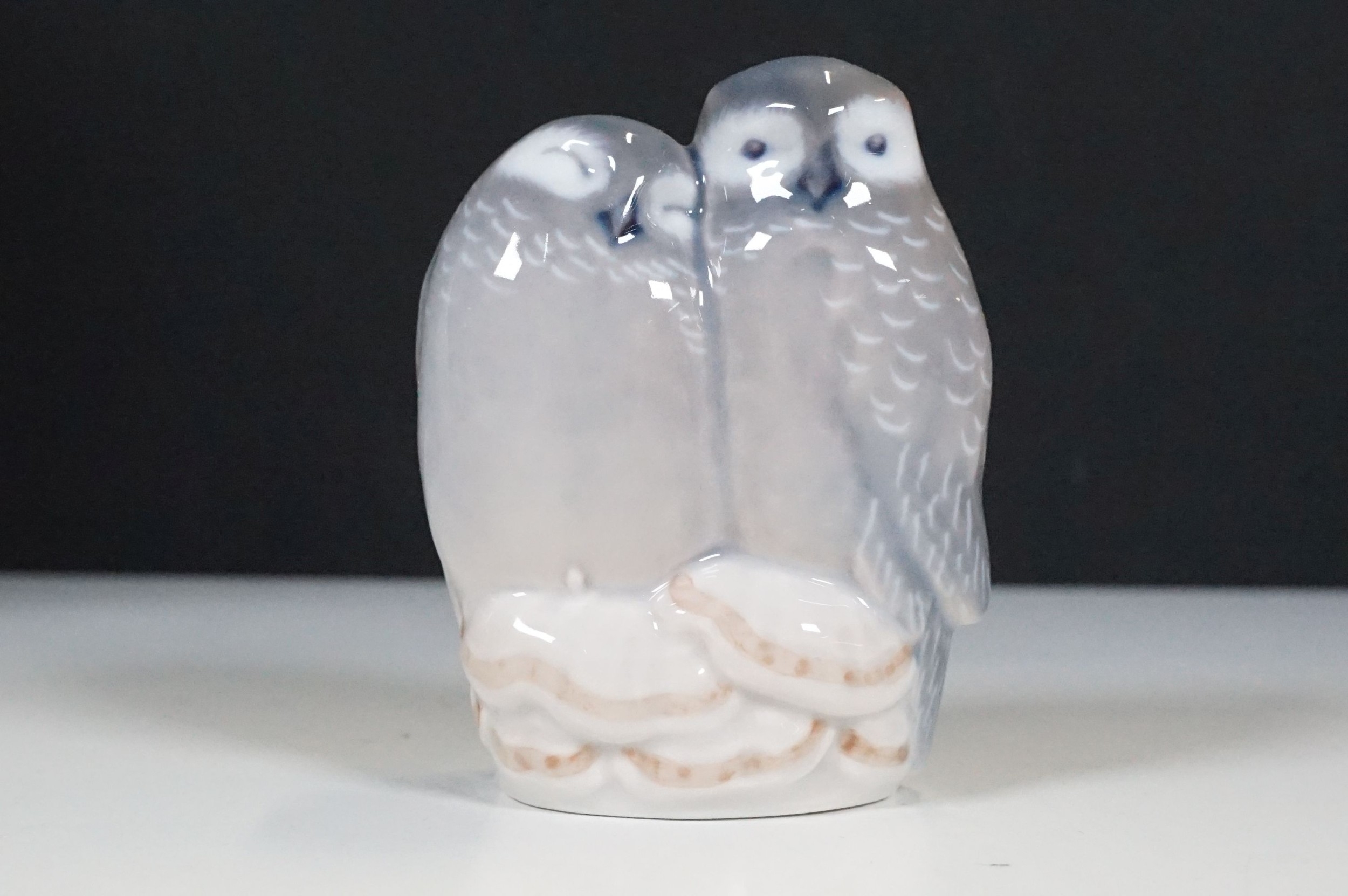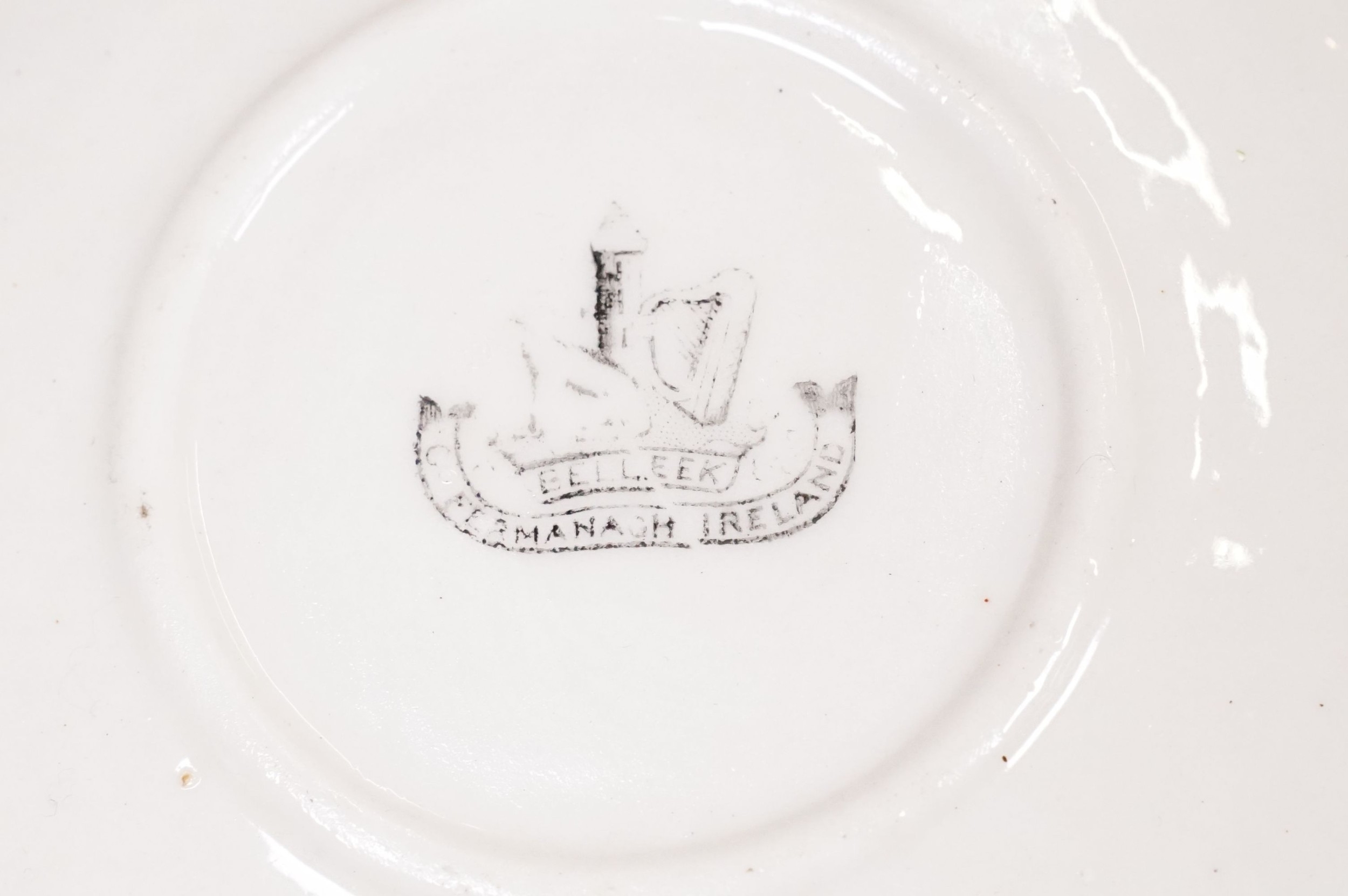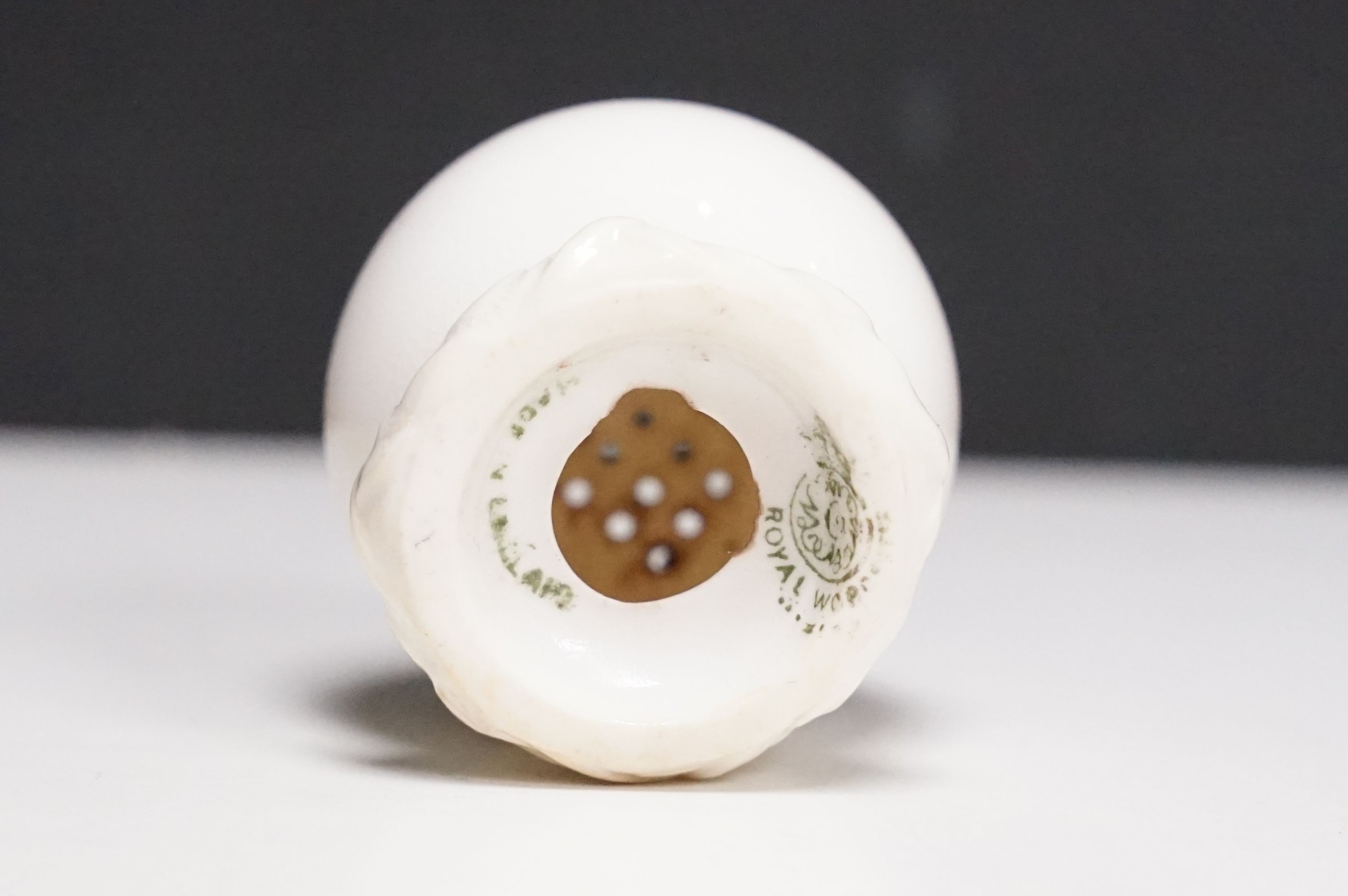 Selection of ceramics to include a Belleek clover vase H 20.5cm plate, dish and cat figurine, Royal Worcester pie funnel, W.H Goss 'Look out House' model, Royal Copenhagen rabbit figurine, squirrel, bull dog, owl and pig examples (12)