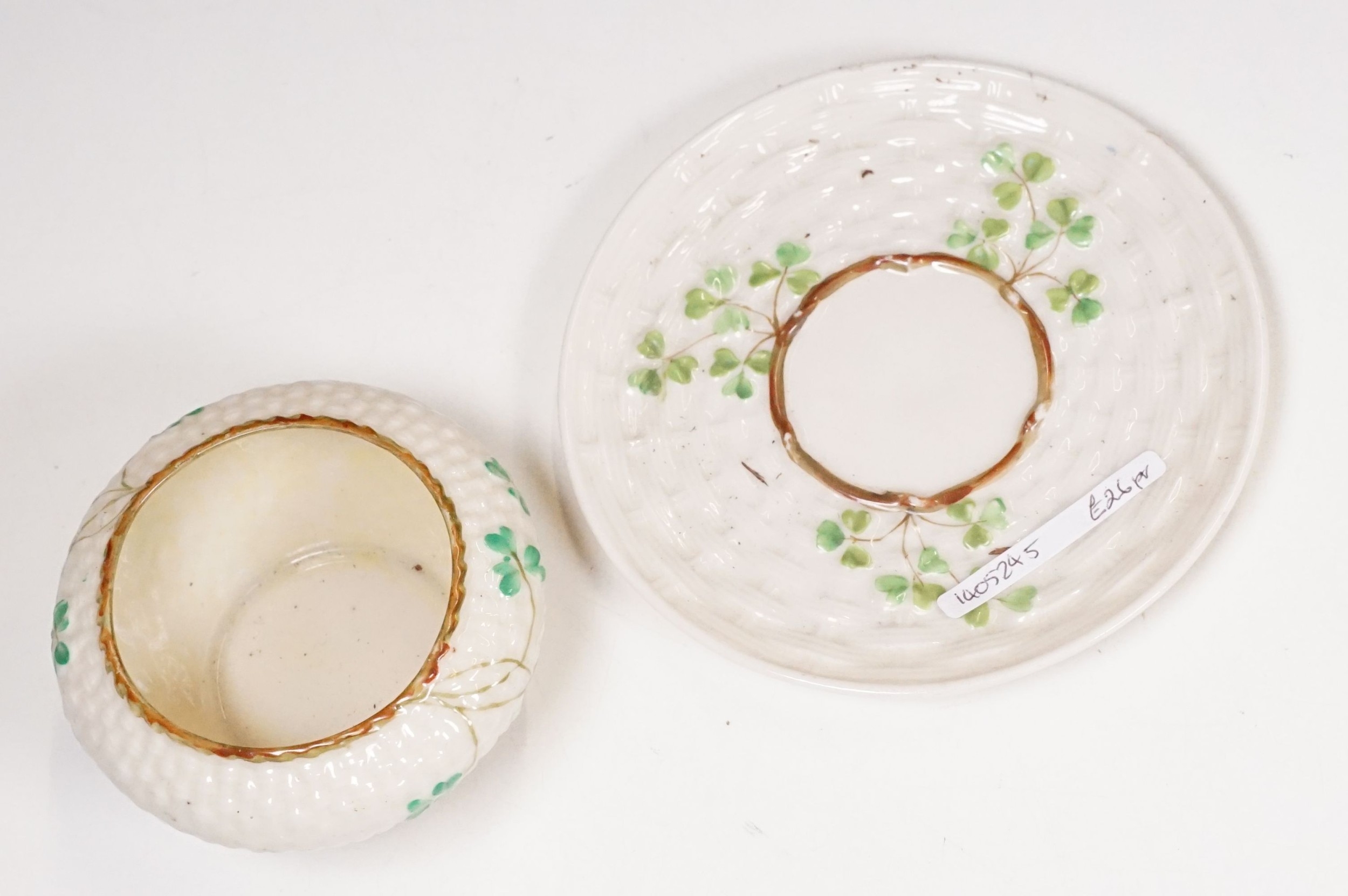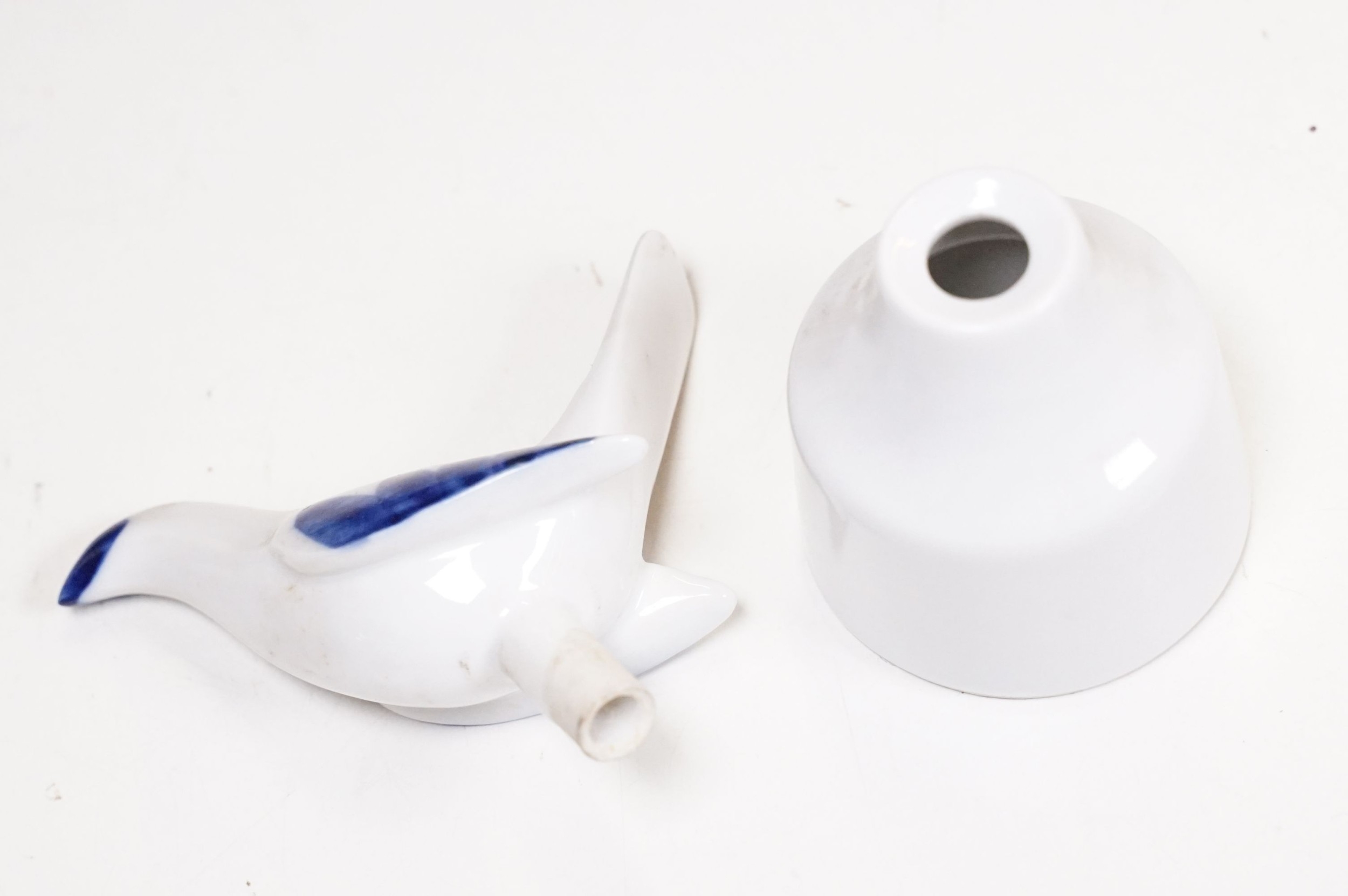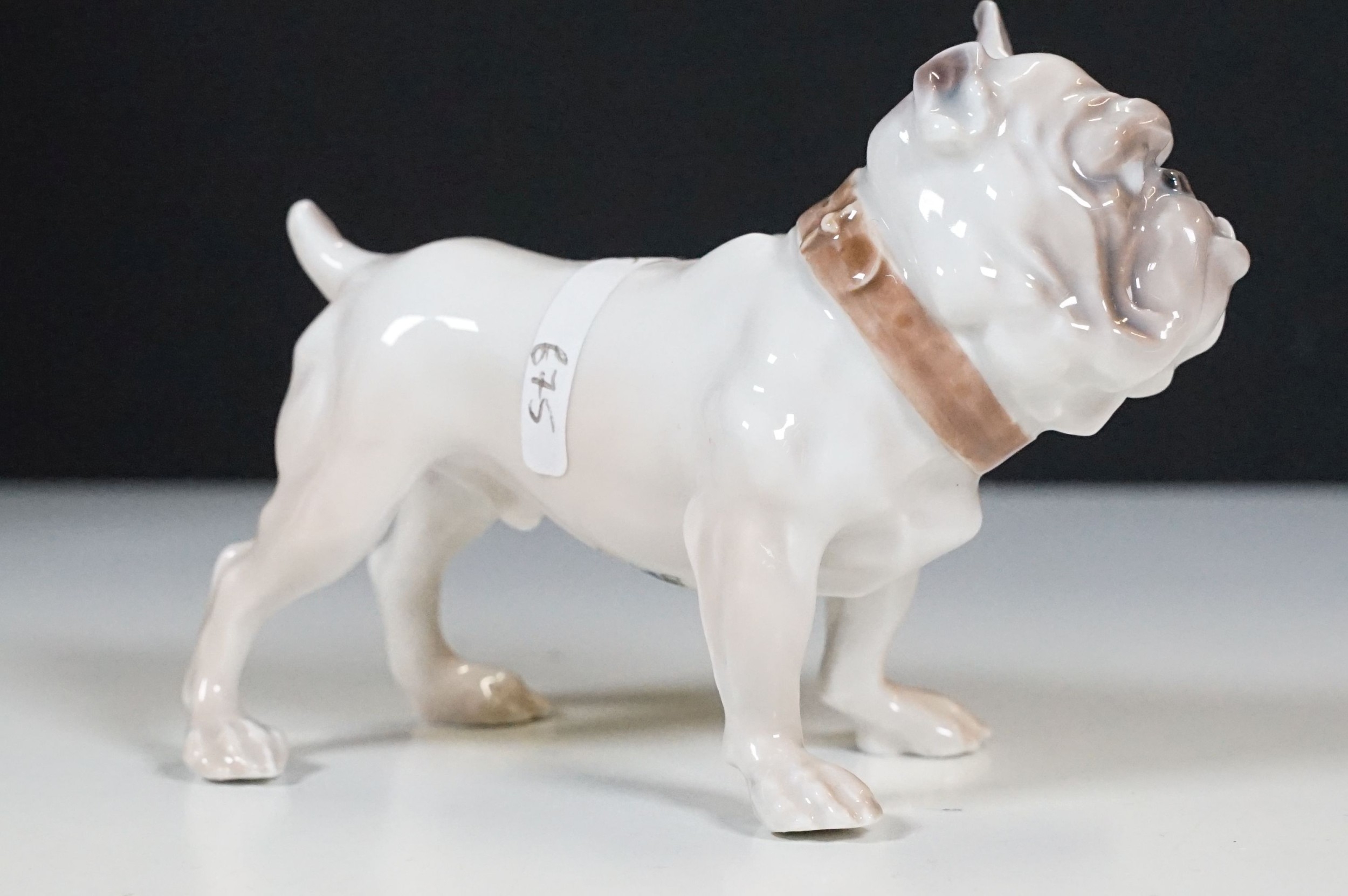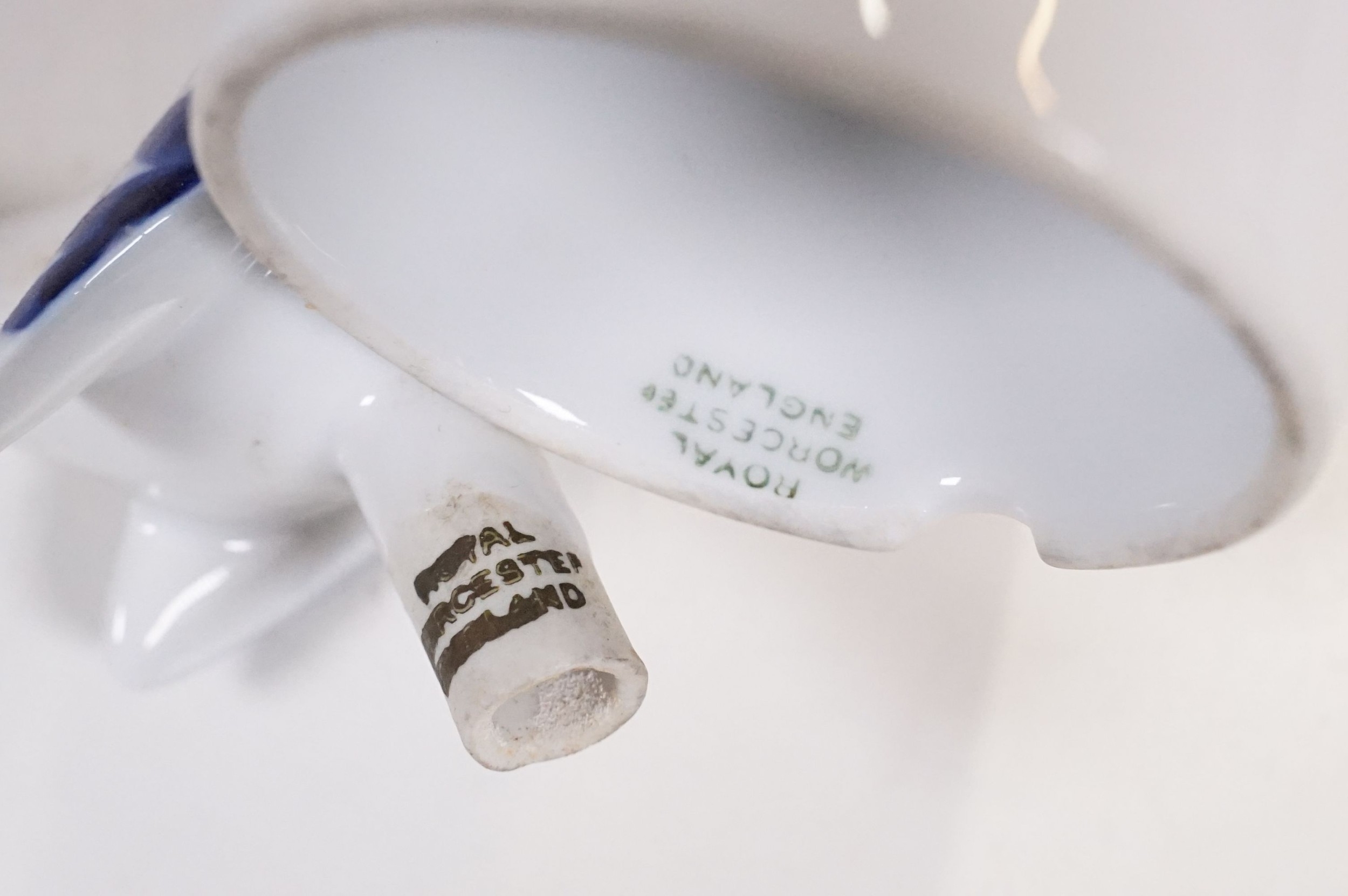 Selection of ceramics to include a Belleek clover vase H 20.5cm plate, dish and cat figurine, Royal Worcester pie funnel, W.H Goss 'Look out House' model, Royal Copenhagen rabbit figurine, squirrel, bull dog, owl and pig examples (12)