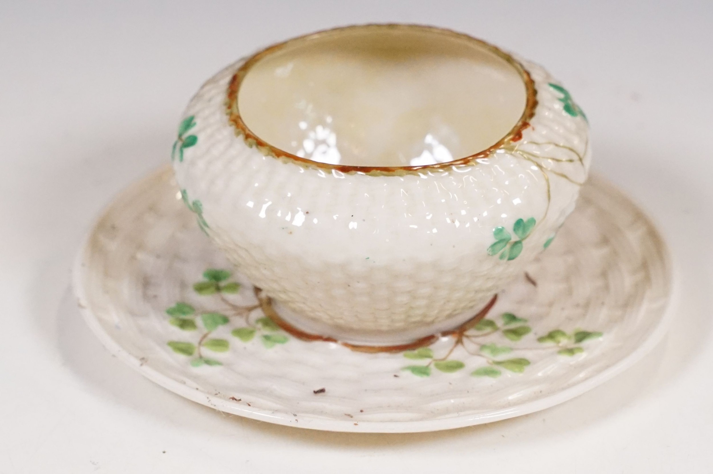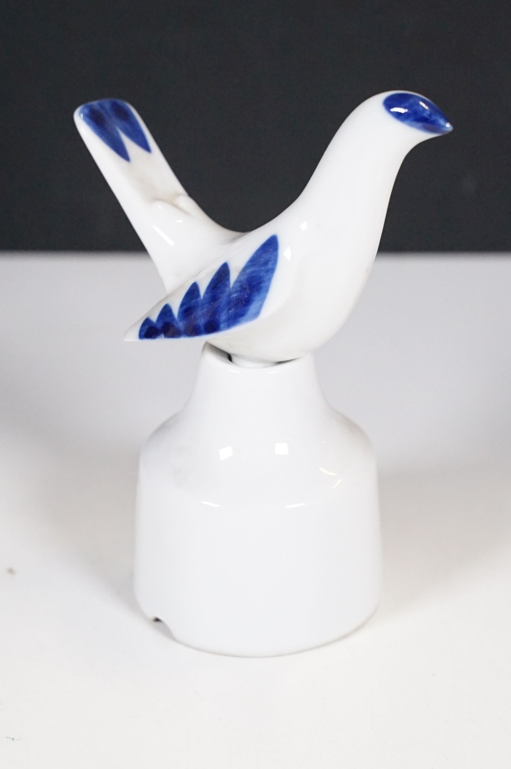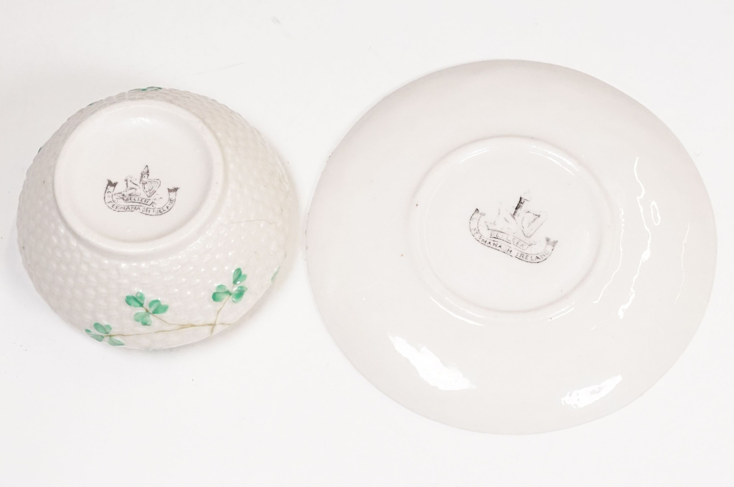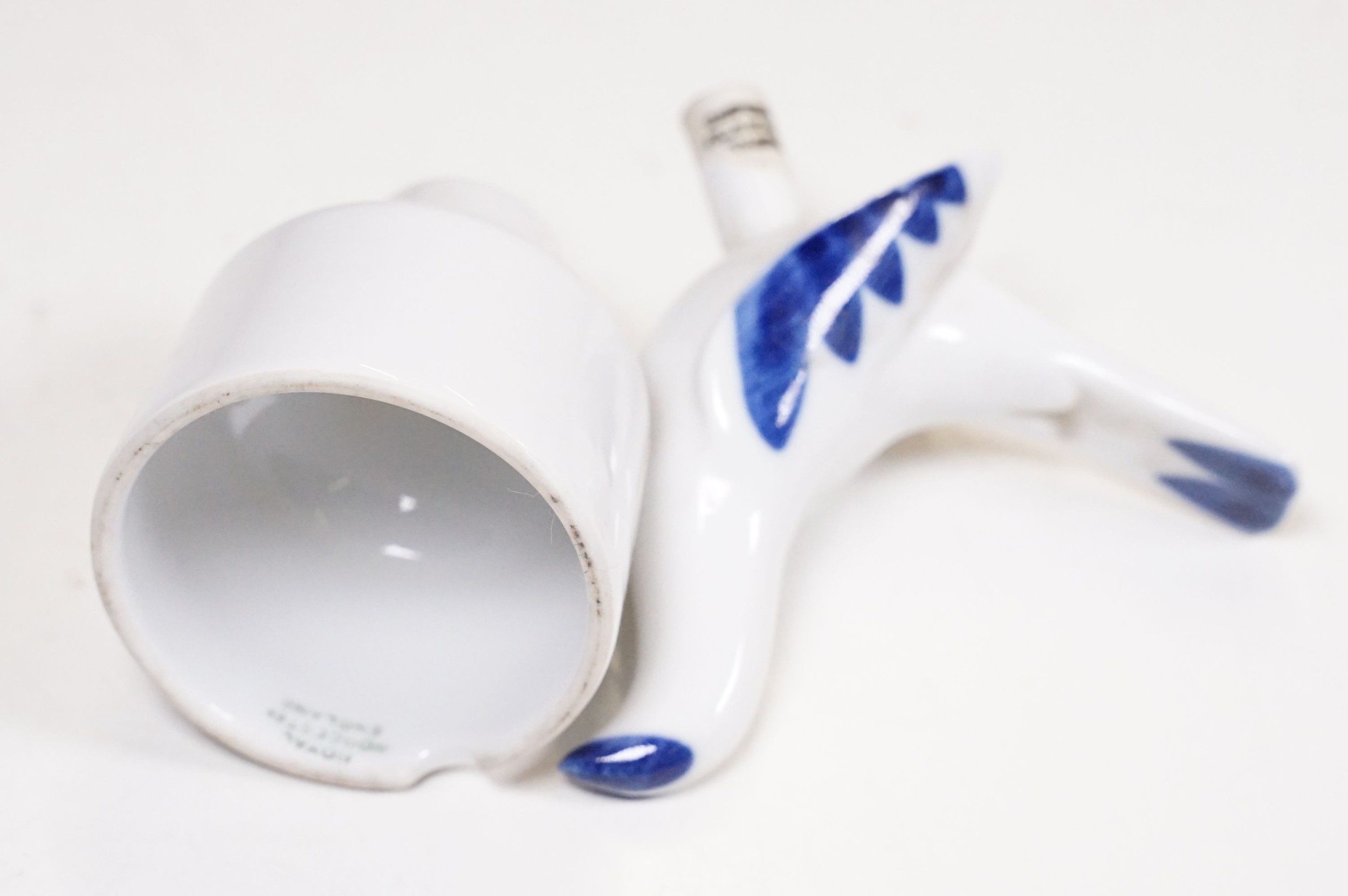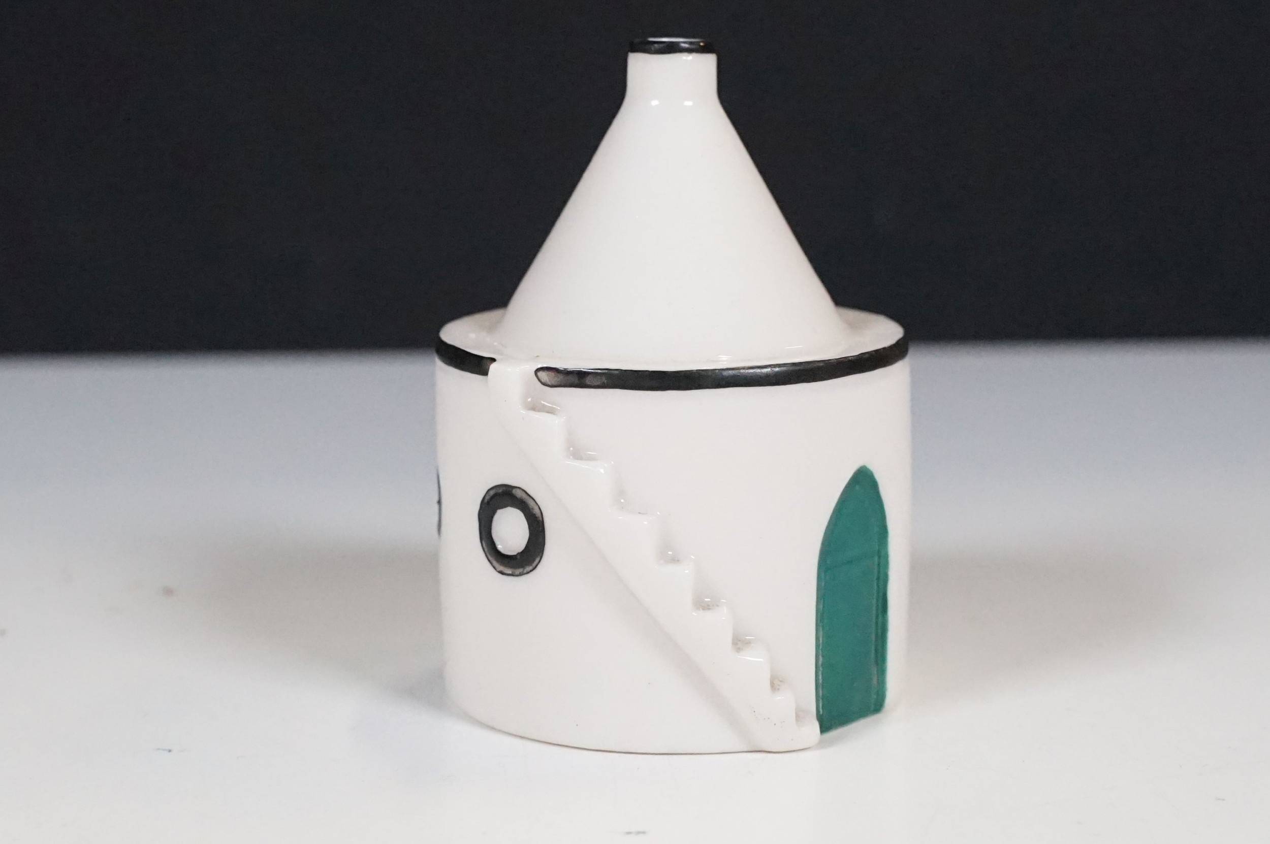 Selection of ceramics to include a Belleek clover vase H 20.5cm plate, dish and cat figurine, Royal Worcester pie funnel, W.H Goss 'Look out House' model, Royal Copenhagen rabbit figurine, squirrel, bull dog, owl and pig examples (12)