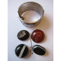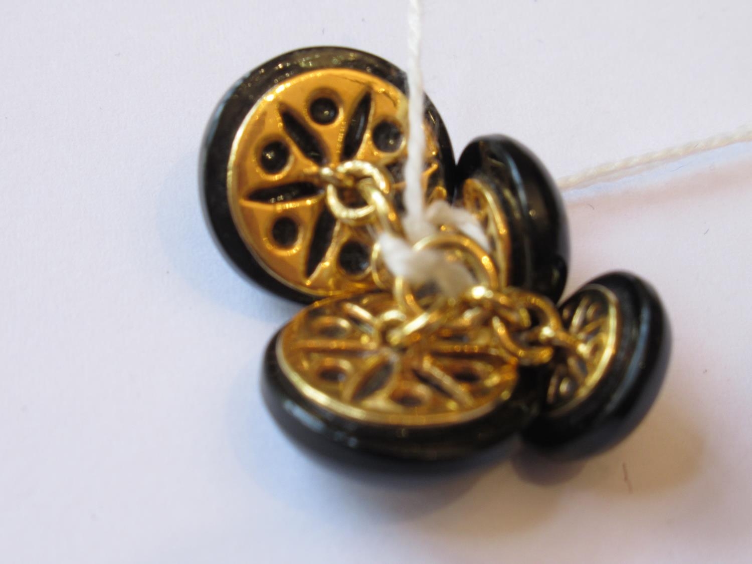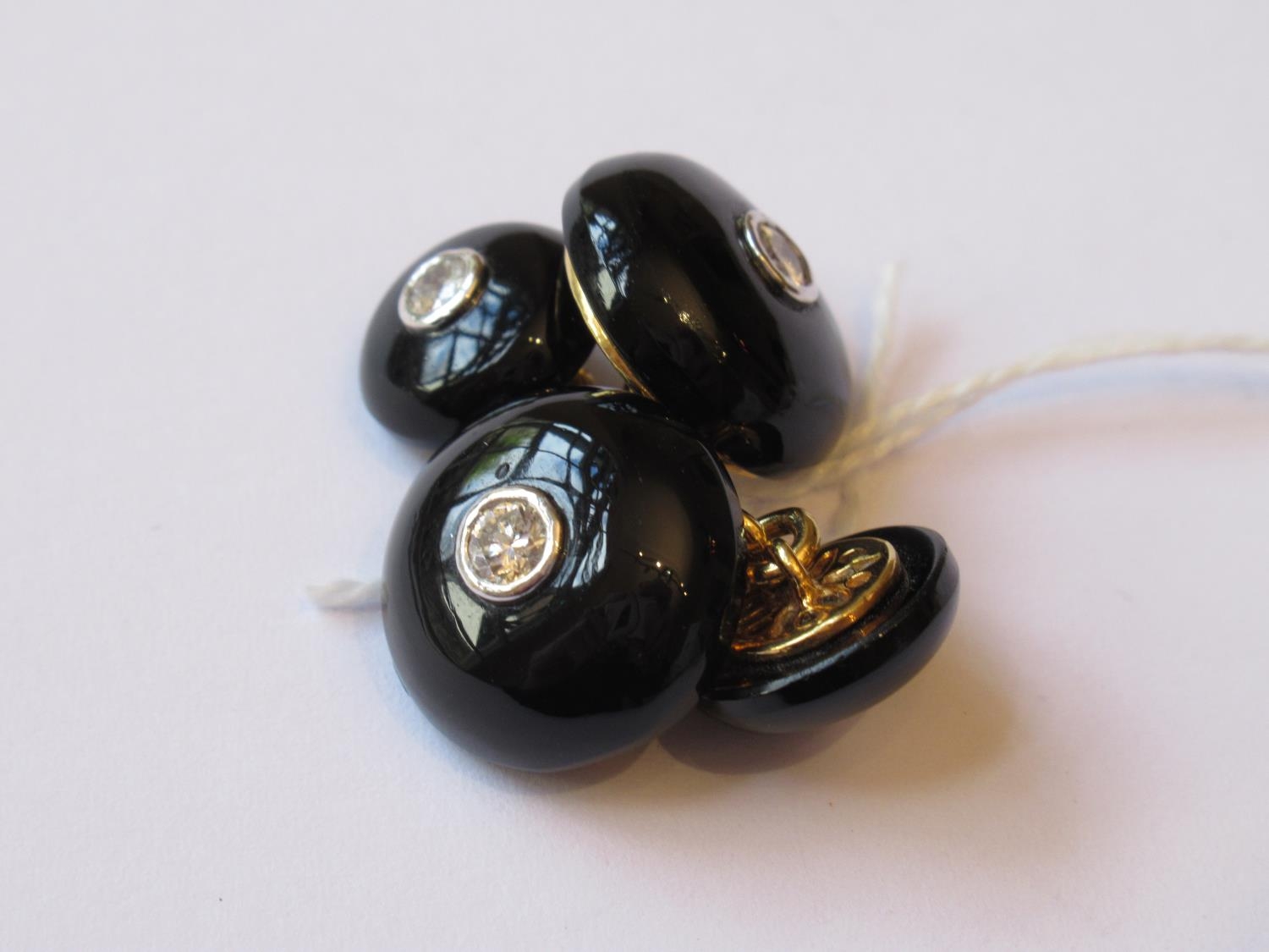 Pair of circular gold mounted onyx and diamond cufflinks
