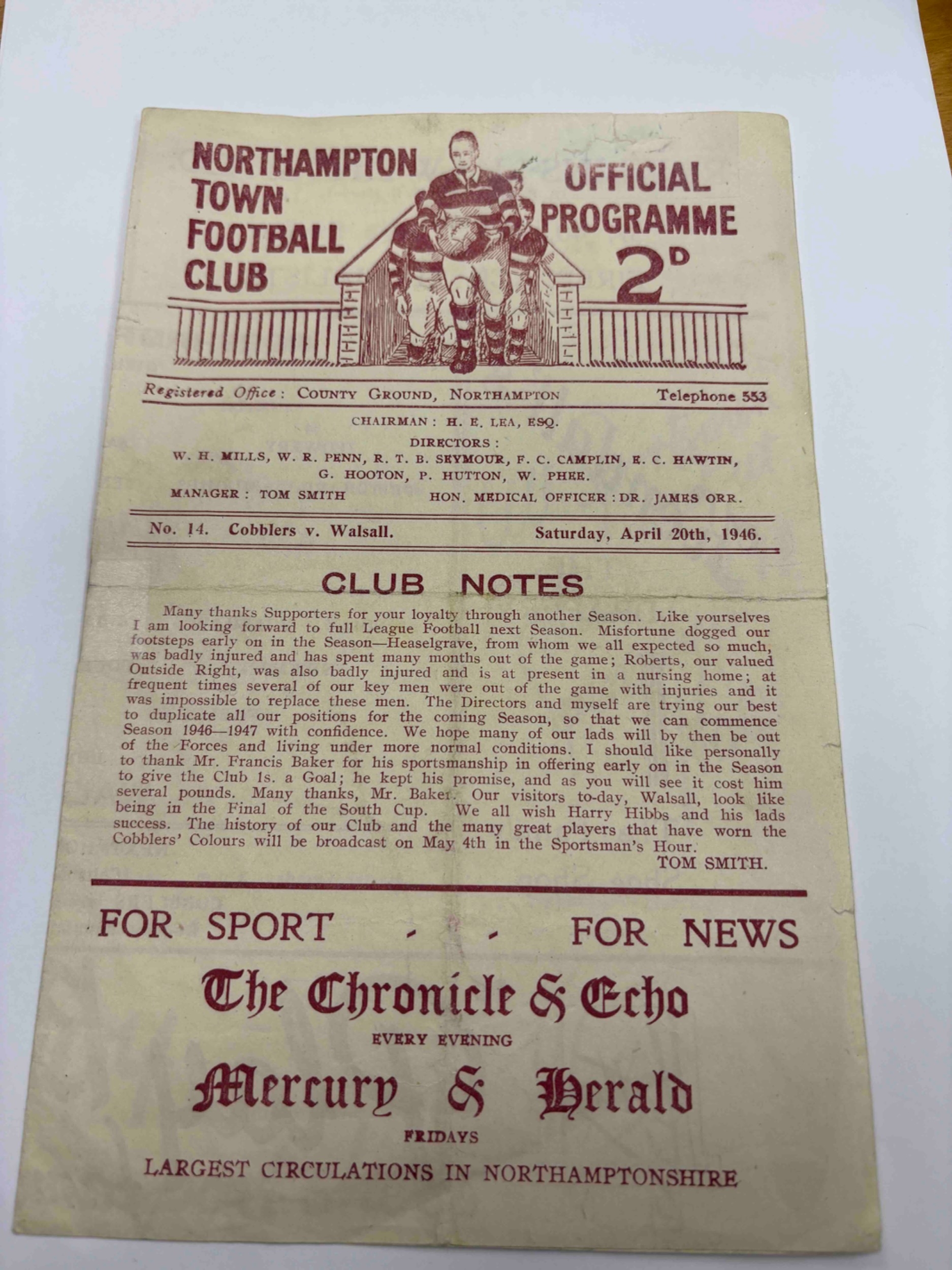 1945/46 Northampton Town v Walsall, folds