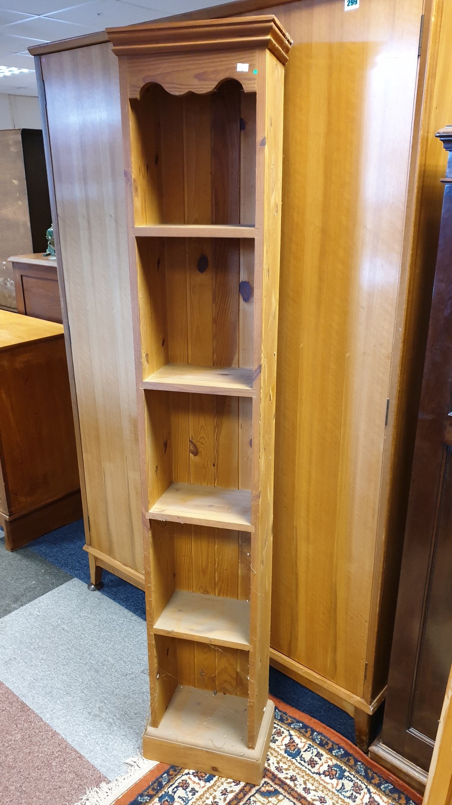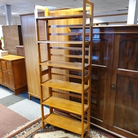 A narrow pine bookcase/display -
