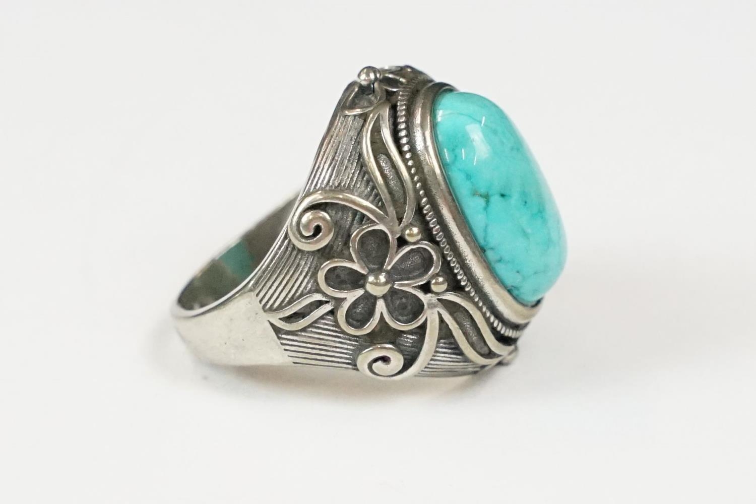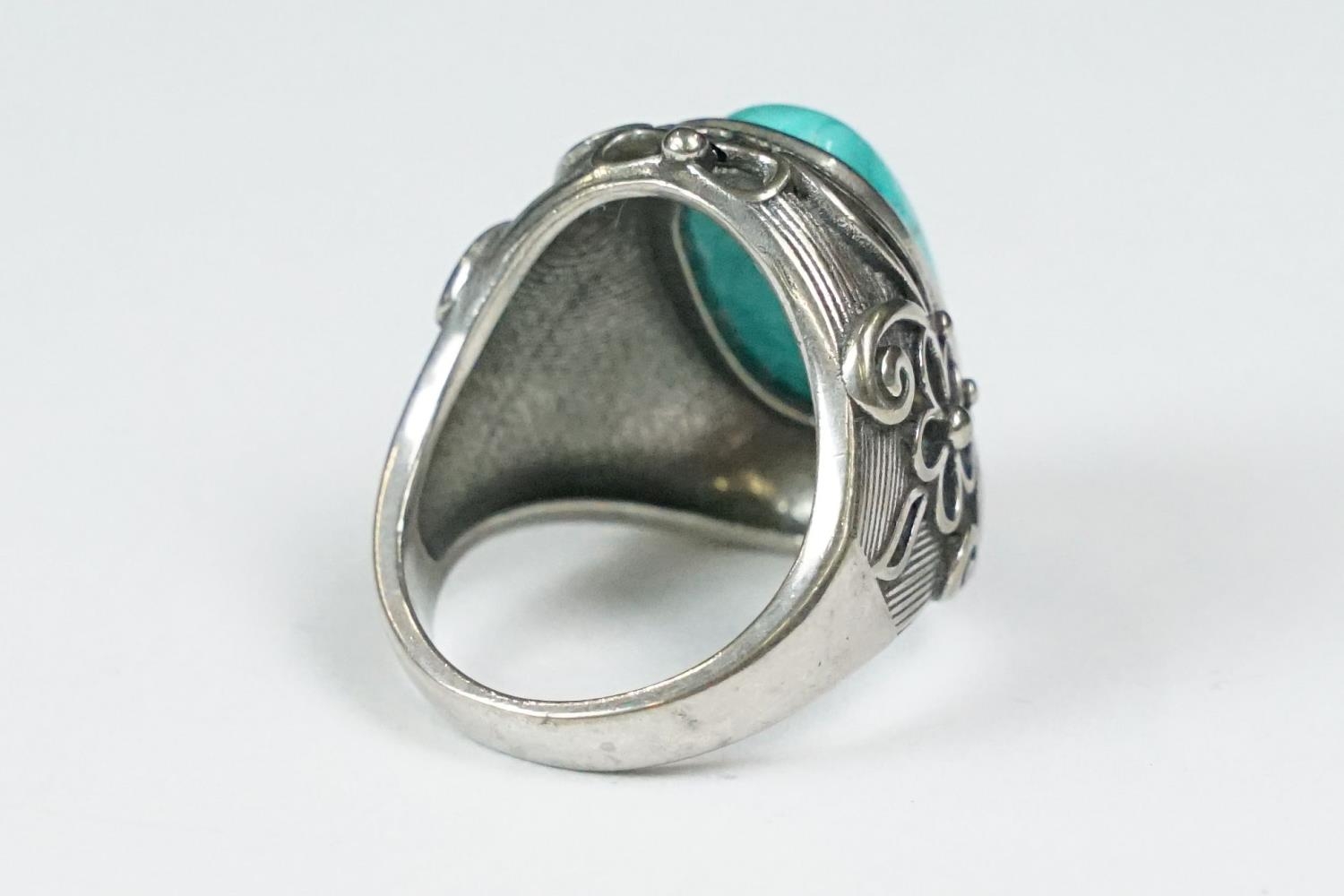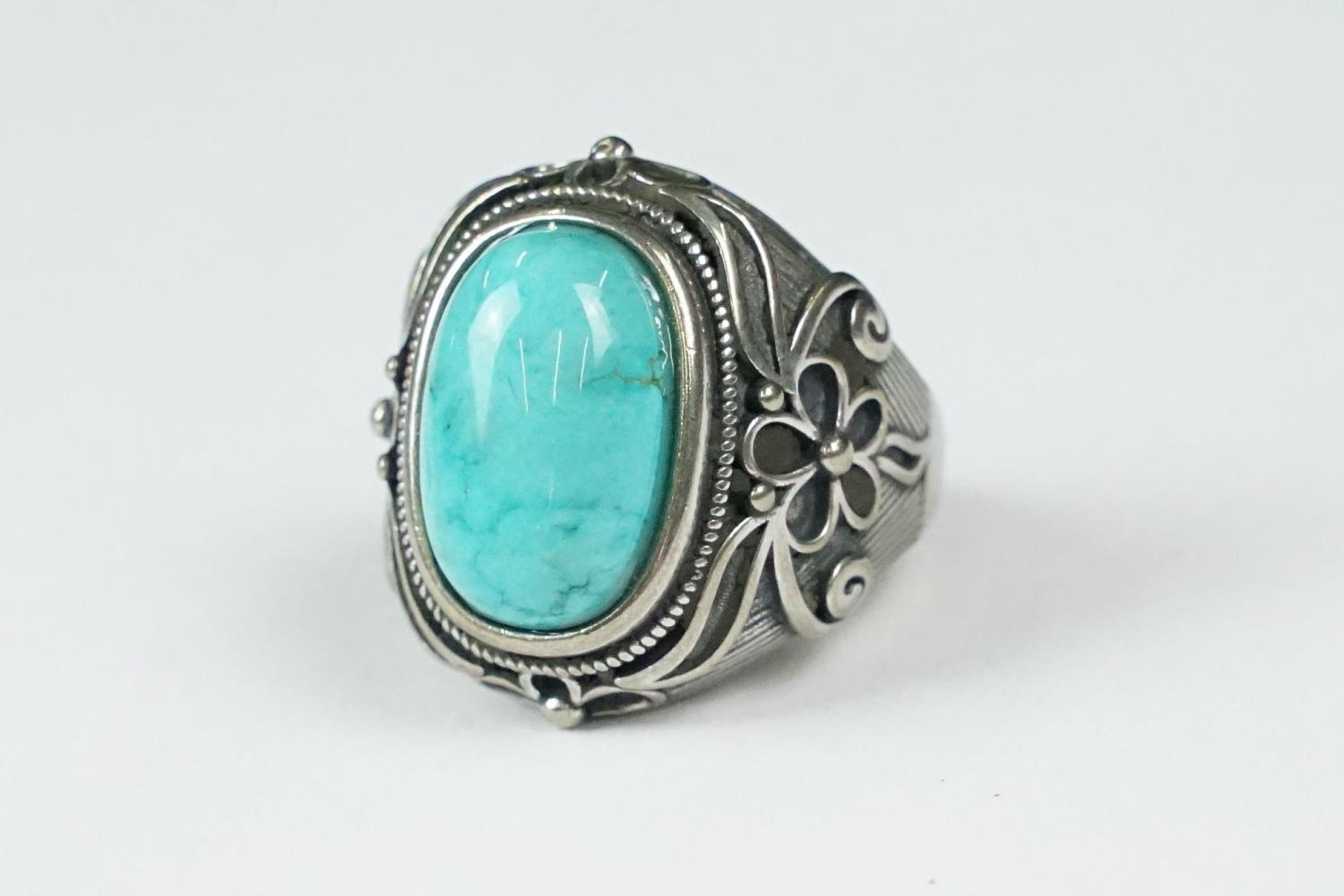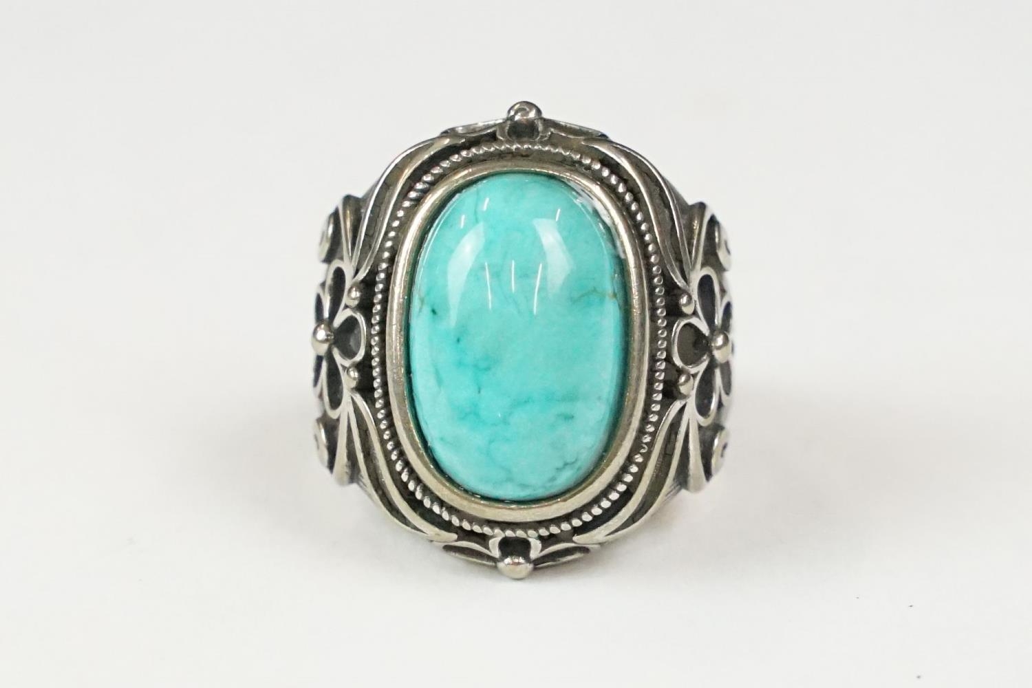 A contemporary 925 sterling silver and turquoise ring, marked 925 to the verso.