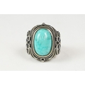 A contemporary 925 sterling silver and turquoise ring, marke...