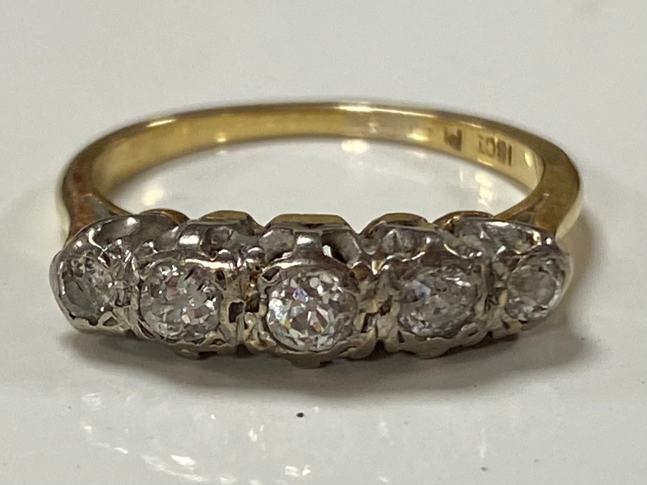 A diamond five stone ring, set with five graduated diamonds in 18ct gold -
