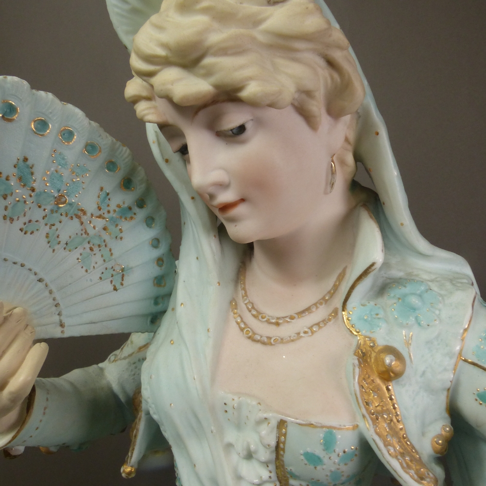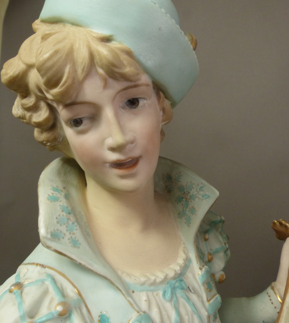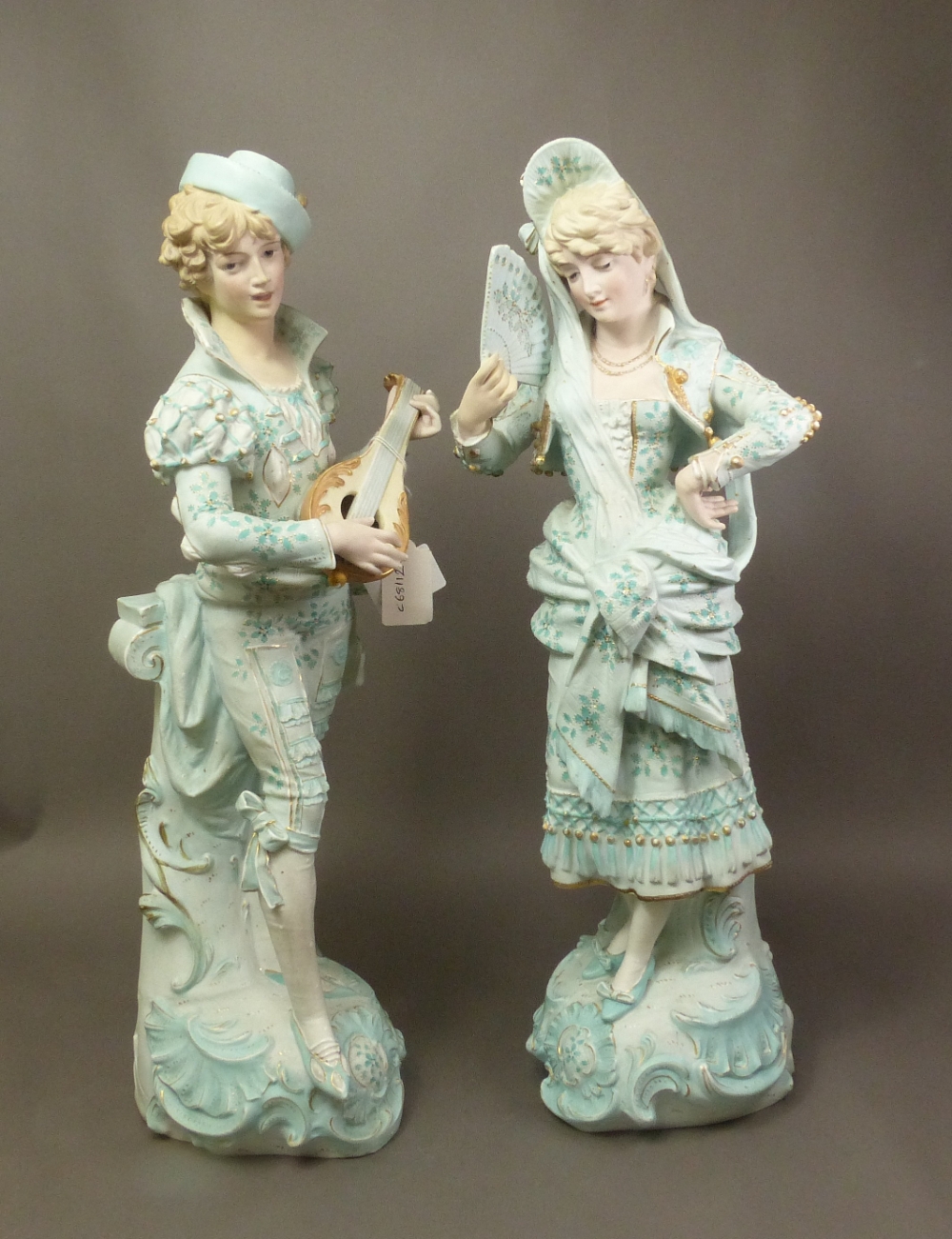Two large Continental figures depicting a male musician and a female dancer, height 49cm (2).