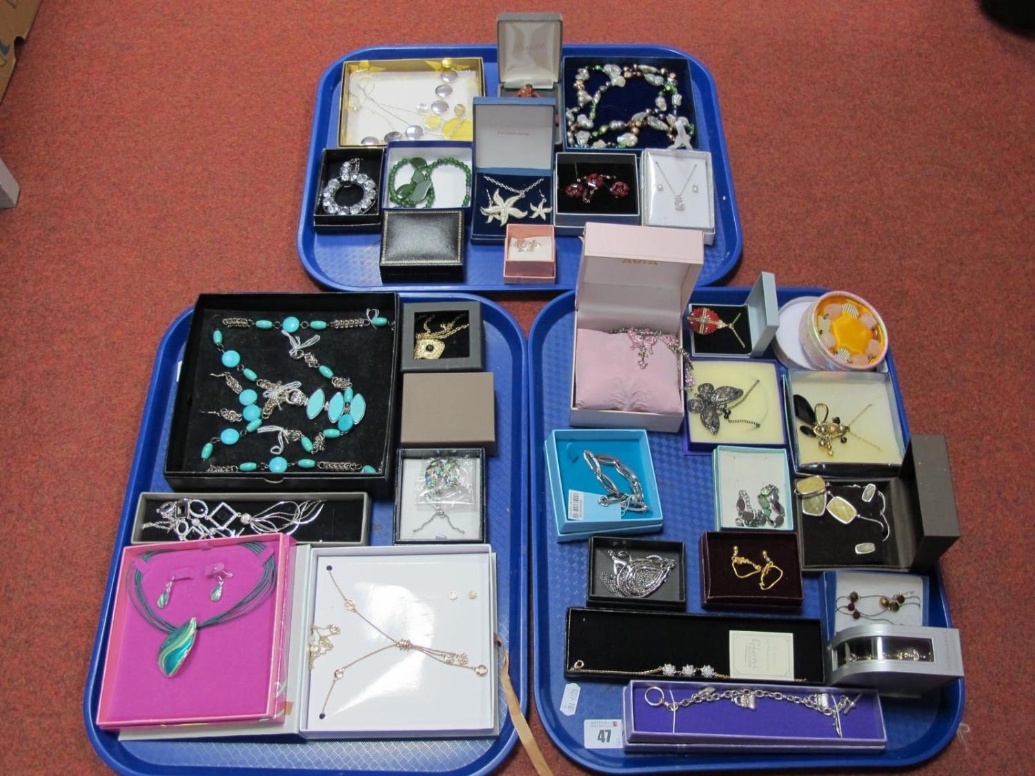 Three Trays of Assorted Boxed Costume Jewellery, including modern, diamanté, ornate, gilt, etc.