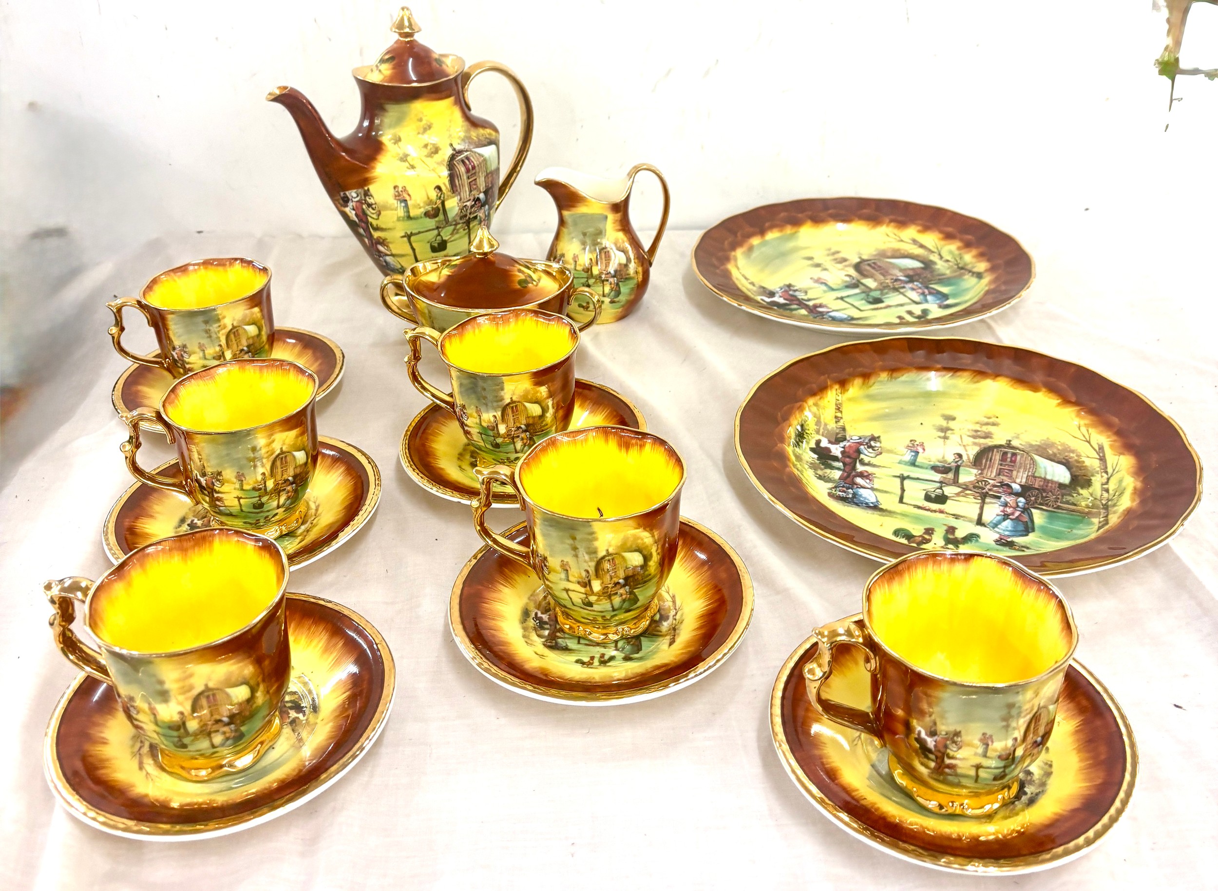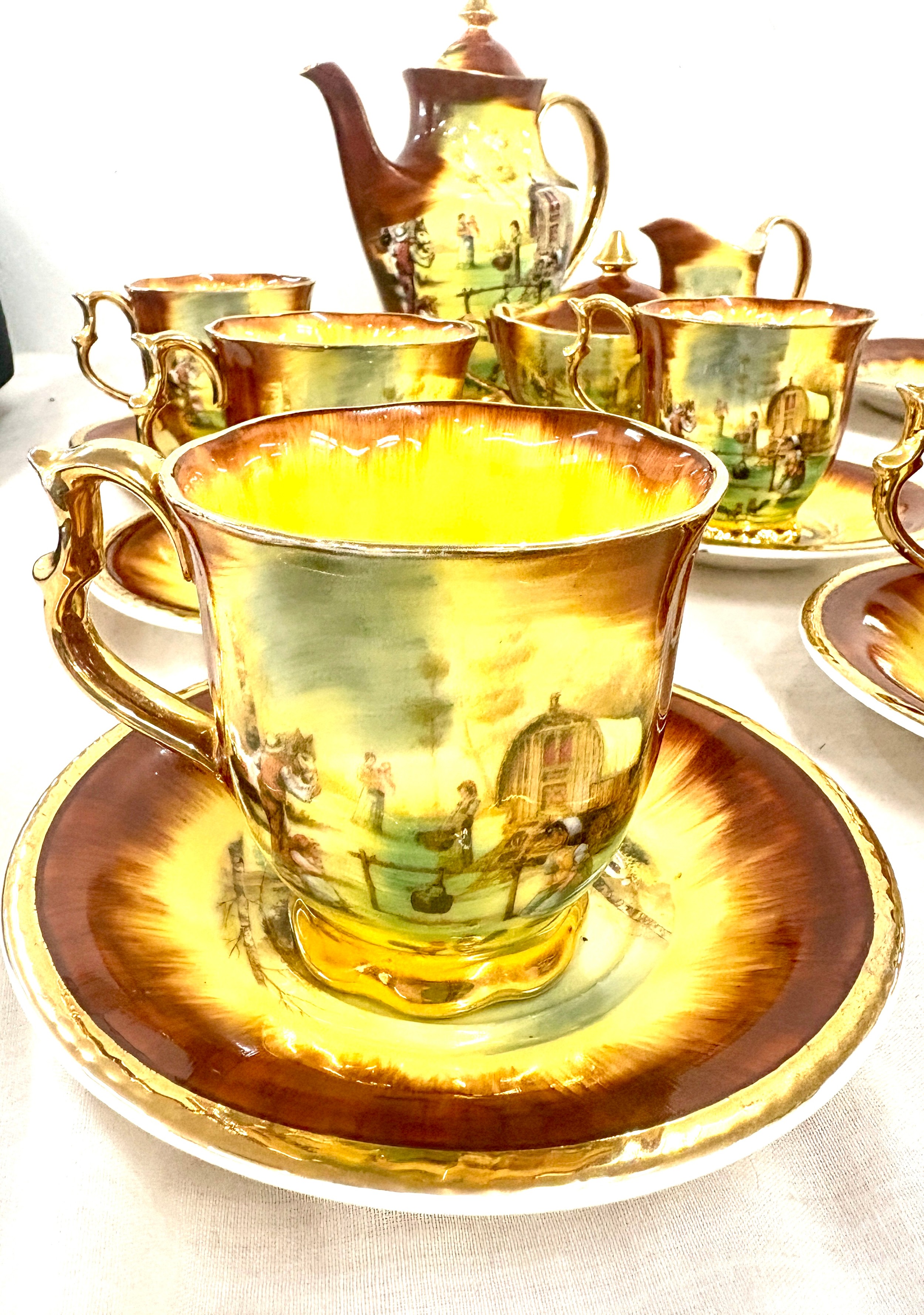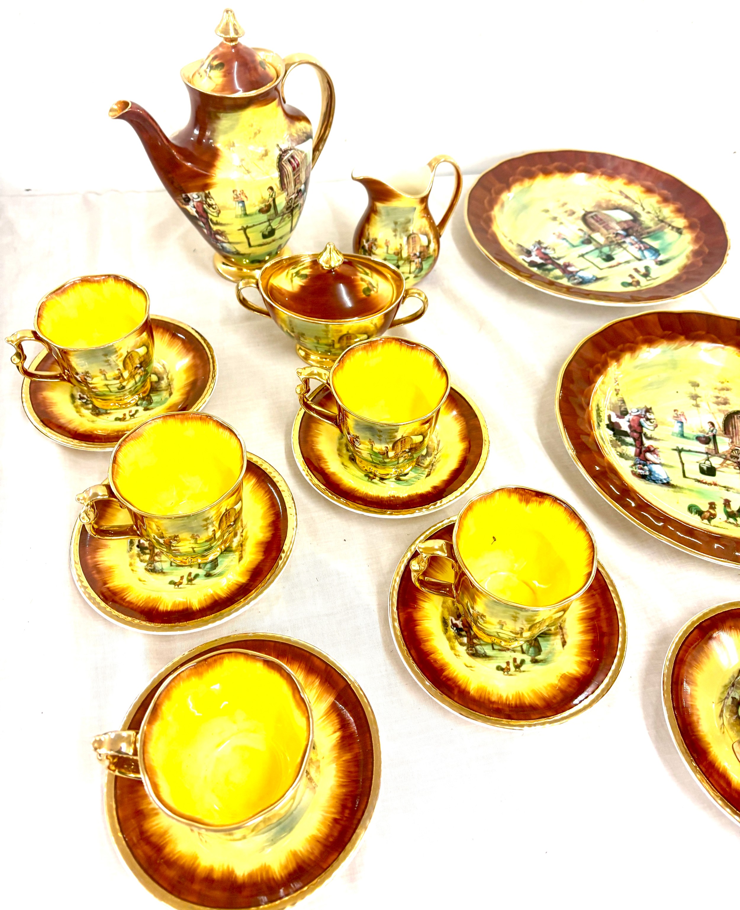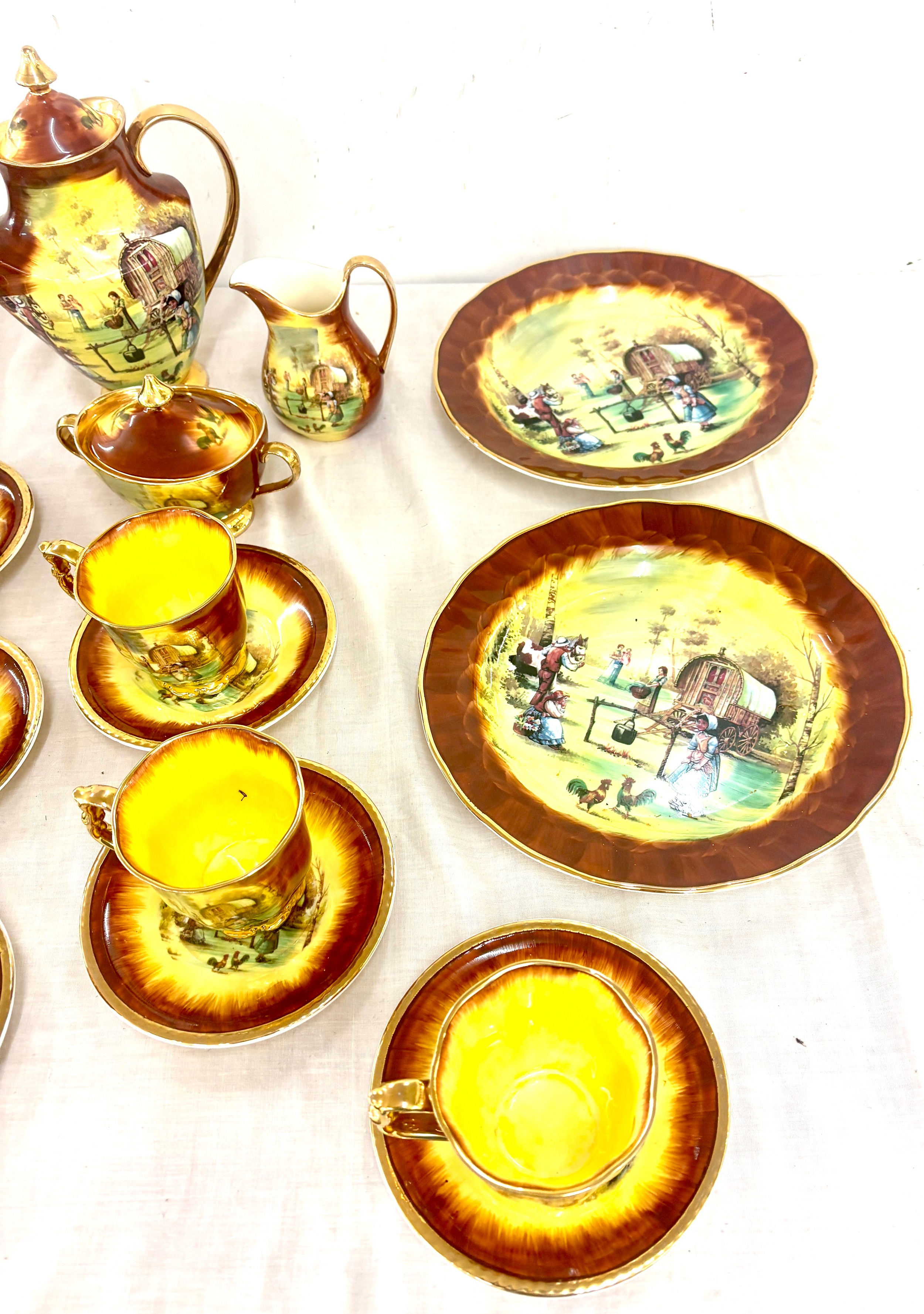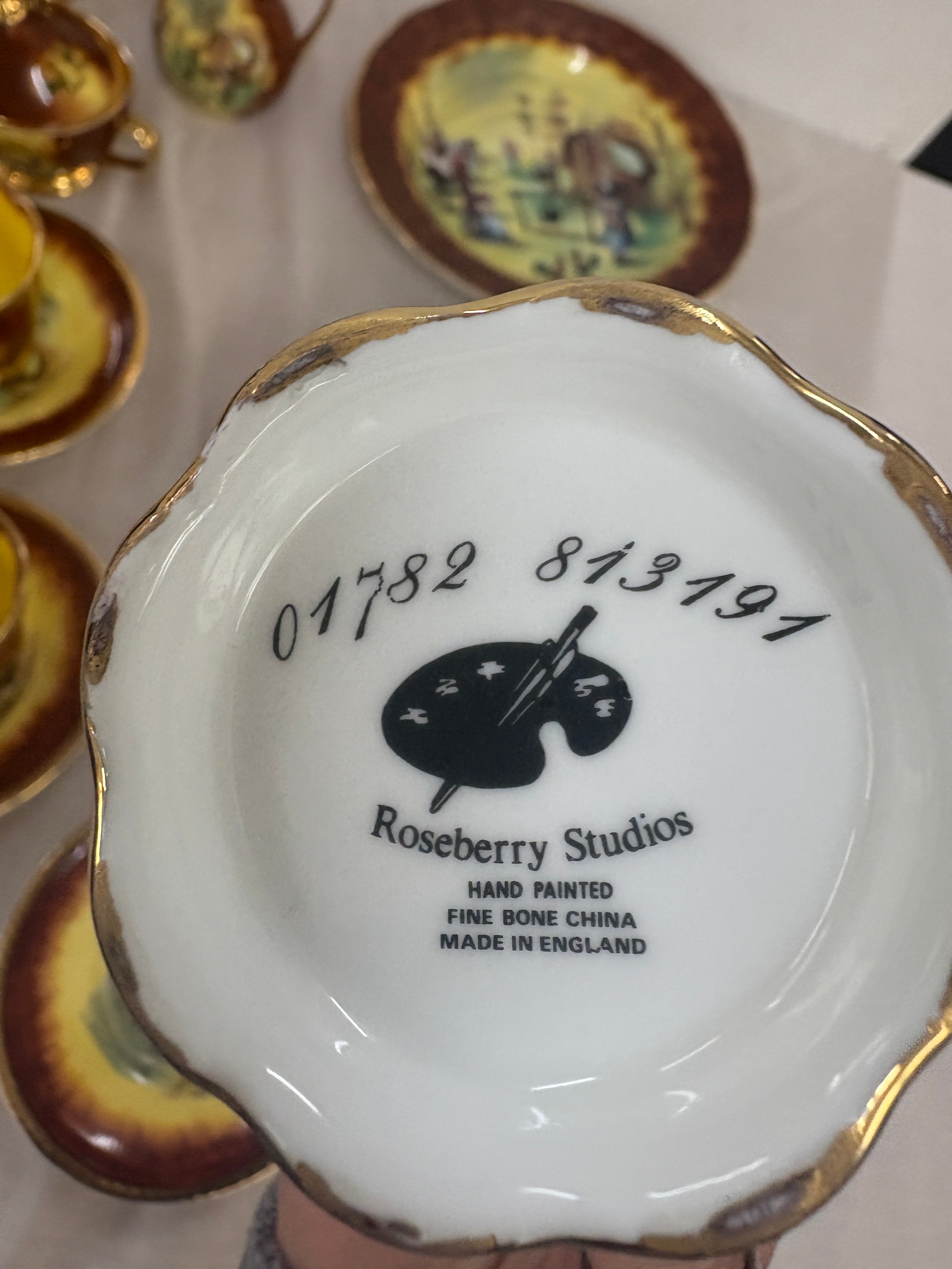 Roseberry Studios vintage tea set, farm scene, items comprise of teapot, jug, sugar bowl, cake place, cups and saucers
