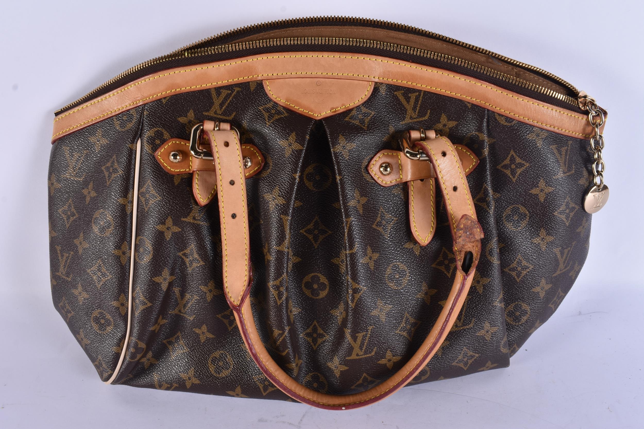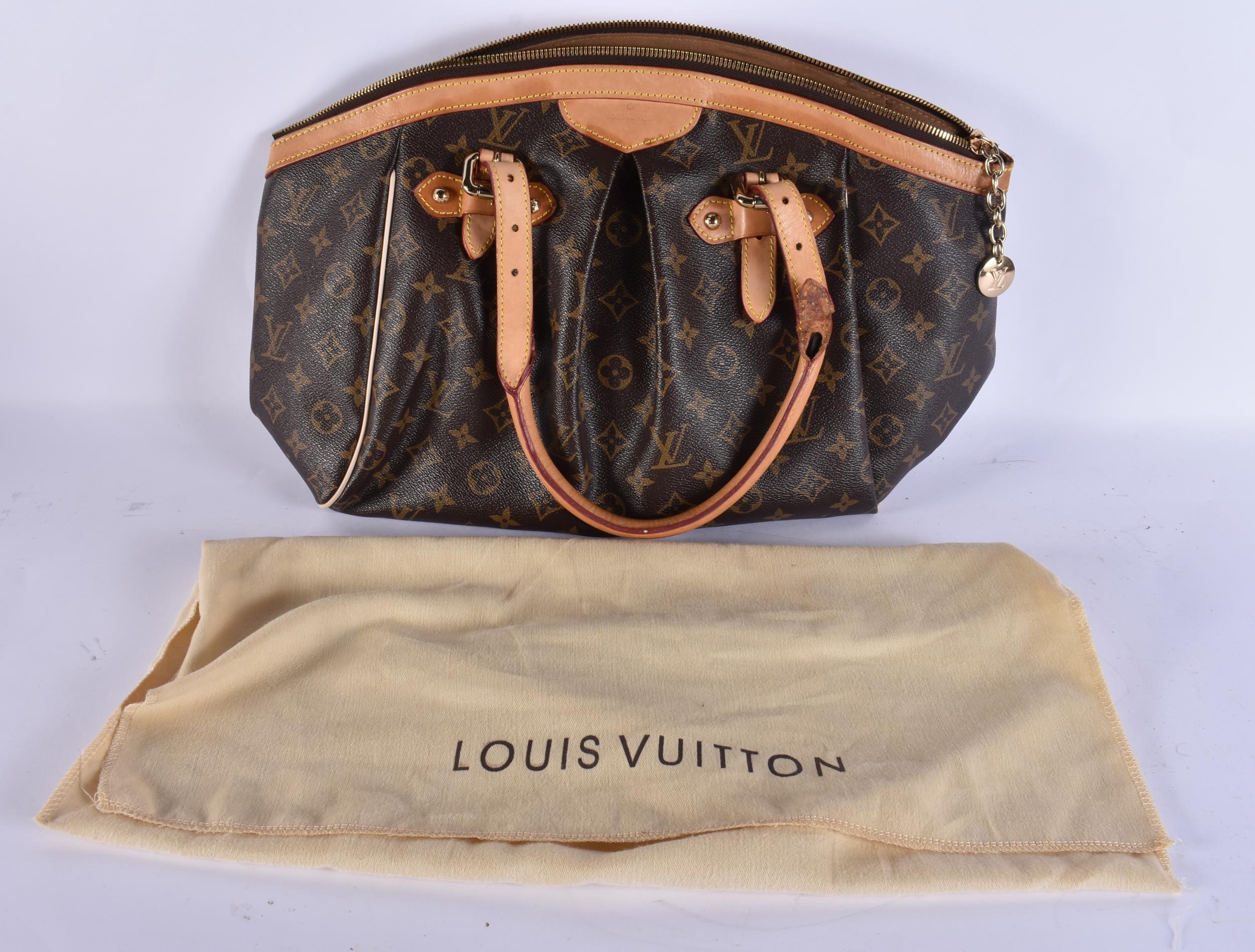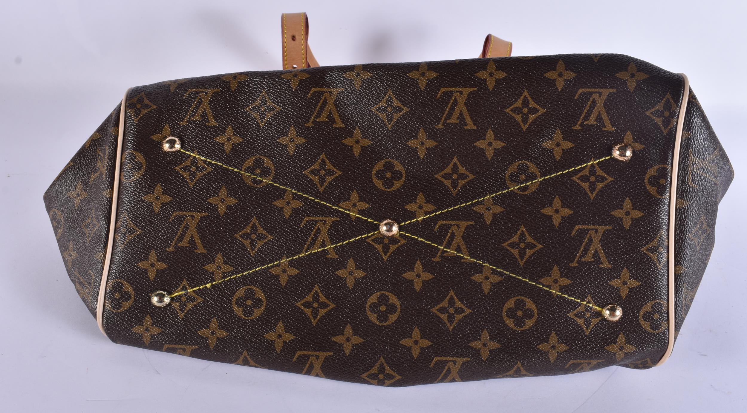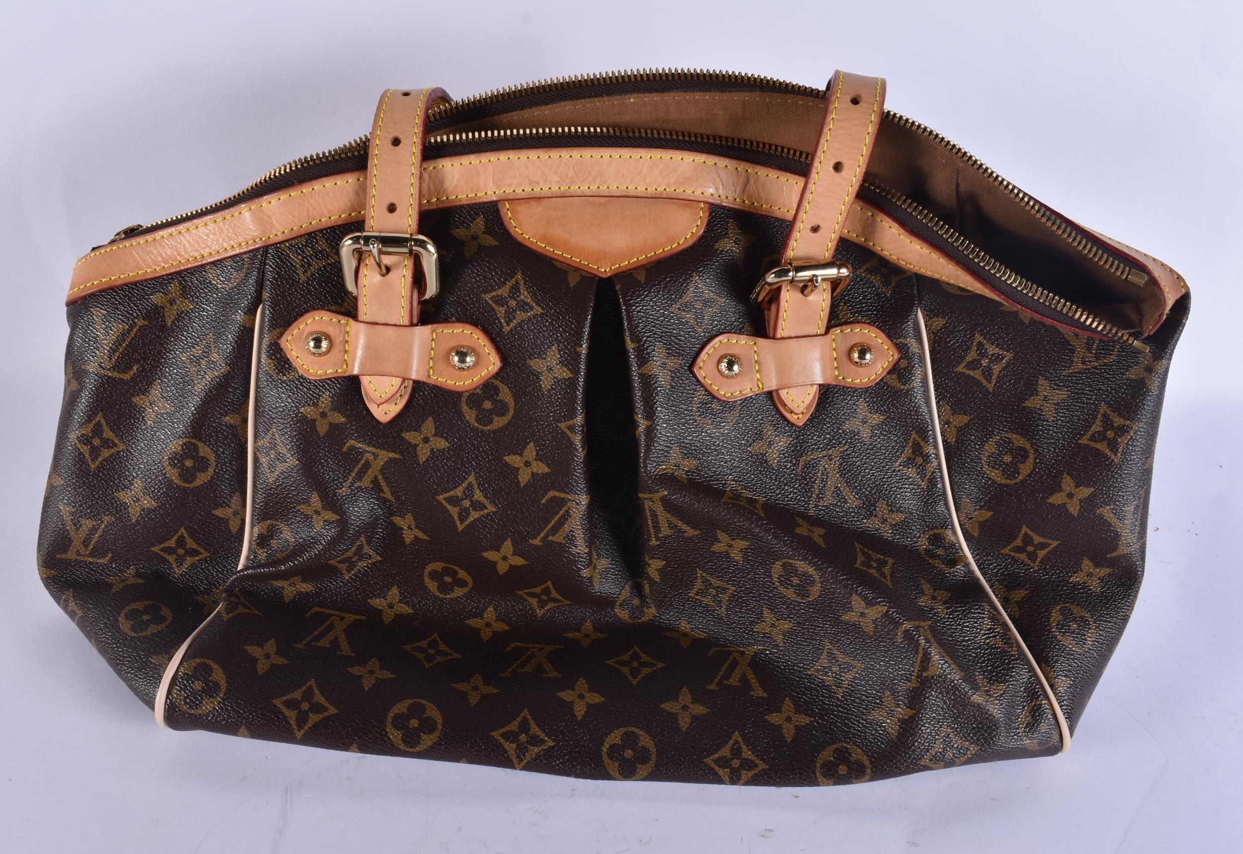 A LOUIS VUITTON LEATHER BAG. 42 cm x 28 cm.