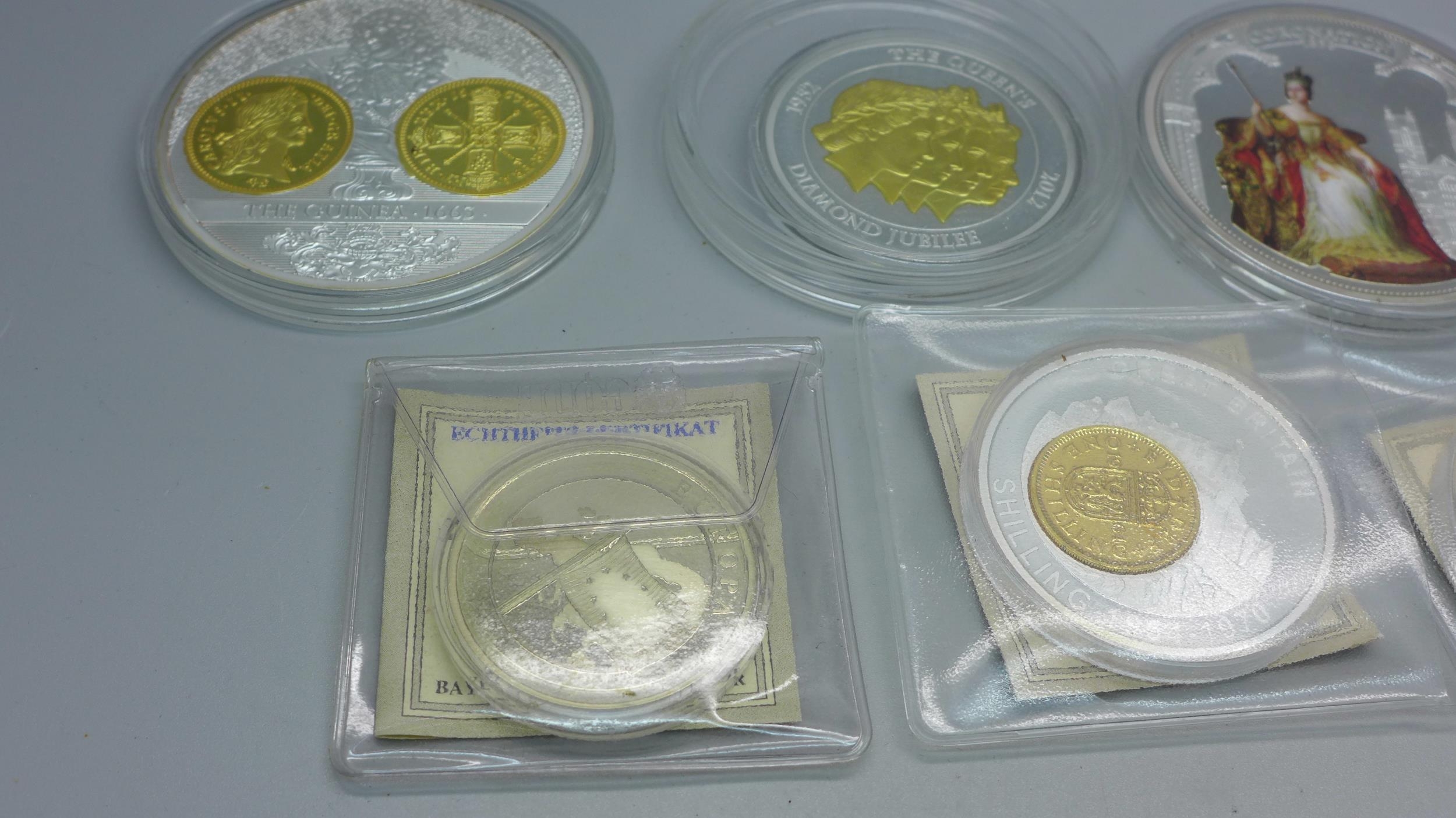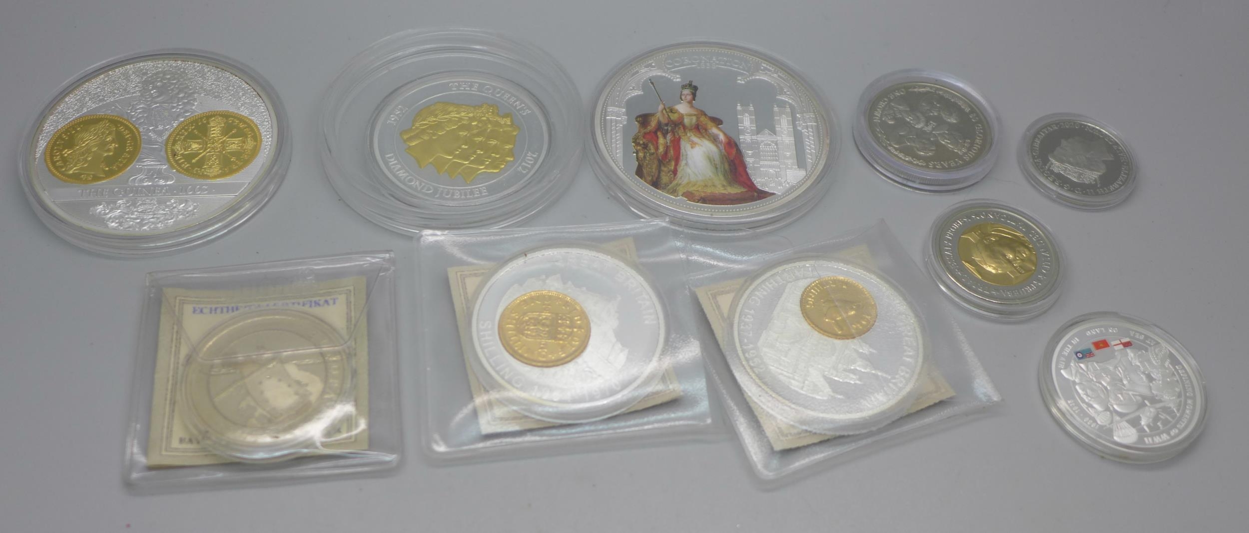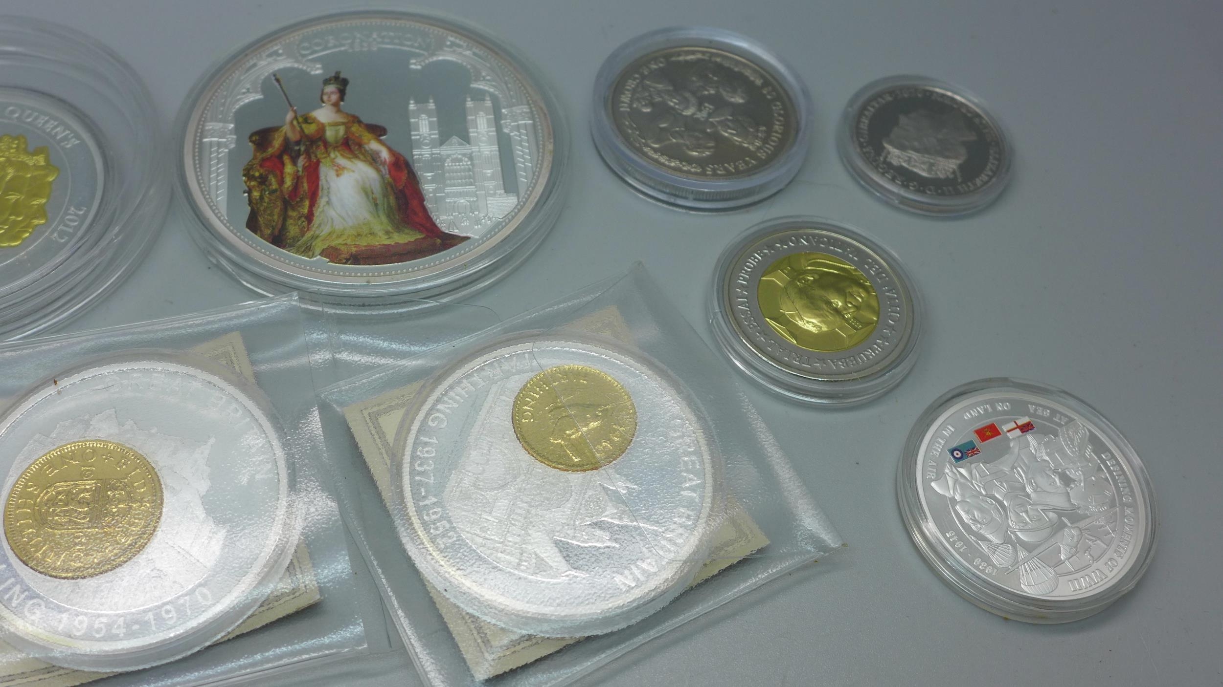 A collection of commemorative medallions