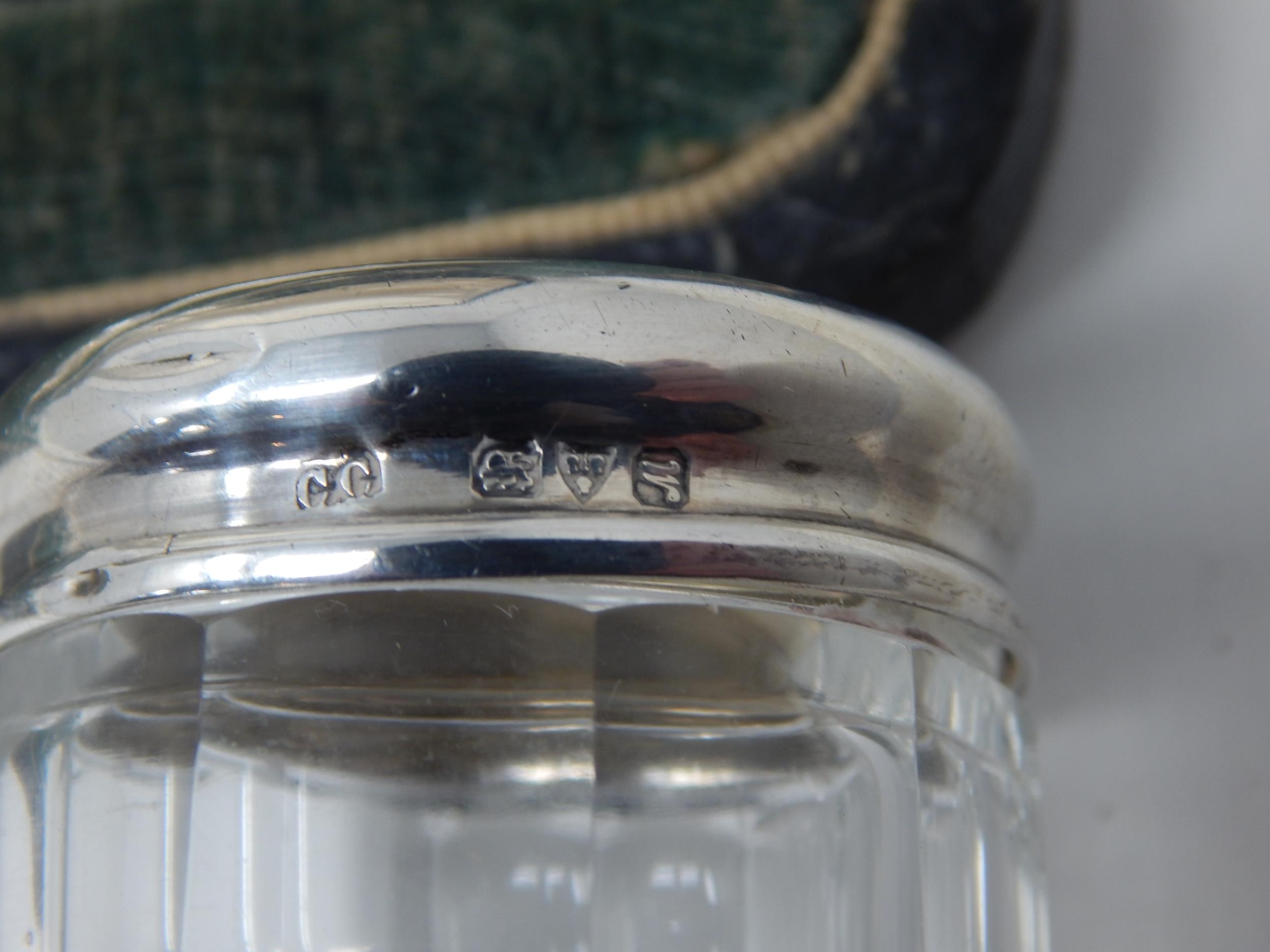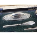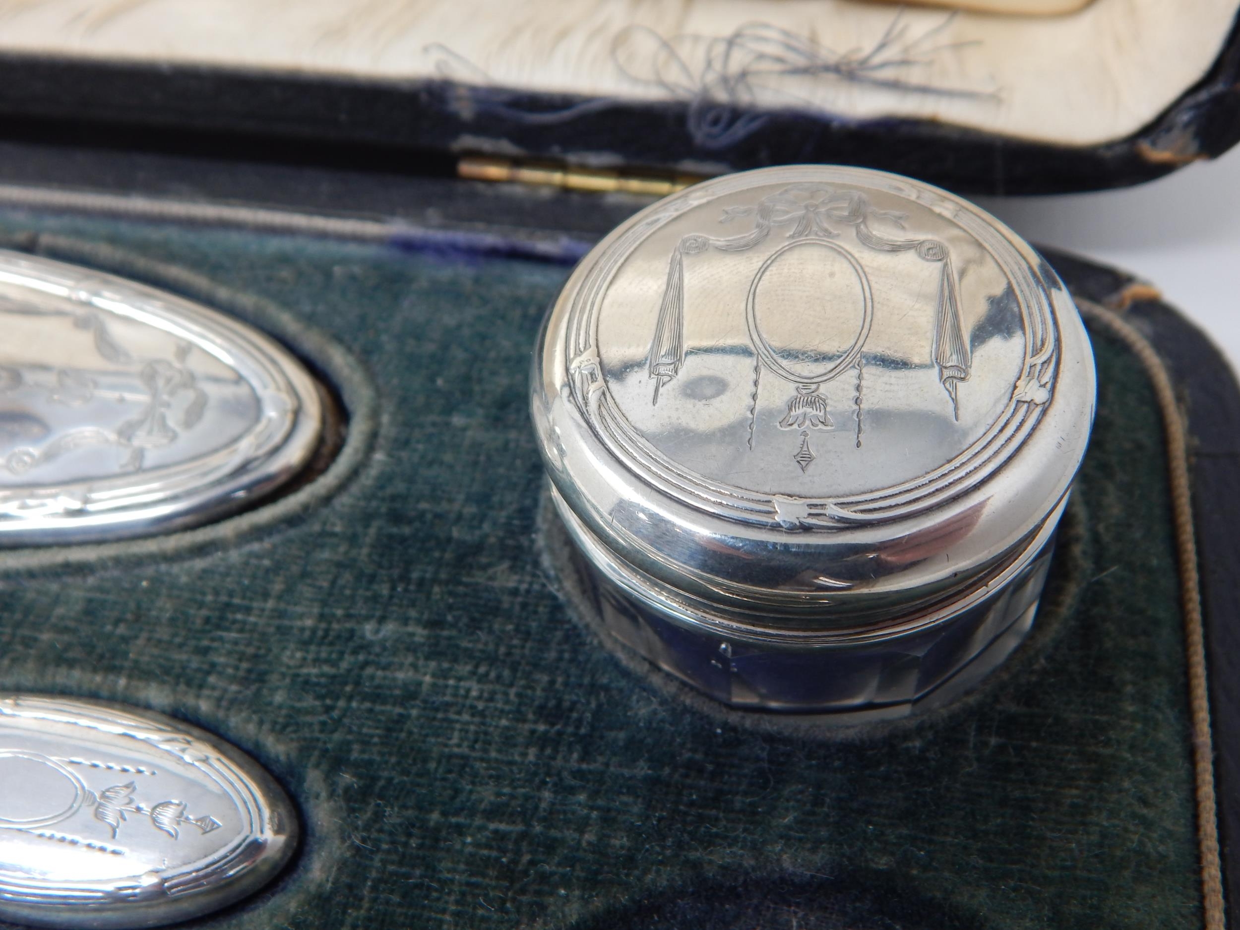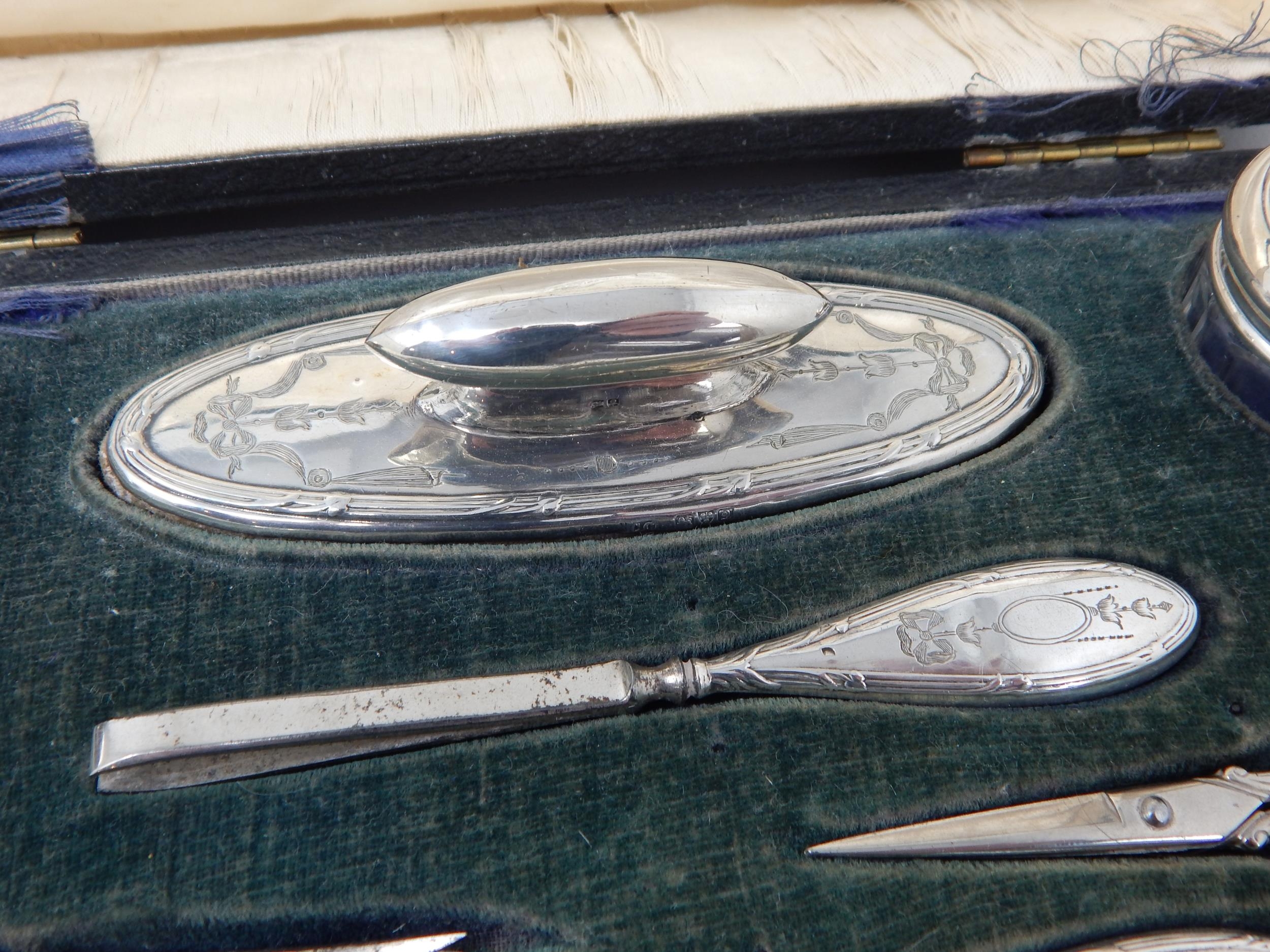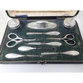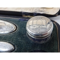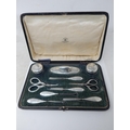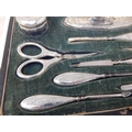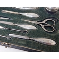 Antique Silver Mounted Ten Piece Manicure Set Comprising Rouge Pots, Buffer, Scissors etc in Original Fitted Case: Hallmarked Chester 1912 by Colen Cheshire & Retailed by Mappin & Webb