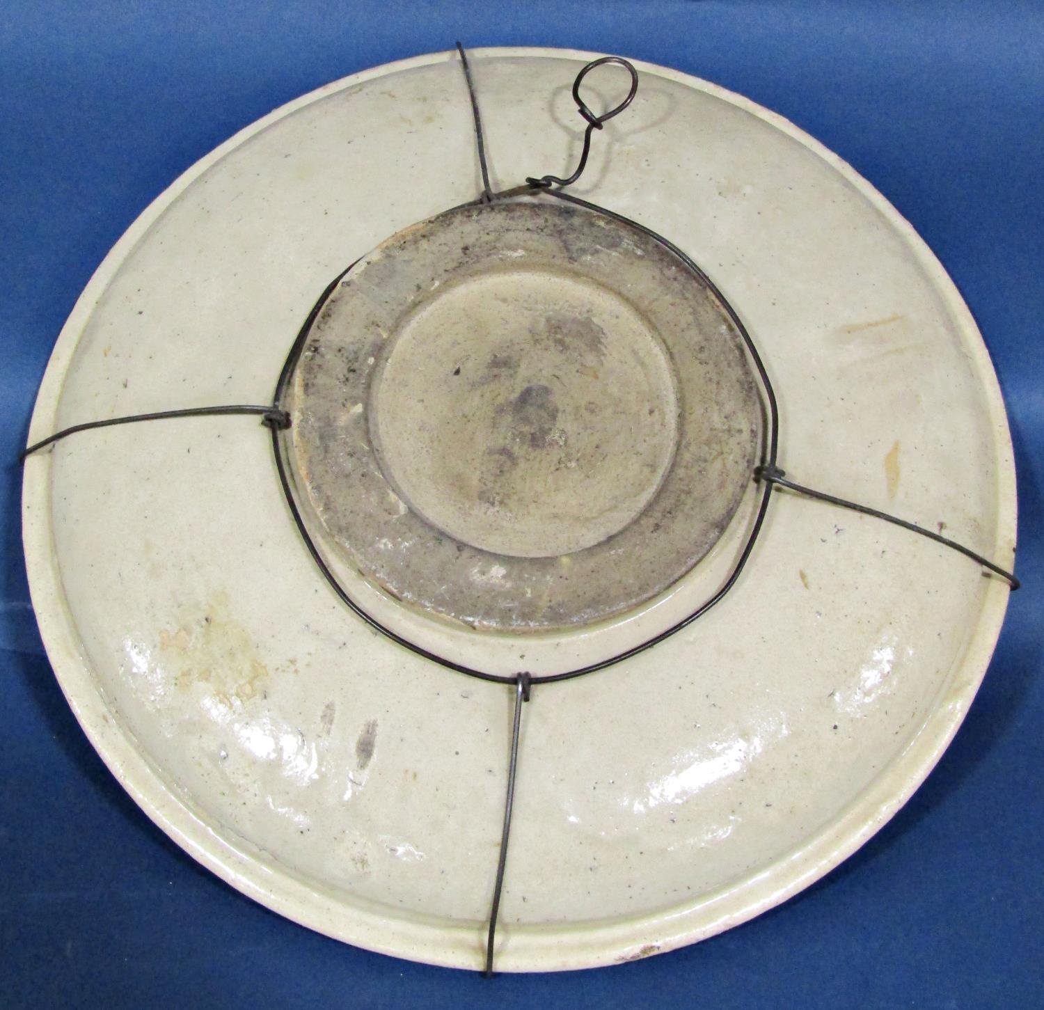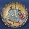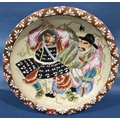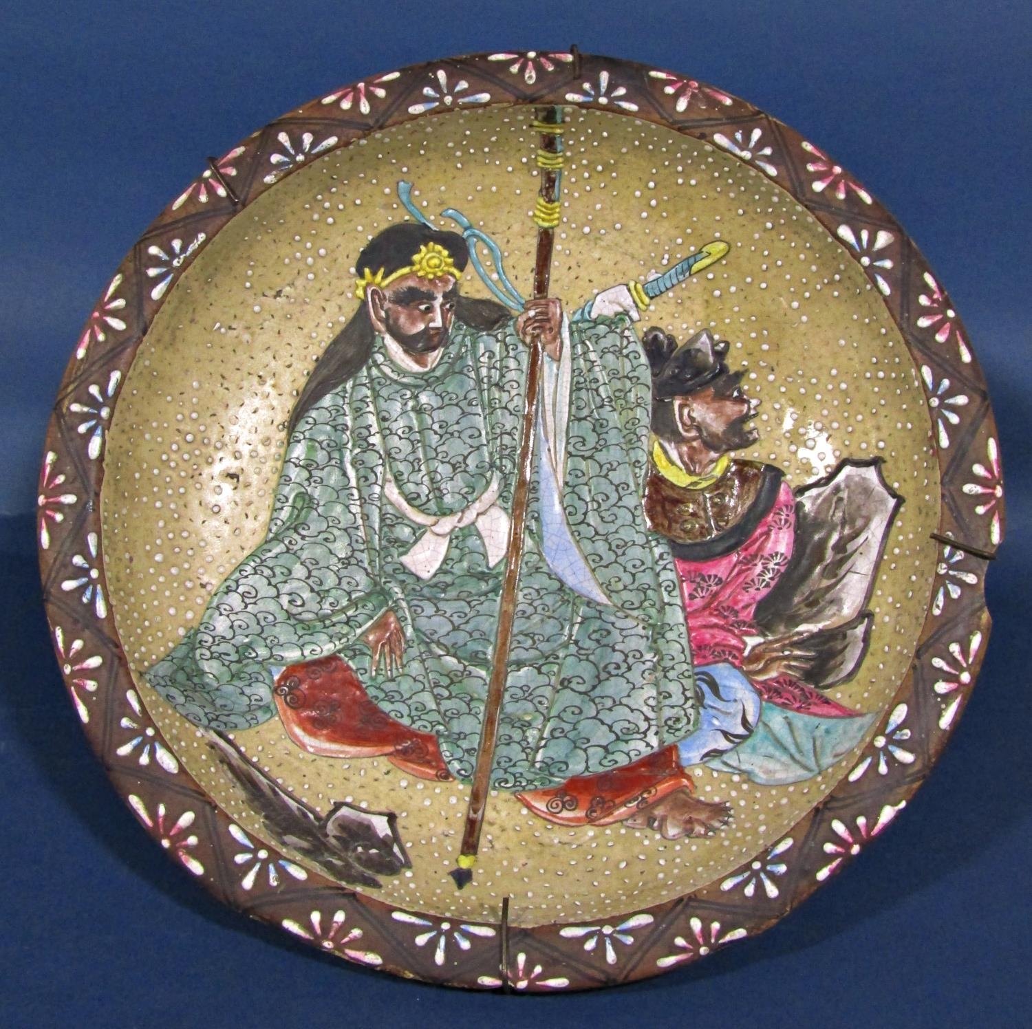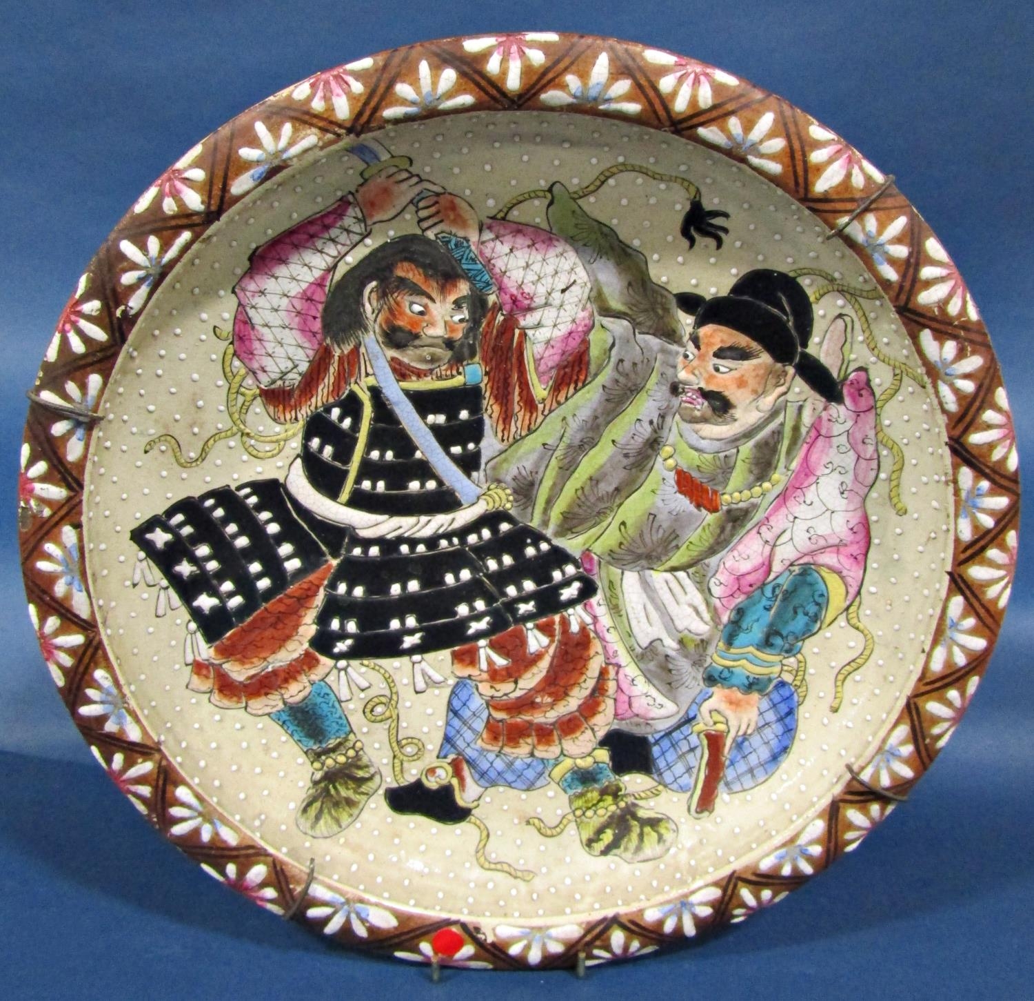 A pair of 19th century Japanese stoneware dished plates showing Samurai warriors in landscapes