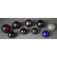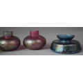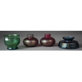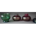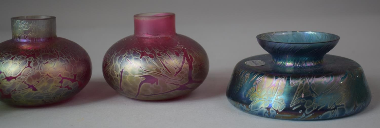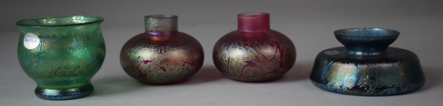 A Collection of Four Pieces of Various Coloured Iridescent Squat Glass Vases, Tallest 8.5cms High