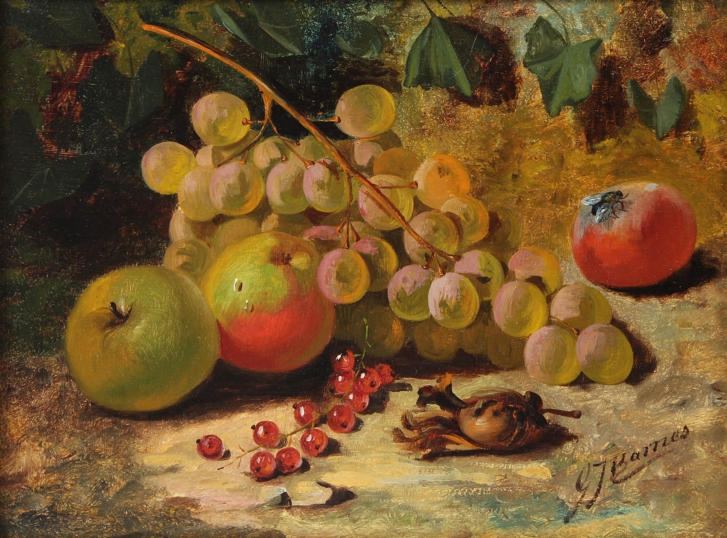 G J BARNES Still life of fruit oil on panel signed 21 x 28.5cm