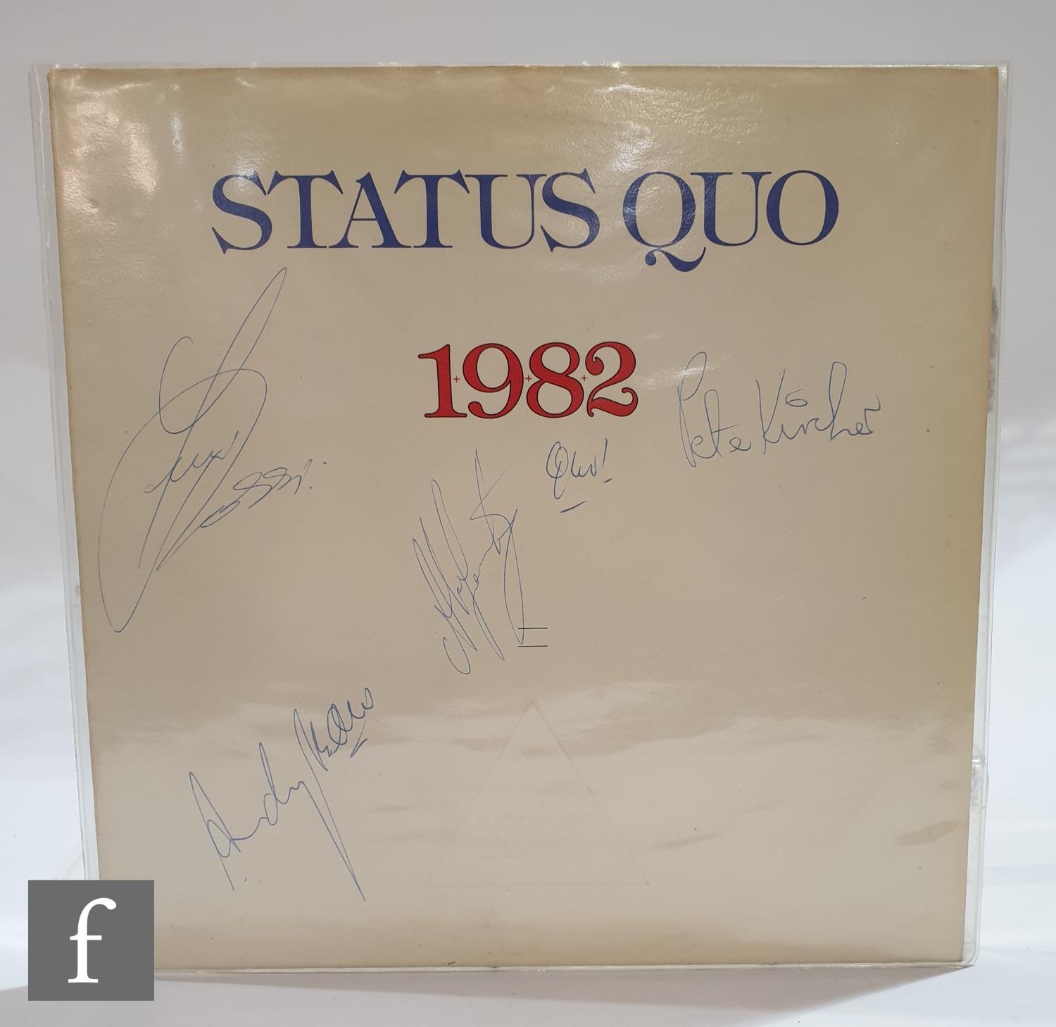A signed Status Quo '1982' LP, signed by Francis Rossi, Pete Kircher, Andy Bown and two further signatures, signed in blue ink.