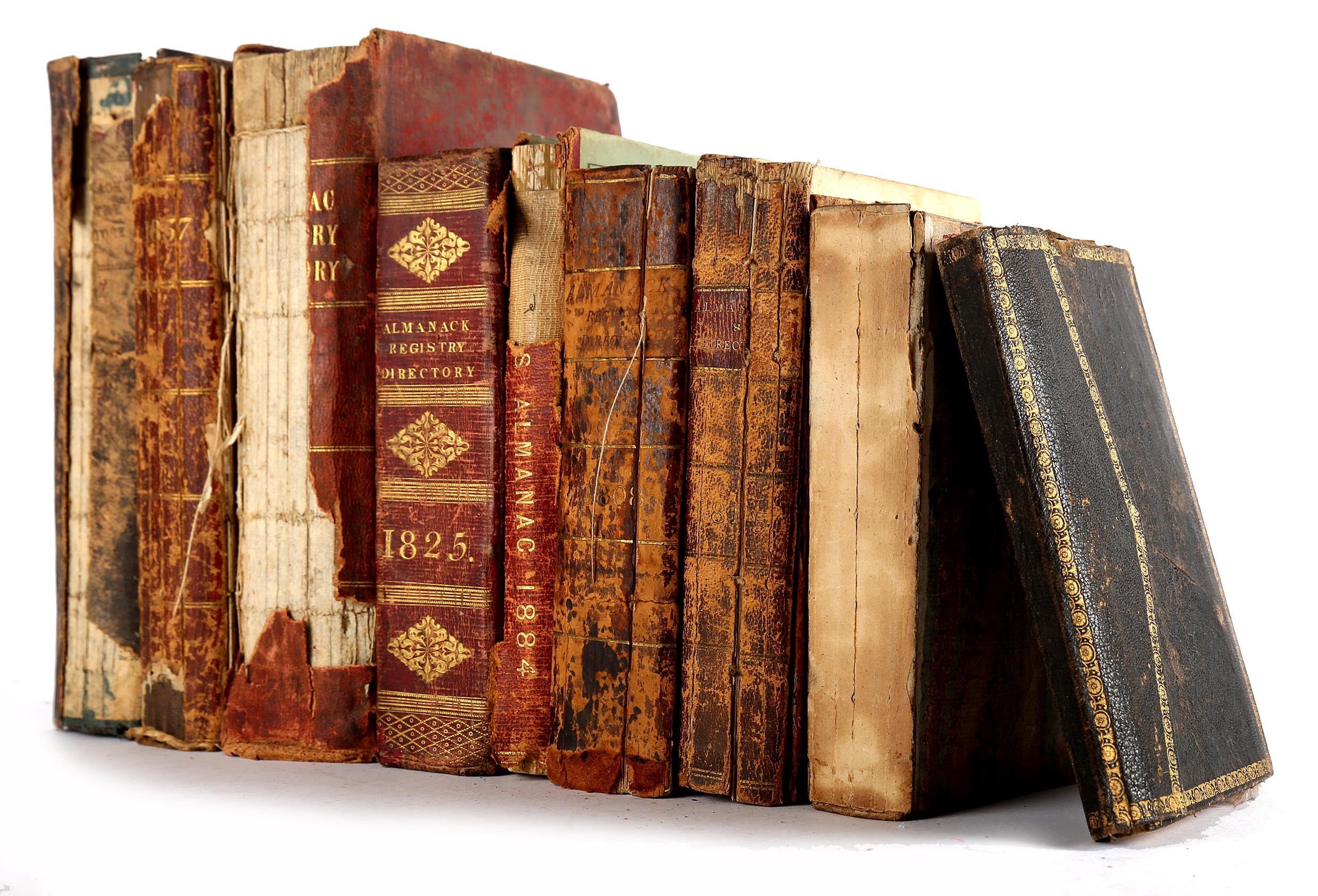 Watson Stewart, John, The Treble Almanack for 1823, contemporary morocco, lacking the map and final leaves, with Watson, John, The Gentleman and Citizen's Almanack for 1765 in a contemporary wallet style binding together with seven further Almanacks and Dublin Street Directories all worn and with loss 1794 - 1884, all 8vo (9)