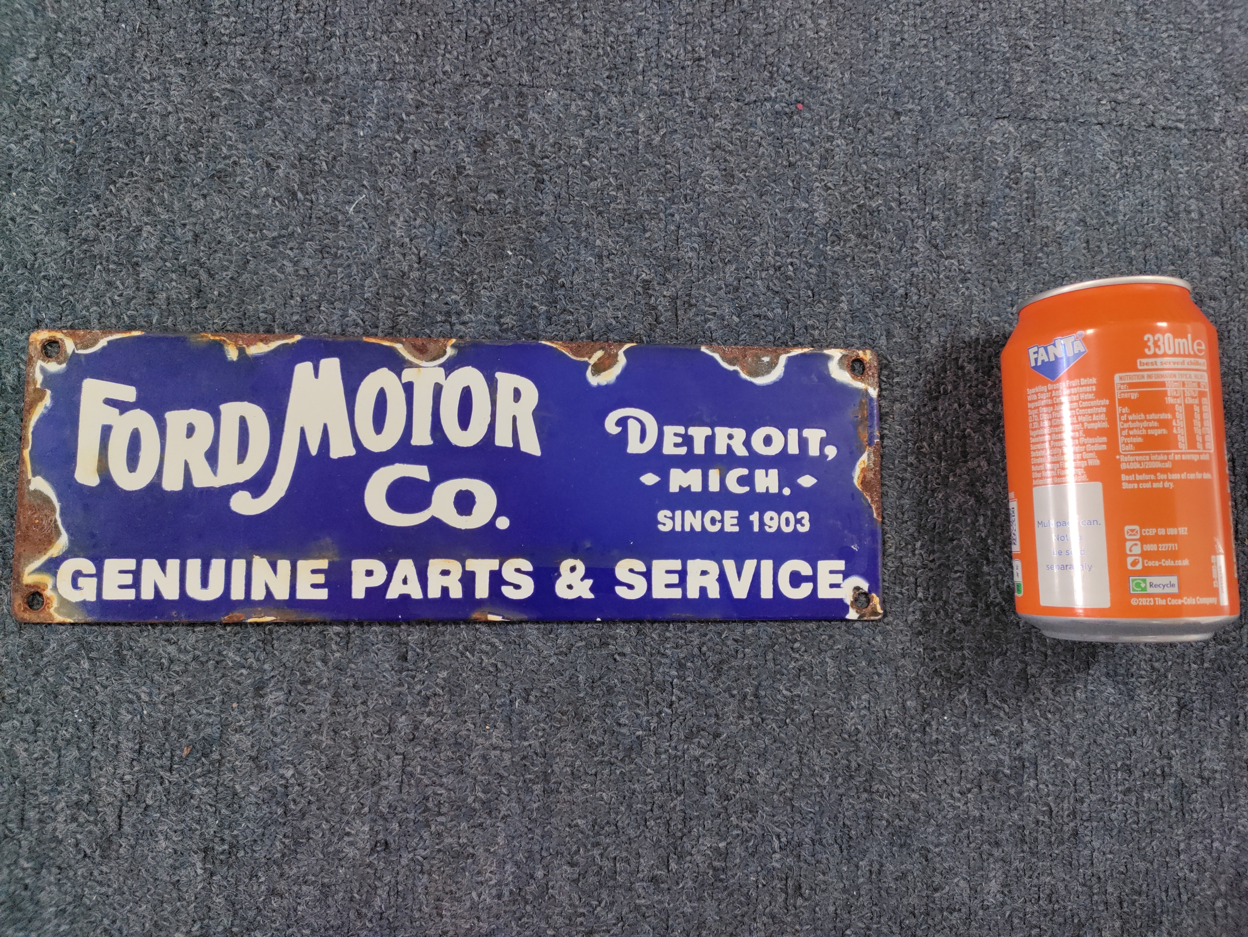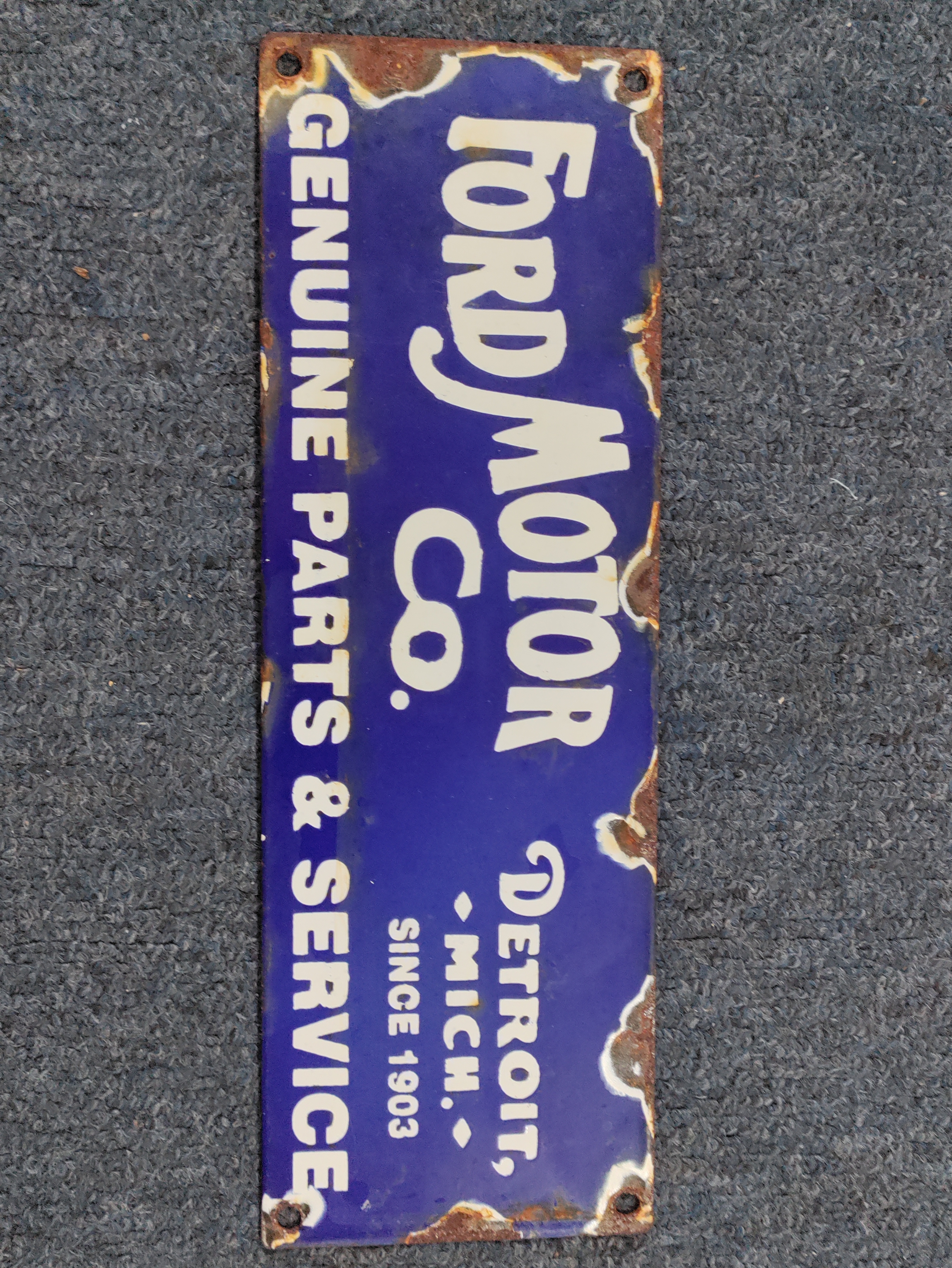 A Ford Motor Co genuine parts & service enamel sign. H 10cm x W 30cm.