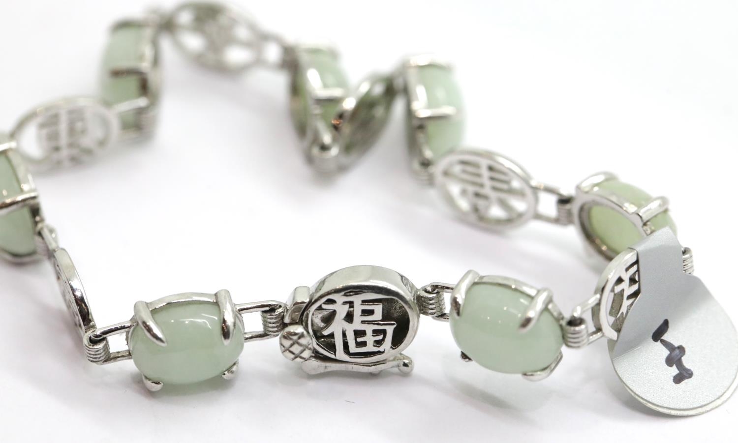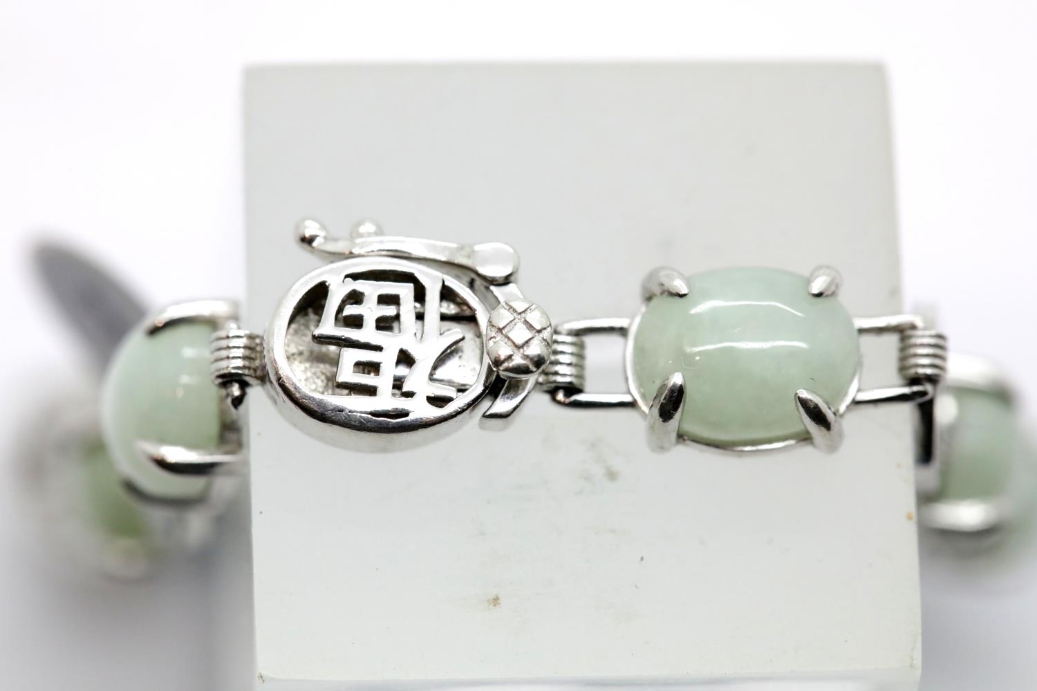 Ladies silver Chinese and jade fancy ornate bracelet. P&P Group 1 (£14+VAT for the first lot and £1+VAT for subsequent lots)