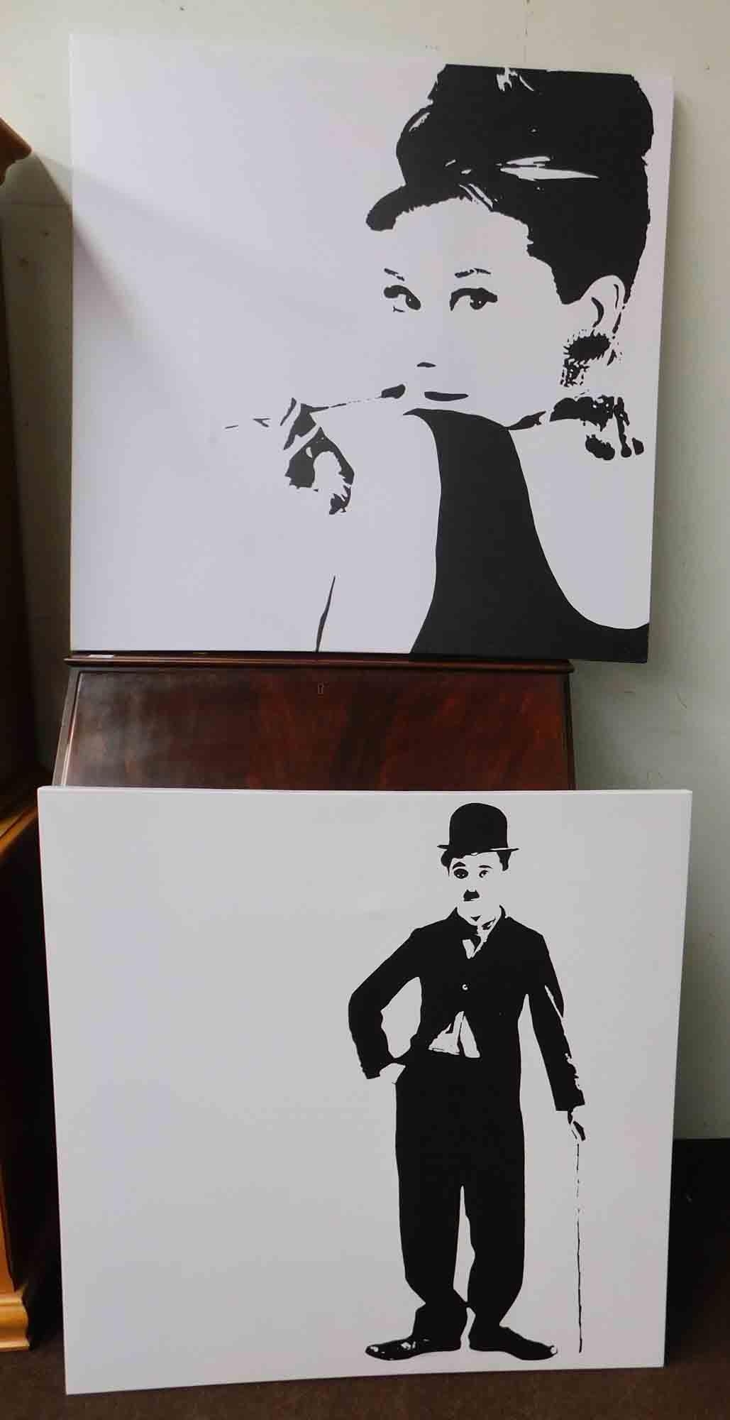 2x Square canvas prints 36" square Charlie Chaplin + Audrey Hepburn