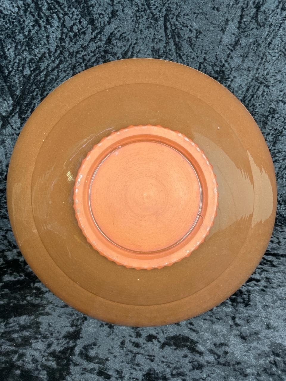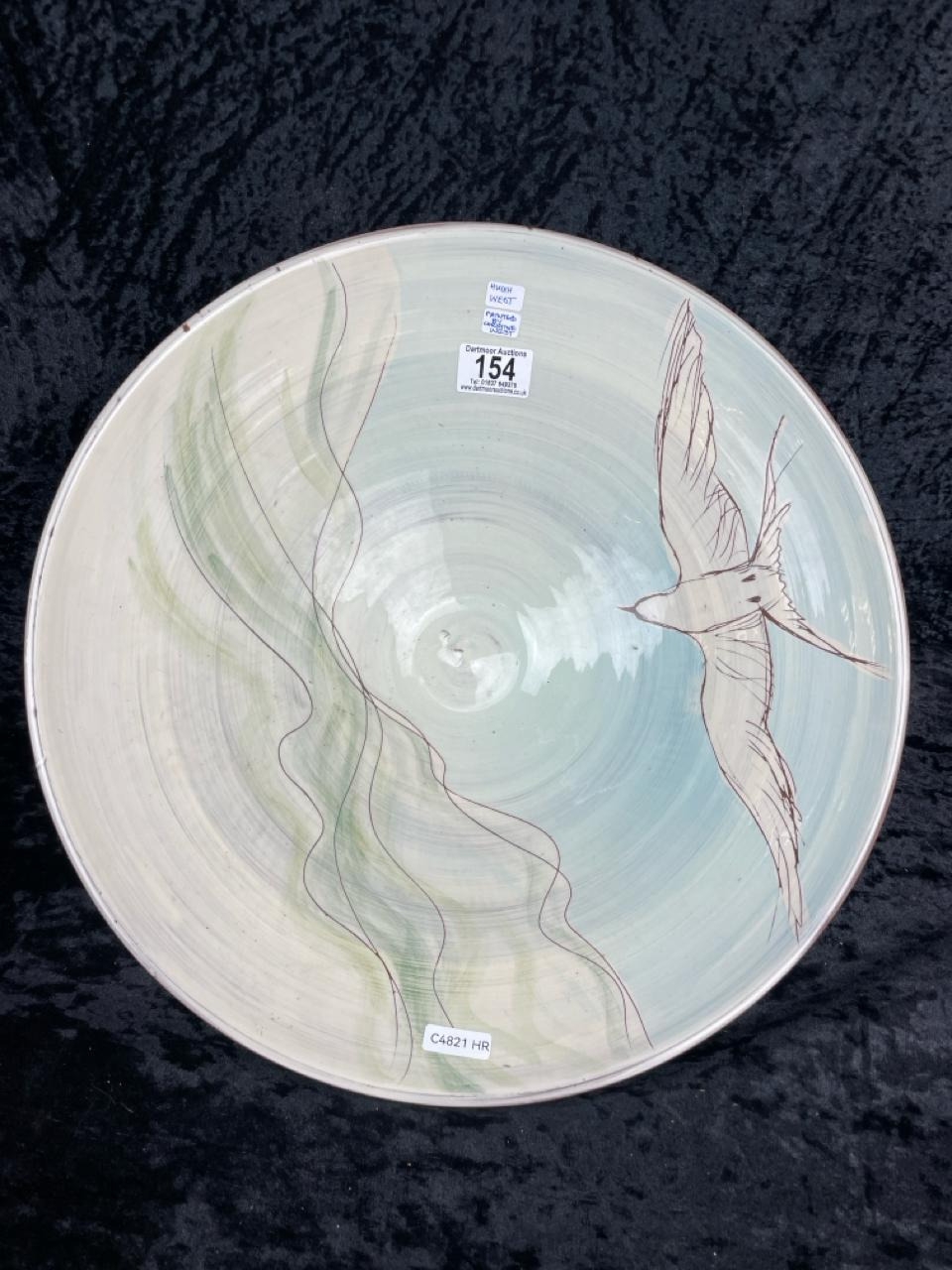 Lovely large studio pottery bowl by Hugh West, painted by Christine West (Hugh's wife). Approx D40cm.
