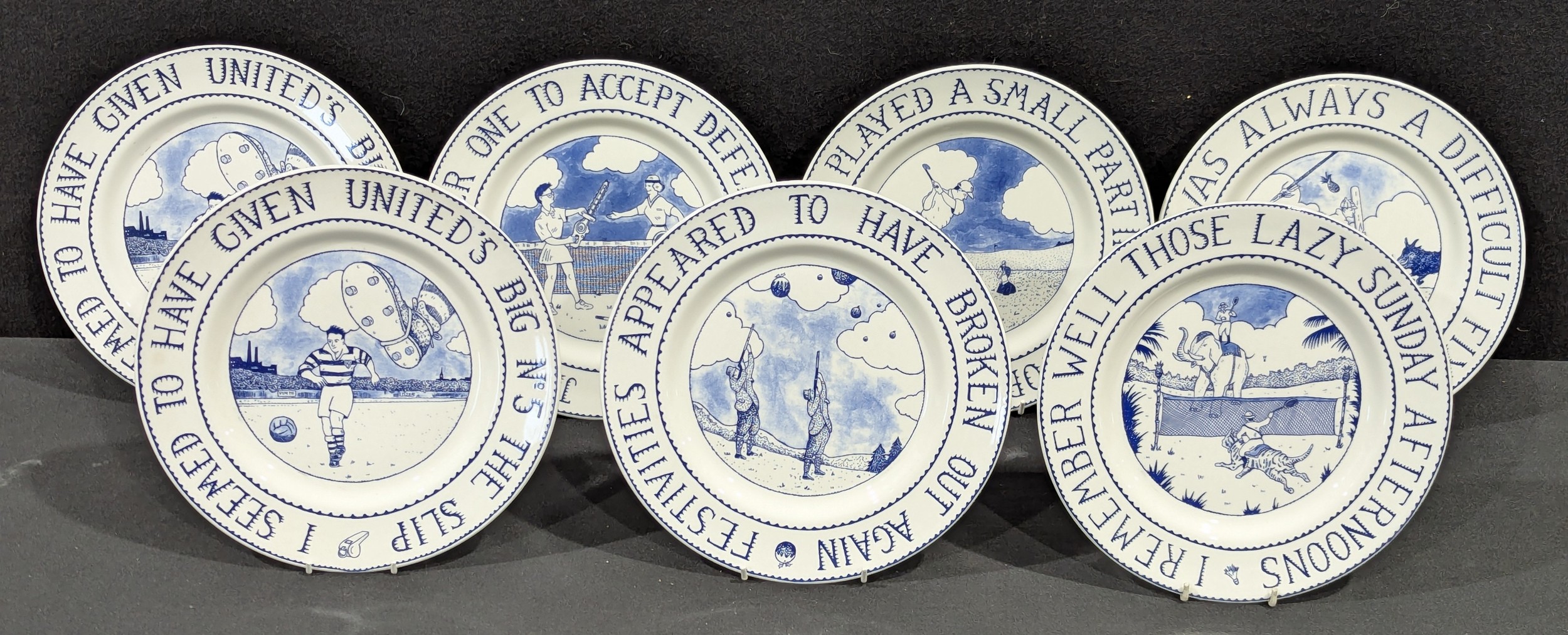A set of seven Richard Dennis Publications, Baxterware blue and white transfer printed plates, designed by Glen Baxter (7)