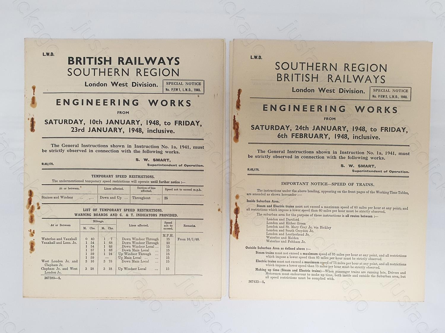 Railway. Two B.R. Southern Region-London West Division, Engineering Works notices. 24 pages, some loose. 1948. Rusting to staples.