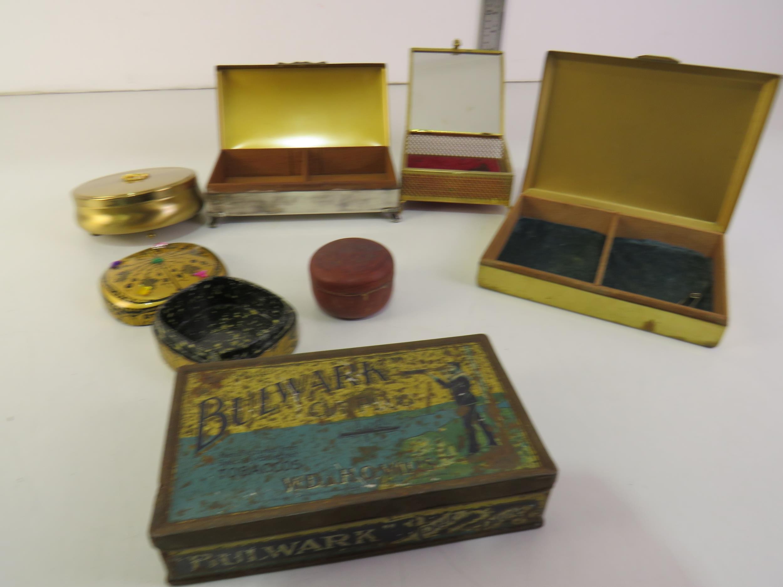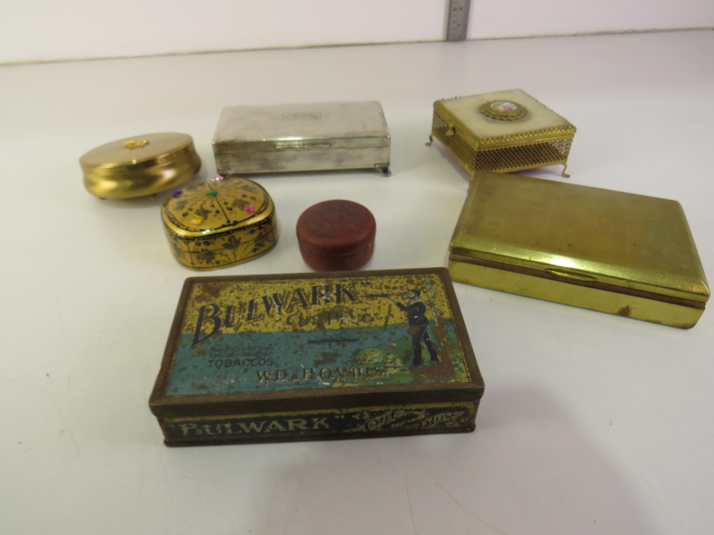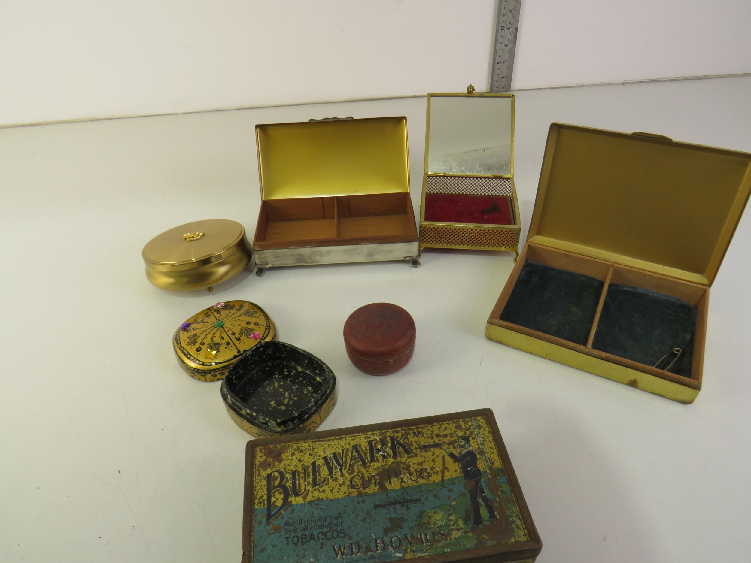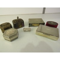 Assorted trinket boxes and tins.