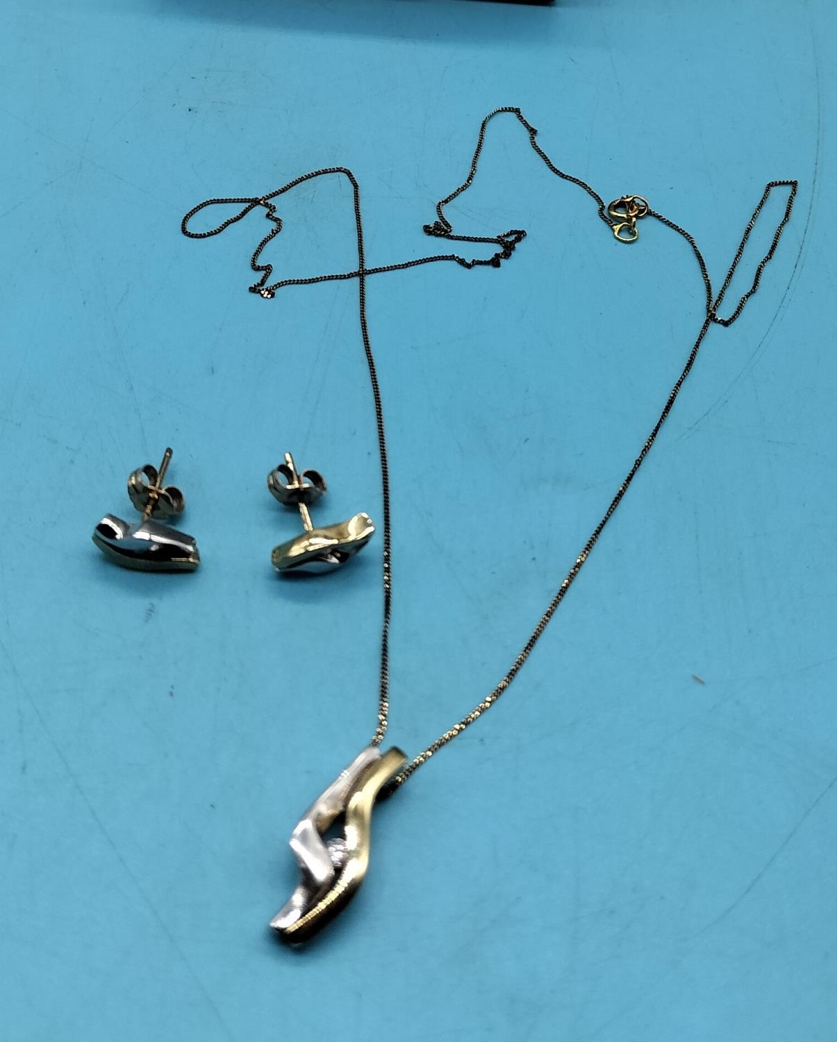 9ct Gold and Diamond Earrings and Pendant Set. 5 Grams.