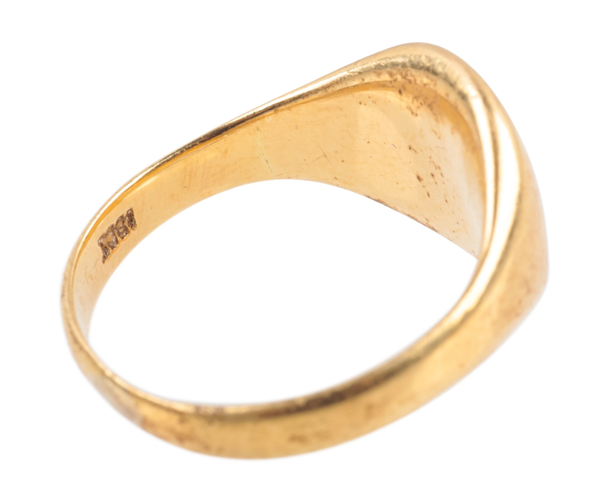 A GENTLEMANS 18CT GOLD SIGNET RINGring size N, c. 6.6 grams