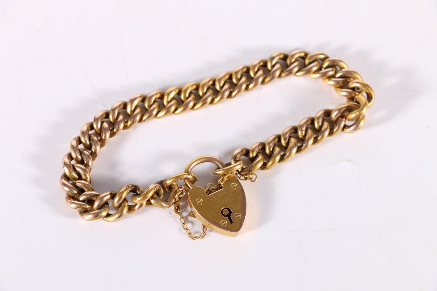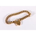 9ct gold curb link bracelet with 9ct gold heart shaped padlock clasp, 16.4