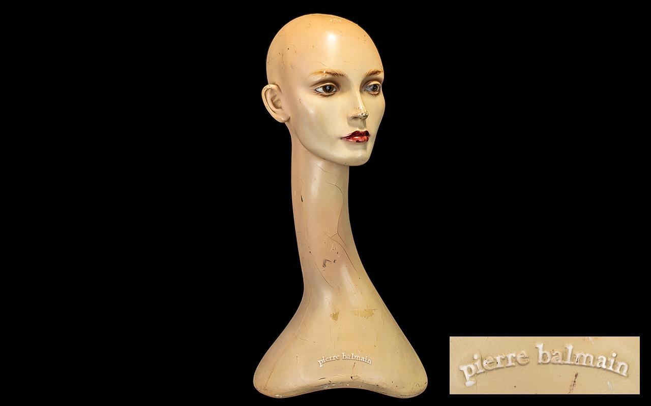Pierre Balmain 1930's Art Deco French Waxed Mannequin in the form of a ladies head with elongated neck. Number D221. Measuring 22 inches high.