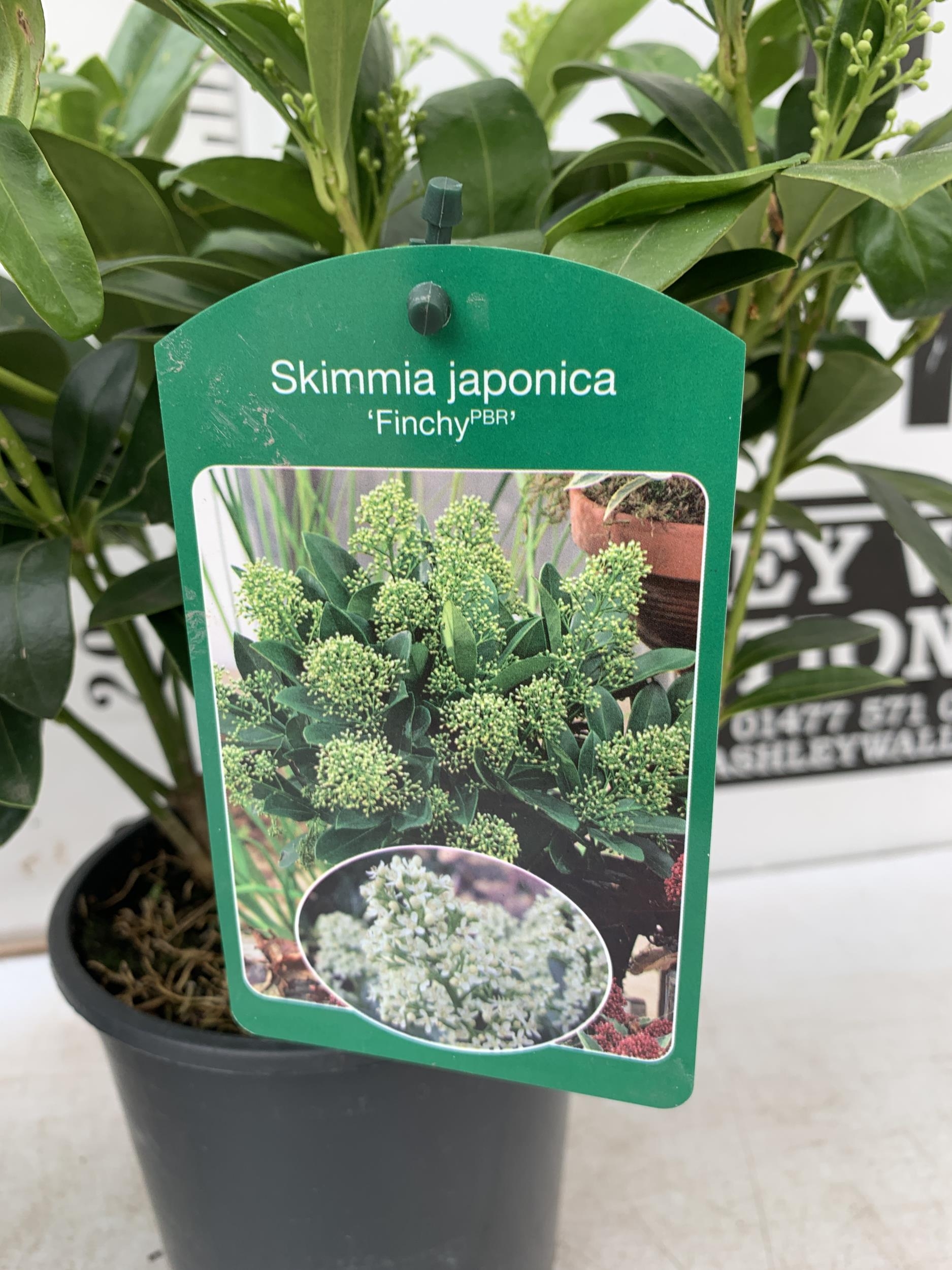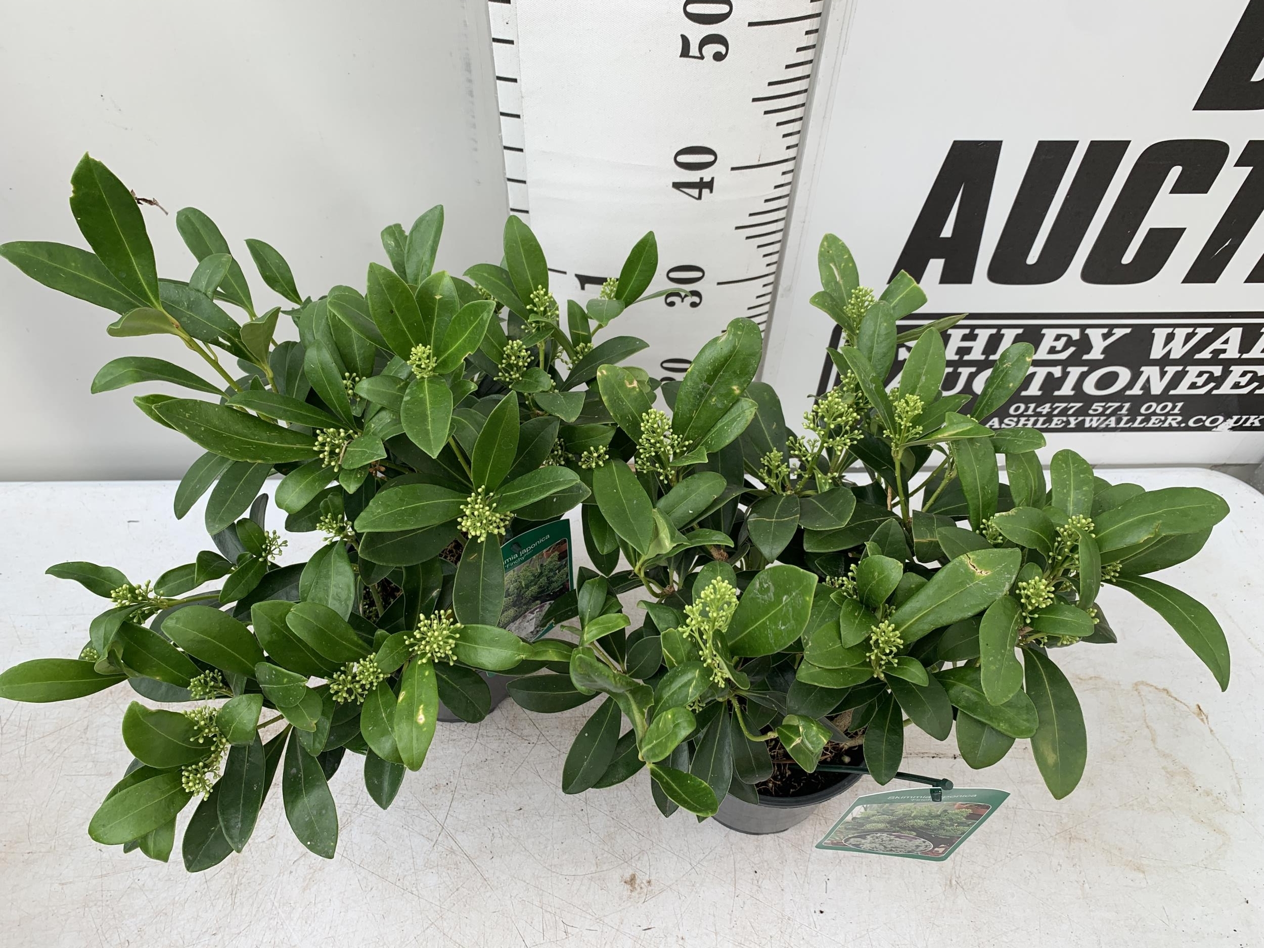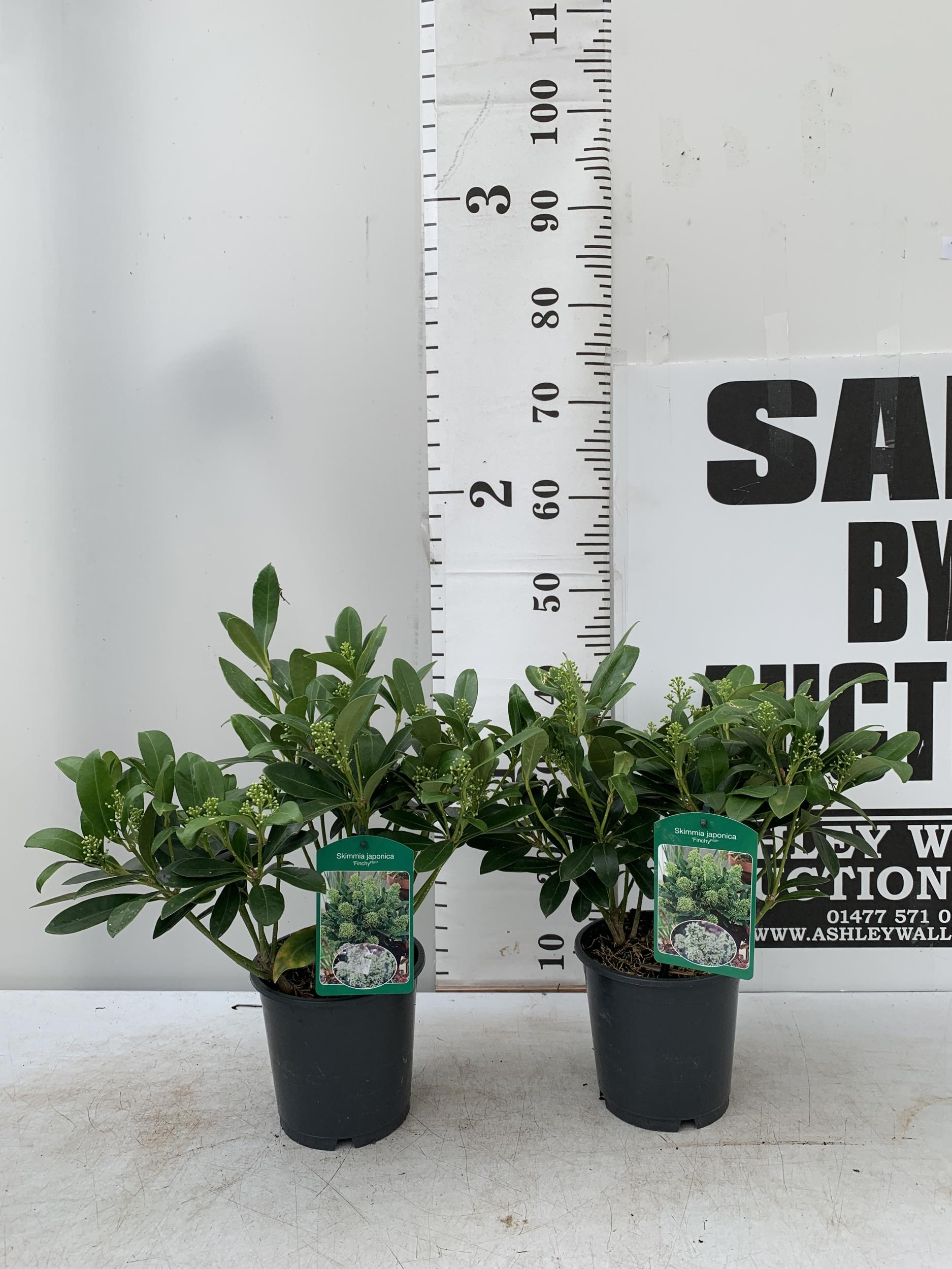 TWO SKIMMIA JAPONICA FINCHY WITH BERRIES APPROXIMATELY 40CM TALL TO BE SOLD FOR THE TWO PLUS VAT