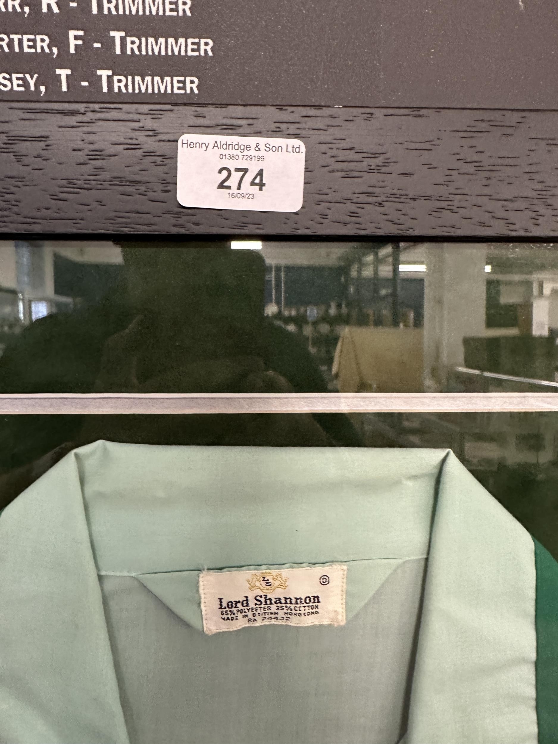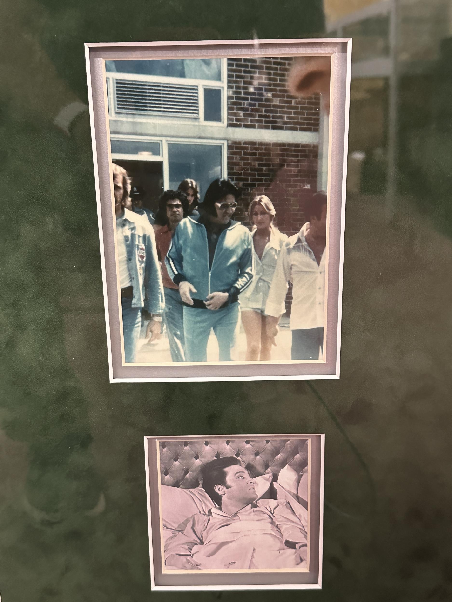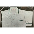 This fabulous pair of large Lord Shannon mint-green pyjamas were worn by Elvis while staying at Baptist Memorial Hospital in early April, 1977. After spending a week in the hospital, Elvis spent several days at Graceland trying to recover from exhaustion. These pyjamas were left at Vernon Presley's home, adjacent to Graceland on Dolan Street, after a visit from Elvis. He would often walk across the rear of the property and visit with his father and fiance, Sandy Miller, to reminisce. This pair of pyjamas were obtained from the Burnettes who purchased Vernon's home after Elvis's death.