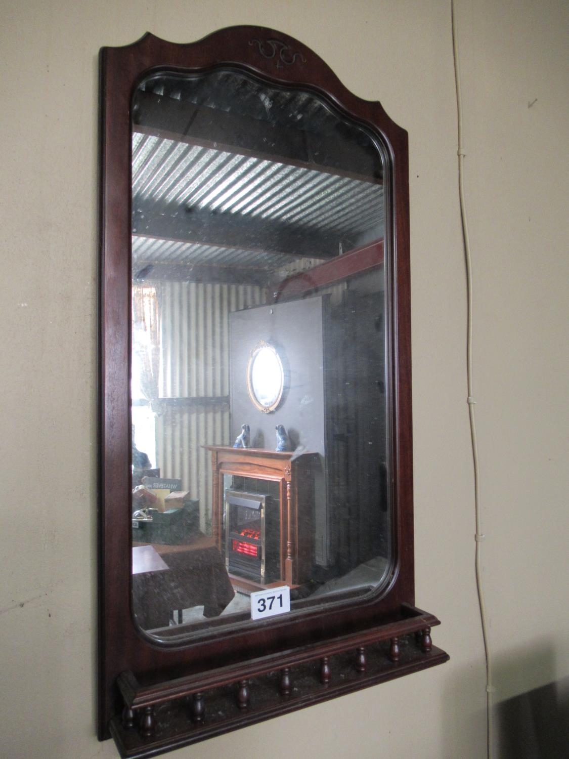 Mahogany framed wall mirror with shelf. 100cm x 54cm.