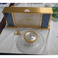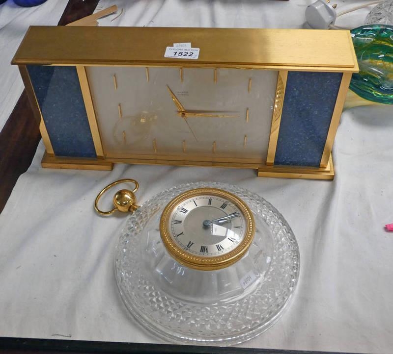 LUXOR PRECISION MANTLE CLOCK WITH LAPIS LAZULA PANELS BY GARRARD - 39CM WIDE & A CIRCULAR CUT GLASS WALL CLOCK